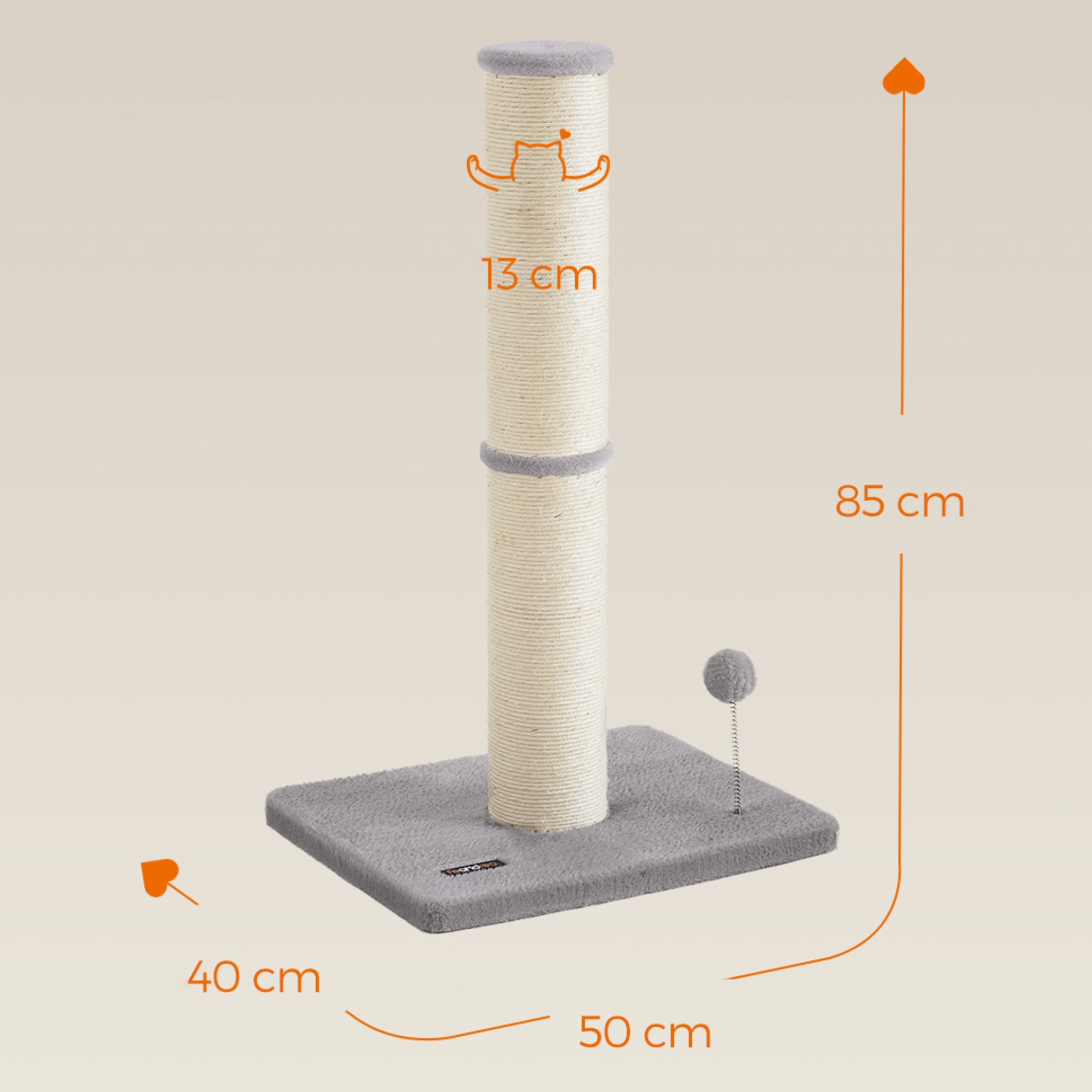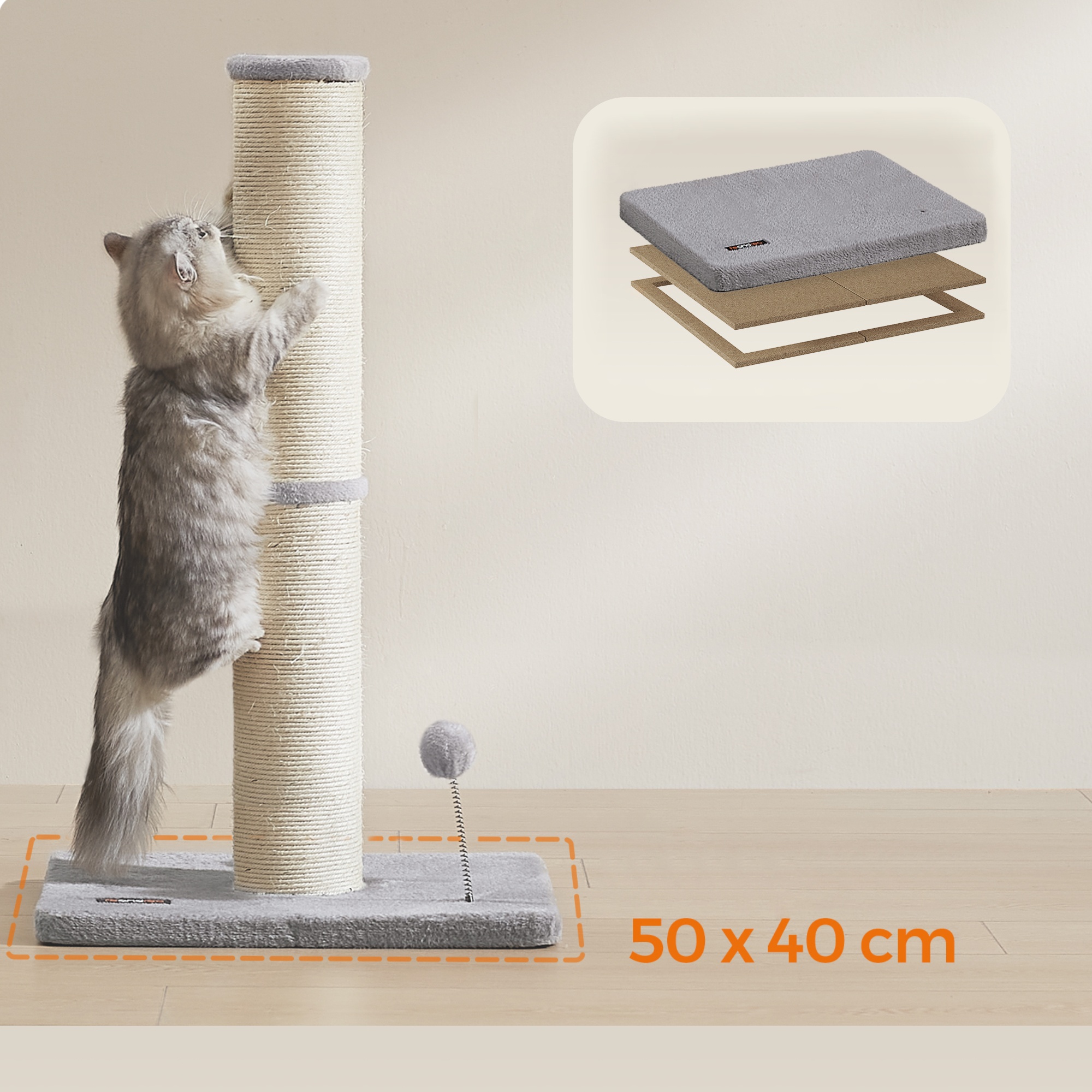 Škrabadlo má podstavec s rozmermi 50x40 cm, ktorý je vyrobený z pevnej drevovláknitej MDF dosky. Doska spevňuje konštrukciu a zabezpečuje tak dostatočnú stabilitu. Je doplnená o hladký poťah pre maximálny komfort. Škrabací stĺp s priemerom 13 cm poskytuje veľký priestor na zábavu a brúsenie pazúrikov na oboch labkách pomocou sisalového povrazu. O zábavu sa postará brmbolec na pružine, v ktorom je ukrytá rolnička.