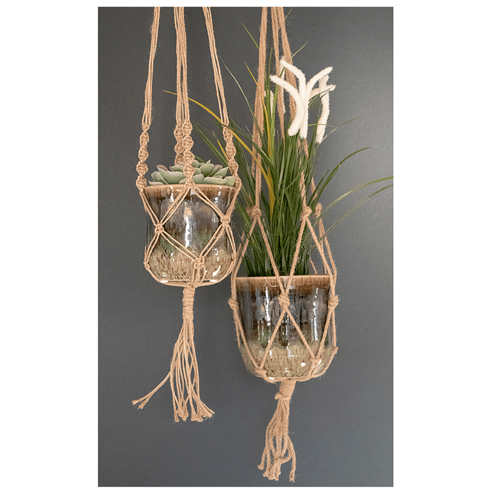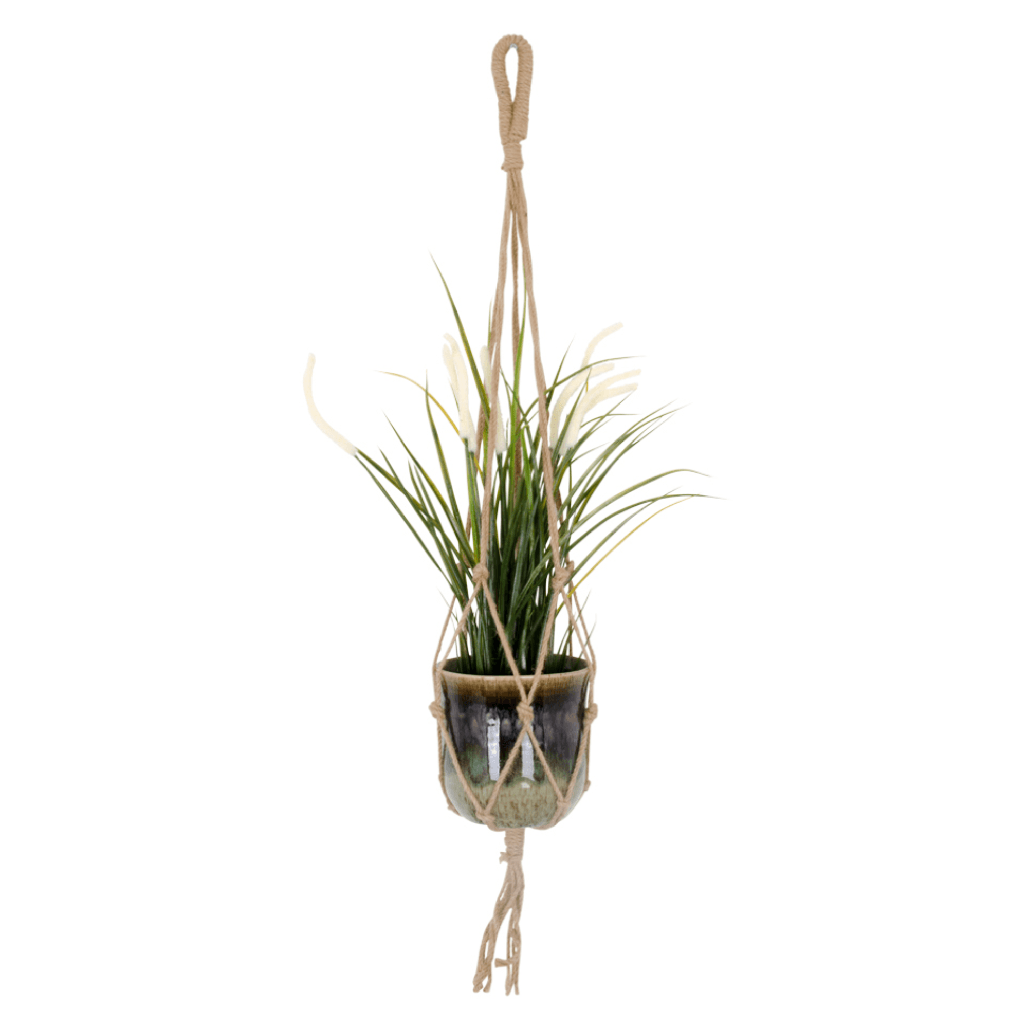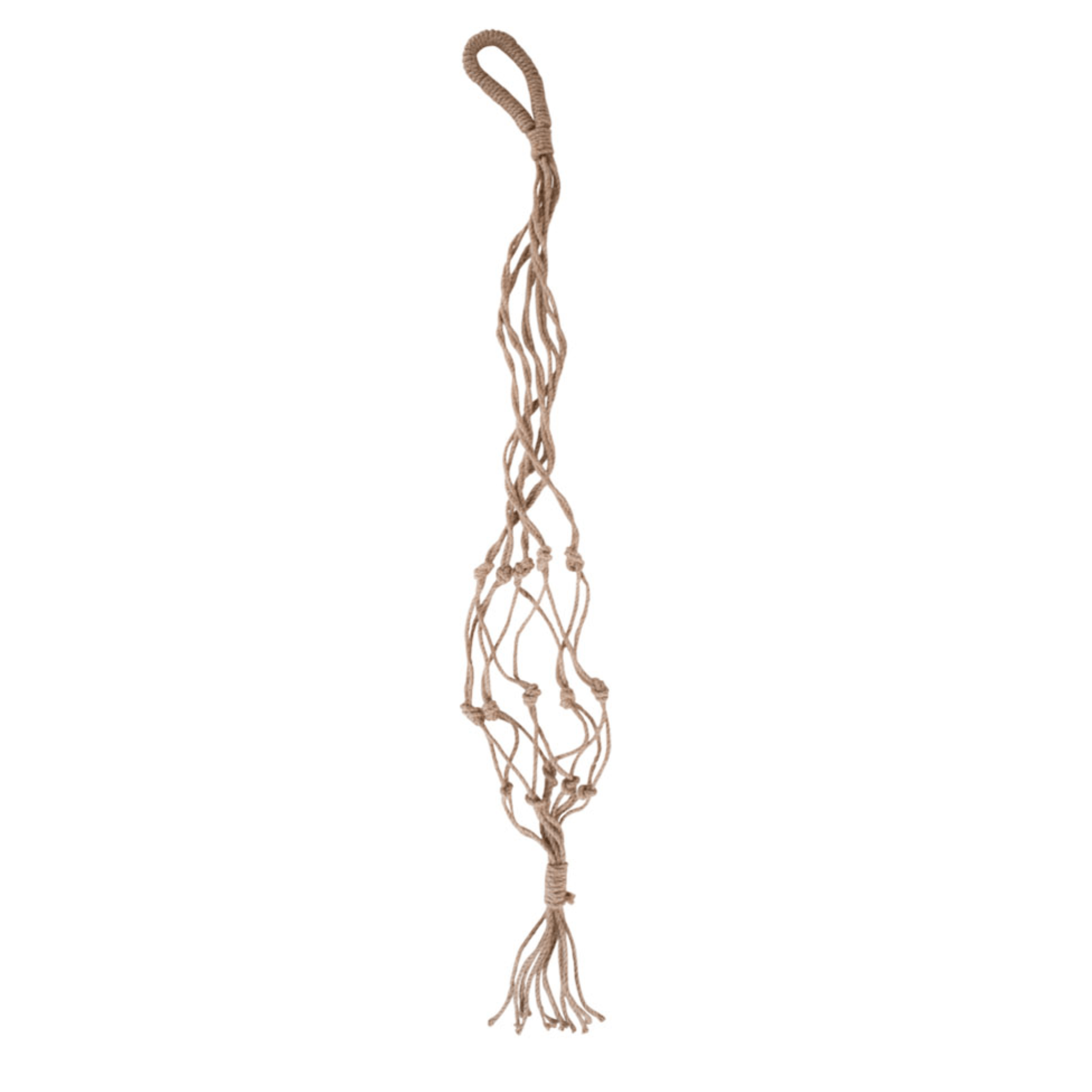 Kvetináče na stolíkoch, komodách, na zemi? To je nuda! Makramé záves na kvetináče CHINNOA ich hravo nechá pohojdávať sa v priestore. Povraz je vyrobený z vlákien exotickej juty v prírodnom odtieni. Povraz na kvetináče CHINNOA nechá vyniknúť rastliny v inak obyčajných kvetináčoch a premení ich tak na jedinečný dekoratívny prvok naprieč celou domácnosťou.