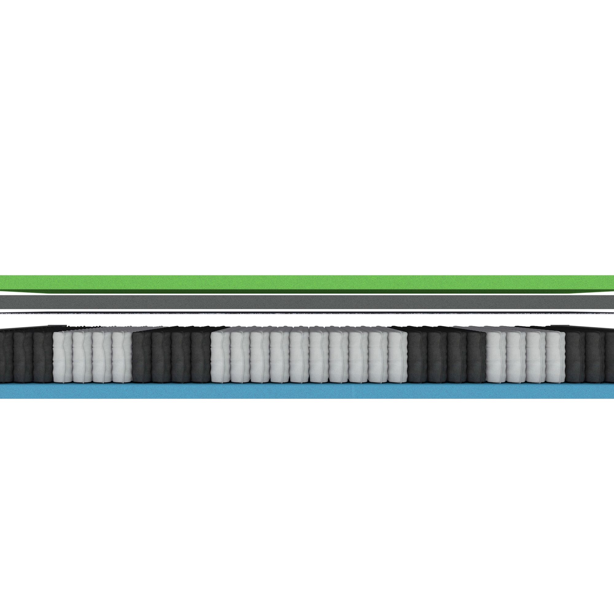 Pružinový matrac AMBRA ROLO je vybavený 1000 samostatne balenými pružinami. Balenie do jednotlivých taštičiek zvyšuje životnosť matraca a umožňuje jednotlivým bodom samostatne kopírovať telo. Vďaka vysokému počtu pružín a ich rozdeleniu do 7 zón tuhosti má matrac výborné ortopedické vlastnosti. Maximálny pocit sviežosti, relaxácie a komfortu zaisťuje vysoko priedušná a elastická penová vrstva GREENGEL. Farebné vyhotovenie jednotlivých vrstiev sa môže od uvedených fotografií líšiť, avšak ich vlastnosti zostávajú rovnaké. Poťah z prírodného materiálu LYOCELL je zamatovo hebký a navyše výborne odvetráva a odvádza vlhkosť a tým podporuje hygienickosť matraca.