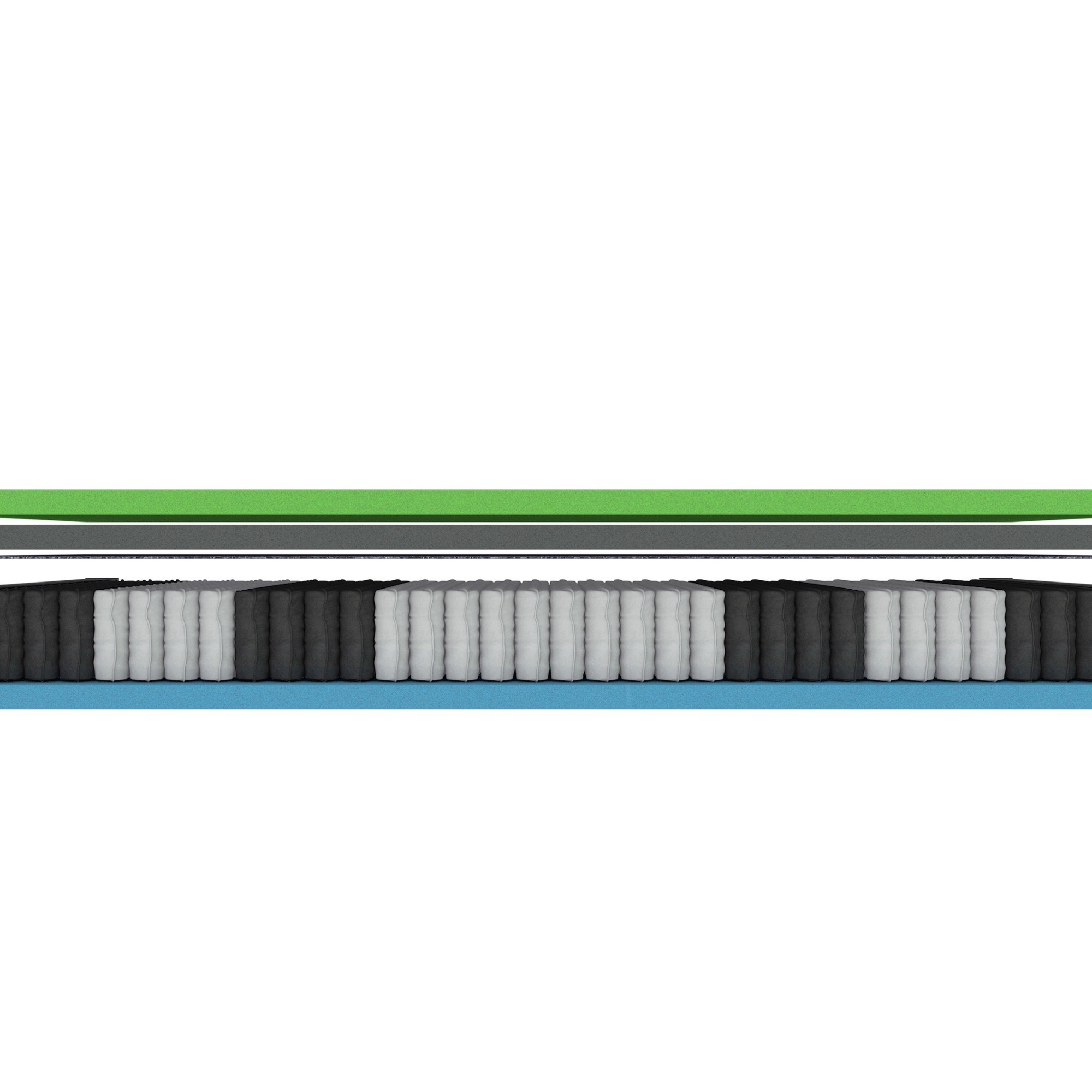 Spodná vrstva matraca je tvorená z peny špičkových parametrov NIGHTFLY. Pena sa vyrába exkluzívnou vodnou vyplňovacou metódou. Tento spôsob výroby je nielen ekologický, ale zároveň vyniká vysokým komfortom, odolnosťou voči deformáciám a prekonáva bežný štandard bodovej elasticity. Jadro matraca je tvorené taštičkovými pružinami. Vďaka samostatnému uloženiu každej pružiny zvlášť do taštičky, umožňuje matrac presné kopírovanie tela. Oproti klasickým bonell pružinovým matracom má matrac s taštičkovými pružinami oveľa lepšie ortopedické vlastnosti, a to hlavne vďaka rozloženiu pružín do 7 zón tuhosti. Počet taštičkových pružín sa pri klasických rozmeroch pohybuje okolo 350 kusov. Takto vysoký počet samostatne "pracujúcich" ortopedických bodov vám poskytne maximálny pocit pohodlia a radosť zo spánku. Vrchnú vrstvu matraca tvorí pena GREENGEL, ktorá je svieža a priedušná. Pri použití ako vrchnej vrstvy matrac zaisťuje neopakovateľný pocit sviežosti. Spánok na matraci s penou GREENGEL bude jedinečnou osviežujúcou relaxáciou. Farebné vyhotovenie jednotlivých penových vrstiev sa môže od uvedených fotografií líšiť, avšak ich vlastnosti zostávajú rovnaké. Snímateľný poťah z LYOCELL je prateľný a tvorený z drevnej celulózy, jedná sa o prírodný produkt. LYOCELL dobre absorbuje vlhkosť, rýchlo odvetráva a zaisťuje tak vysokú hygienu matraca. Materiál je prirodzene antibakteriálny a je tak vhodný aj pre alergikov. Pre lepšie prevzdušnenie jadra sú bočné strany tvorené kombináciou LYOCELLU a 3D textílie.
