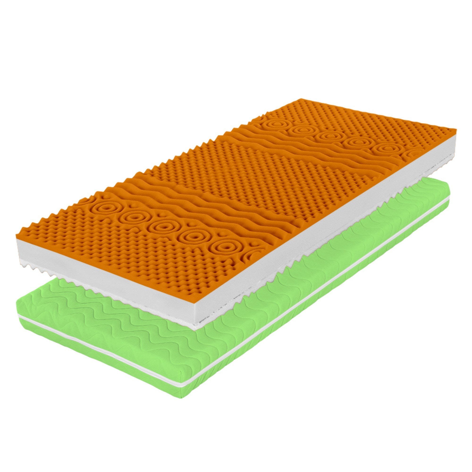 Ortopedický penový matrac COLOR DREAMS NEW je špeciálne navrhnutý pre deti a dorast. Jednotlivé strany matraca sa síce vyznačujú rozdielnou tuhosťou, obe však disponujú rovnakou 7-zónovou anatomickou profiláciou rôznych tvarov, ktorá celkovo prispieva nielen k aktívnej cirkulácii vzduchu, ale tiež sa lepšie prispôsobí jednotlivým partiám tela. Sendvičové jadro matraca sa skladá celkom z troch vrstiev. Stredná vrstva je vyrobená z kvalitnej studenej peny Flexifoam®, ktorá dodáva matracu prirodzenú tuhosť a pružnosť súčasne. Prvá strana peny Flexifoam® RELAX SOFT sa vyznačuje nižšou tuhosťou s odporúčanou nosnosťou do 90 kg. Je určená pre užívateľov od 3 do 14 rokov. Druhá strana peny Flexifoam® RELAX HARD sa vyznačuje vyššou tuhosťou s odporúčanou nosnosťou do 130 kg. Je určená pre užívateľov od 15 rokov. Farebné tóny jednotlivých penových vrstiev sa môžu od uvedených fotografií líšiť, avšak ich vlastnosti zostávajú rovnaké. Na údržbu nenáročný a hygienický poťah s dutými vláknami možno vďaka zipsu a dvojdielnej konštrukcii ľahko sňať a prať pri teplote 60 °C. V našej ponuke si vyberiete z ďalších farebných variantov poťahov matraca COLOR DREAMS NEW, záleží na vás, ktorý si zamilujete. Matrac je vhodný pre rošty latkové, lamelové a zároveň polohovateľné mechanicky aj elektricky.