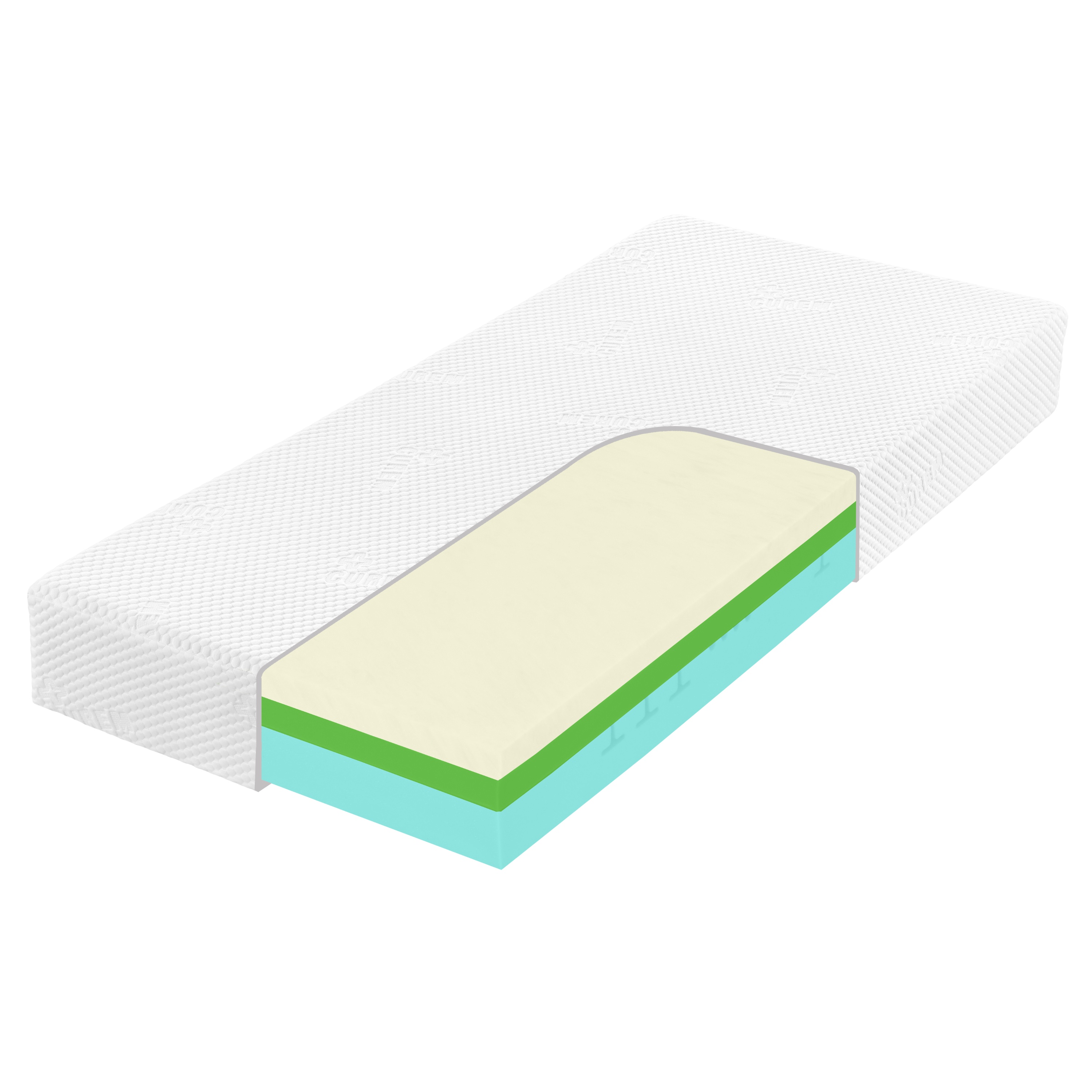 Vrchná vrstva z pamäťovej visco peny reaguje na tlak a teplotu tela, čím sa prispôsobí jeho krivkám a pomáha uľaviť kĺbom aj svalom. Stred matraca tvorí hybridná pena vyššej tuhosti, ktorá zabezpečuje ideálnu rovnováhu medzi pružnosťou, vzdušnosťou a odolnosťou. Spodná vrstva z peny Flexifoam® podporuje správnu cirkuláciu vzduchu a prispieva k udržaniu hygienického prostredia. Matrac je obojstranný, takže si jednoduchým otočením môžete vybrať medzi stredne tvrdou a tvrdou stranou.
