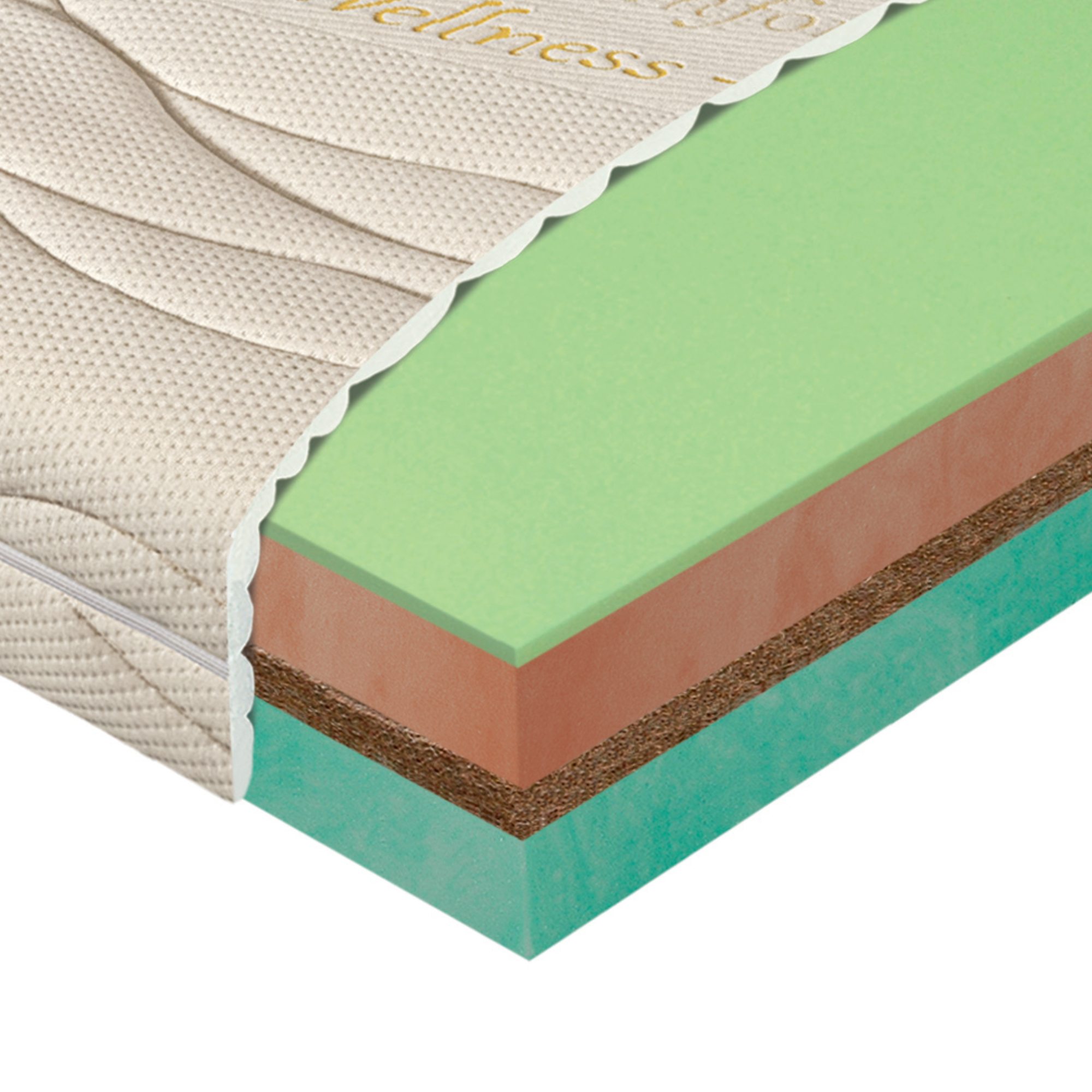 Matrac GREEN NIGHT sa skladá zo štyroch vrstiev a snímateľného poťahu. Horná vrstva je tvorená studenou penou GREENGEL, ktorá poskytuje neopakovateľný pocit sviežosti počas spánku a je vysoko elastická. Pod touto vrstvou sa nachádza hnedá vrstva BIOGREEN, ktorá je vyrobená z prírodných materiálov-ricínových olejov. Vďaka tomu je šetrnejší k prírode a zároveň vnáša kúsok prírody do našich spální. Naviac je napustený výťažkom z ALOE VERA, ktorý v kombinácii s ricínovým olejom zlepšuje relaxáciu počas spánku a má antibakteriálne účinky. Vrstva BIOGREEN tvorí aj spodnú vrstvu matraca a medzi týmito vrstvami sa nachádza vrstva z kokosového vlákna, ktorá dodáva matracu na pevnosti a tuhosti. Farebné vyhotovenie jednotlivých penových vrstiev sa môže od uvedených fotografií líšiť, avšak ich vlastnosti zostávajú rovnaké. Matrac je chránený snímateľným poťahom vyrobeným z prírodného bambusového vlákna, bavlny a polyesteru. Bambusové prímesi prirodzene odpudzujú mikroorganizmy. Poťah môžete prať na 60 ° C v bežných pracích prostriedkoch.