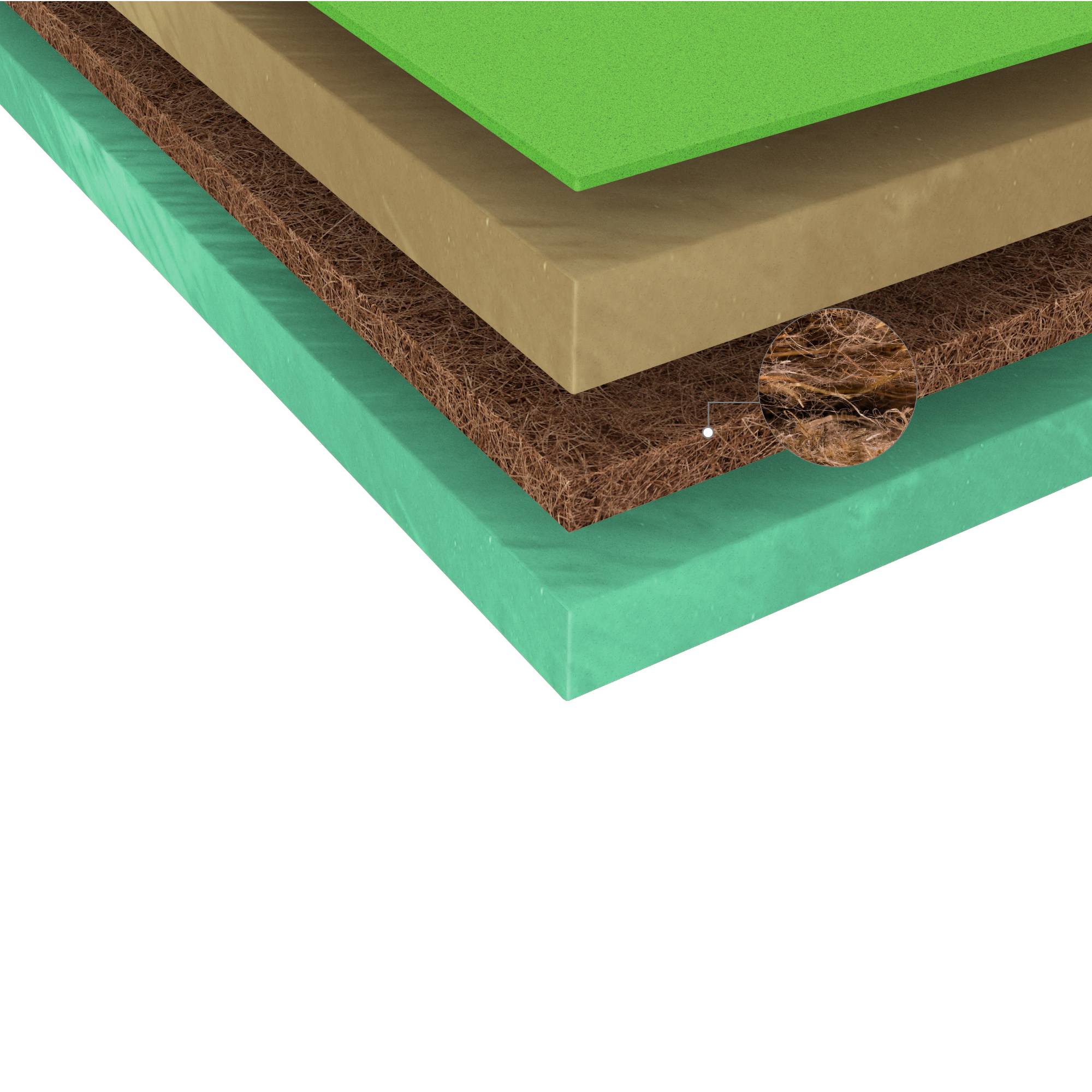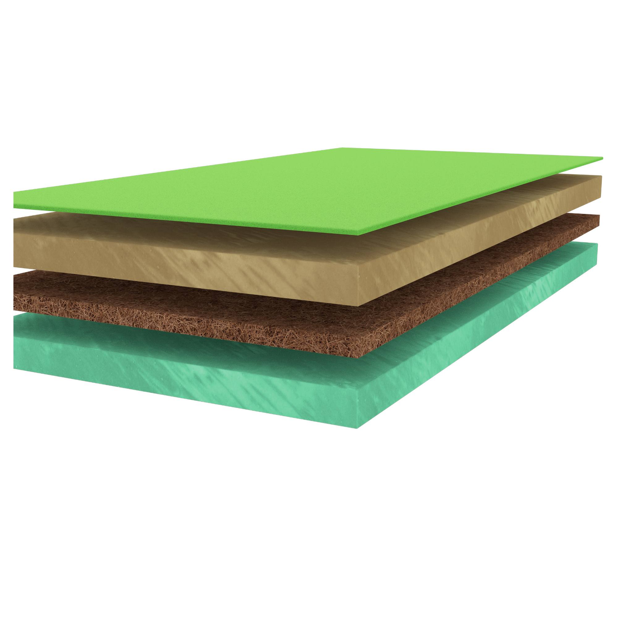 Matrac GREEN NIGHT sa skladá zo štyroch vrstiev a snímateľného poťahu. Horná vrstva je tvorená studenou penou GREENGEL, ktorá poskytuje neopakovateľný pocit sviežosti počas spánku a je vysoko elastická. Pod touto vrstvou sa nachádza hnedá vrstva BIOGREEN, ktorá je vyrobená z prírodných materiálov-ricínových olejov. Vďaka tomu je šetrnejší k prírode a zároveň vnáša kúsok prírody do našich spální. Naviac je napustený výťažkom z ALOE VERA, ktorý v kombinácii s ricínovým olejom zlepšuje relaxáciu počas spánku a má antibakteriálne účinky. Vrstva BIOGREEN tvorí aj spodnú vrstvu matraca a medzi týmito vrstvami sa nachádza vrstva z kokosového vlákna, ktorá dodáva matracu na pevnosti a tuhosti. Farebné vyhotovenie jednotlivých penových vrstiev sa môže od uvedených fotografií líšiť, avšak ich vlastnosti zostávajú rovnaké. Matrac je chránený snímateľným poťahom vyrobeným z prírodného bambusového vlákna, bavlny a polyesteru. Bambusové prímesi prirodzene odpudzujú mikroorganizmy. Poťah môžete prať na 60 ° C v bežných pracích prostriedkoch.
