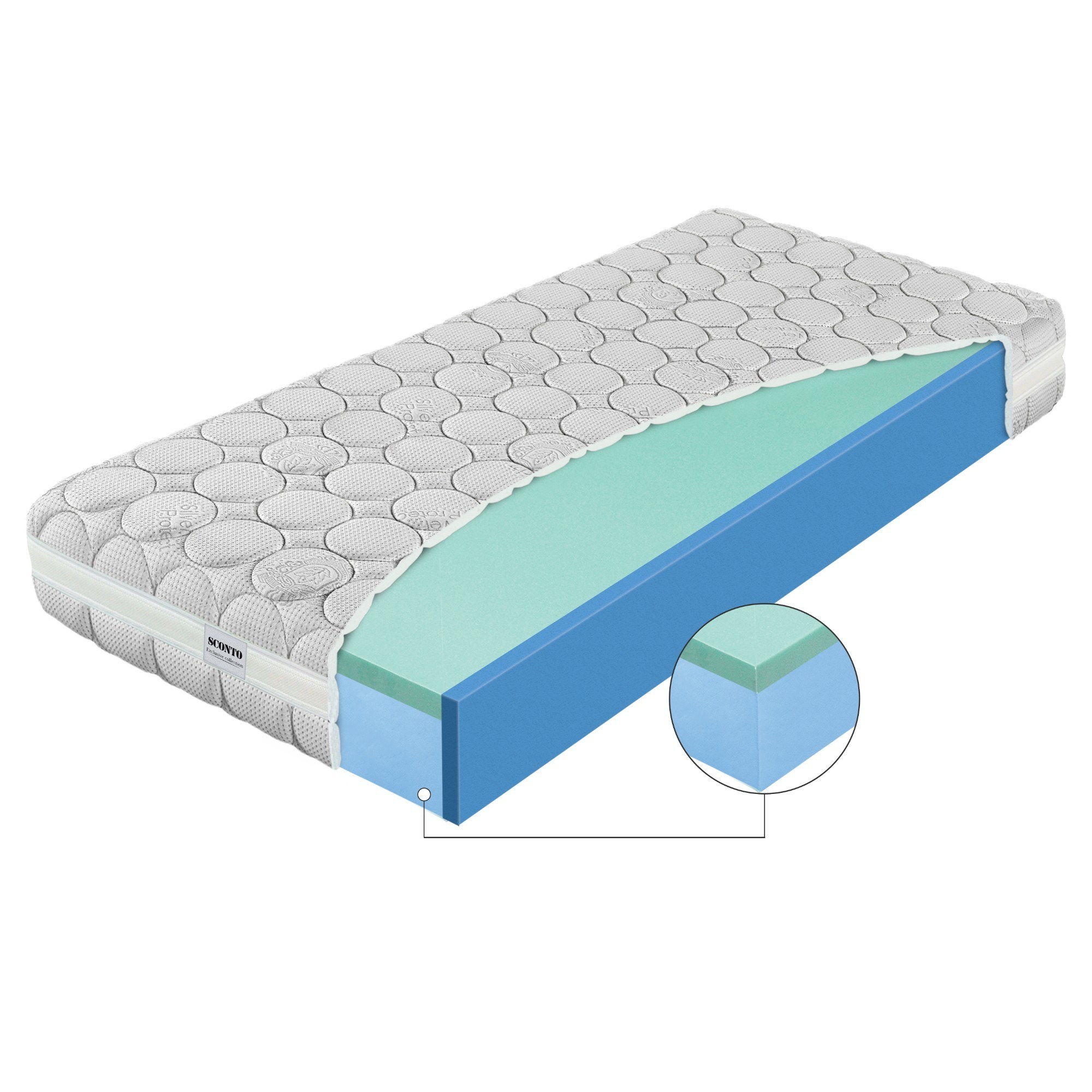 Matrac sa skladá z dvoch penových vrstiev a snímateľného poťahu. Spodná vrstva je tvorená vysoko kvalitnou ELIOCELL penou, ktorá má unikátne kopírovacie vlastnosti a pevnosť. Vrchná pena VISCOGREEN je lenivá pena, ktorá sa vyznačuje pamäťovým efektom. Vďaka pamäťovým vlastnostiam dokonale kopíruje kontúry tela v akejkoľvek pozícii a disponuje efektom pomalého vrátenia do pôvodnej polohy. Naviac má výborné regeneračné a antibakteriálne schopnosti. Pamäťová vrstva VISCOGREEN je vyrobená z prírodného ricínového oleja. Použitím prírodných materiálov je šetrnejšia k životnému prostrediu. Farebné vyhotovenie jednotlivých penových vrstiev sa môže od uvedených fotografií líšiť, avšak ich vlastnosti zostávajú rovnaké.Poťahová látka SILVER PROTECT je pretkaná vysoko kvalitným striebrom. Ionizovaný povrch má antibakteriálne vlastnosti a už do dvoch hodín je schopný eliminovať až 90 percent baktérií. Ideálny je aj pre alergikov a zabraňuje vzniku plesní a nepríjemného zápachu. Do boku matraca je do poťahu všitá 3D textília pre maximálny odvod vlhkosti z jadra matraca.