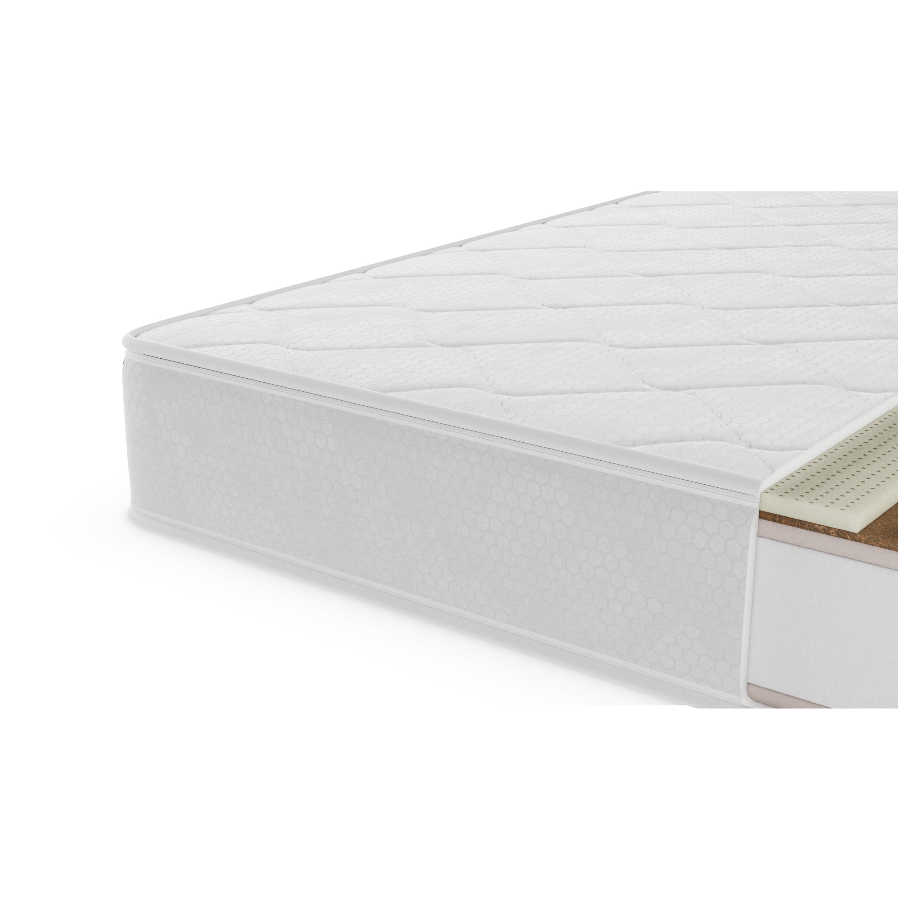 Mäkšiu stranu matraca dotvára 2 cm vrstva polyuretánovej peny, zatiaľ čo druhá, pevnejšia strana kombinuje 2 cm polyuretánovej peny, 1 cm vrstvu kokosových vlákien a 2 cm latexovej vrstvy pre vyššiu stabilitu a odolnosť. Vďaka tomu si môžete vybrať medzi strednou a vysokou tuhosťou podľa vašich aktuálnych preferencií.