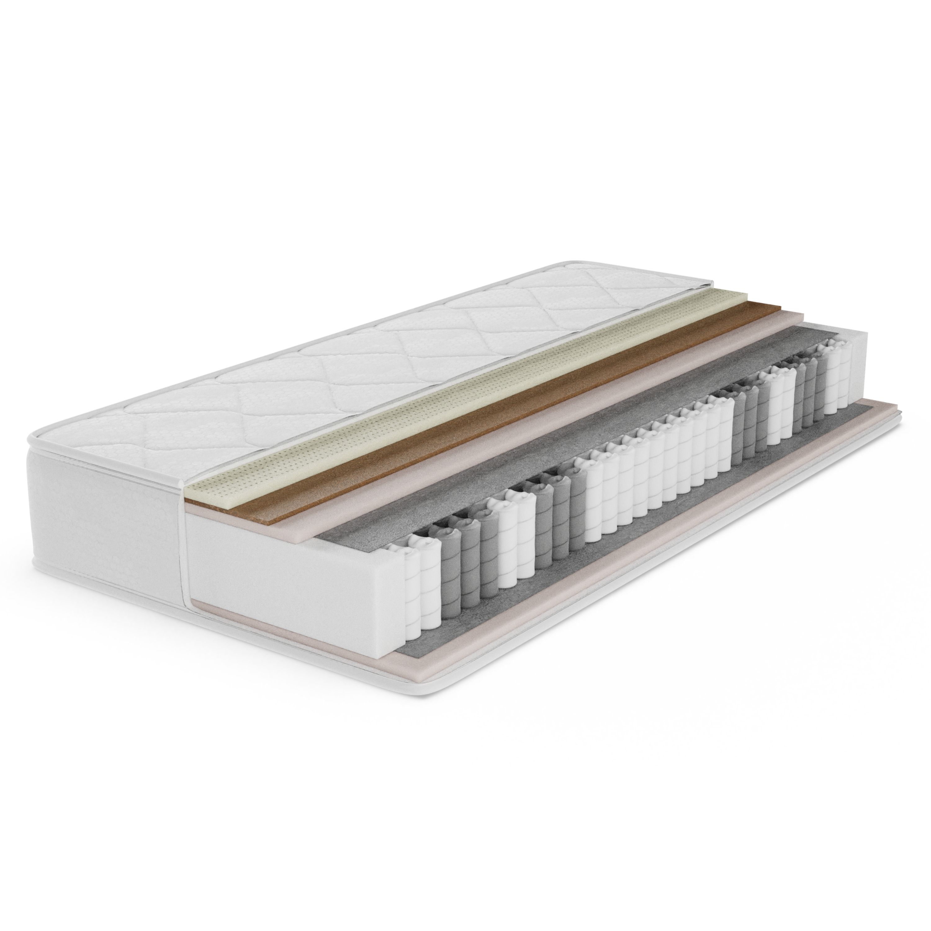 Mäkšiu stranu matraca dotvára 2 cm vrstva polyuretánovej peny, zatiaľ čo druhá, pevnejšia strana kombinuje 2 cm polyuretánovej peny, 1 cm vrstvu kokosových vlákien a 2 cm latexovej vrstvy pre vyššiu stabilitu a odolnosť. Vďaka tomu si môžete vybrať medzi strednou a vysokou tuhosťou podľa vašich aktuálnych preferencií.
