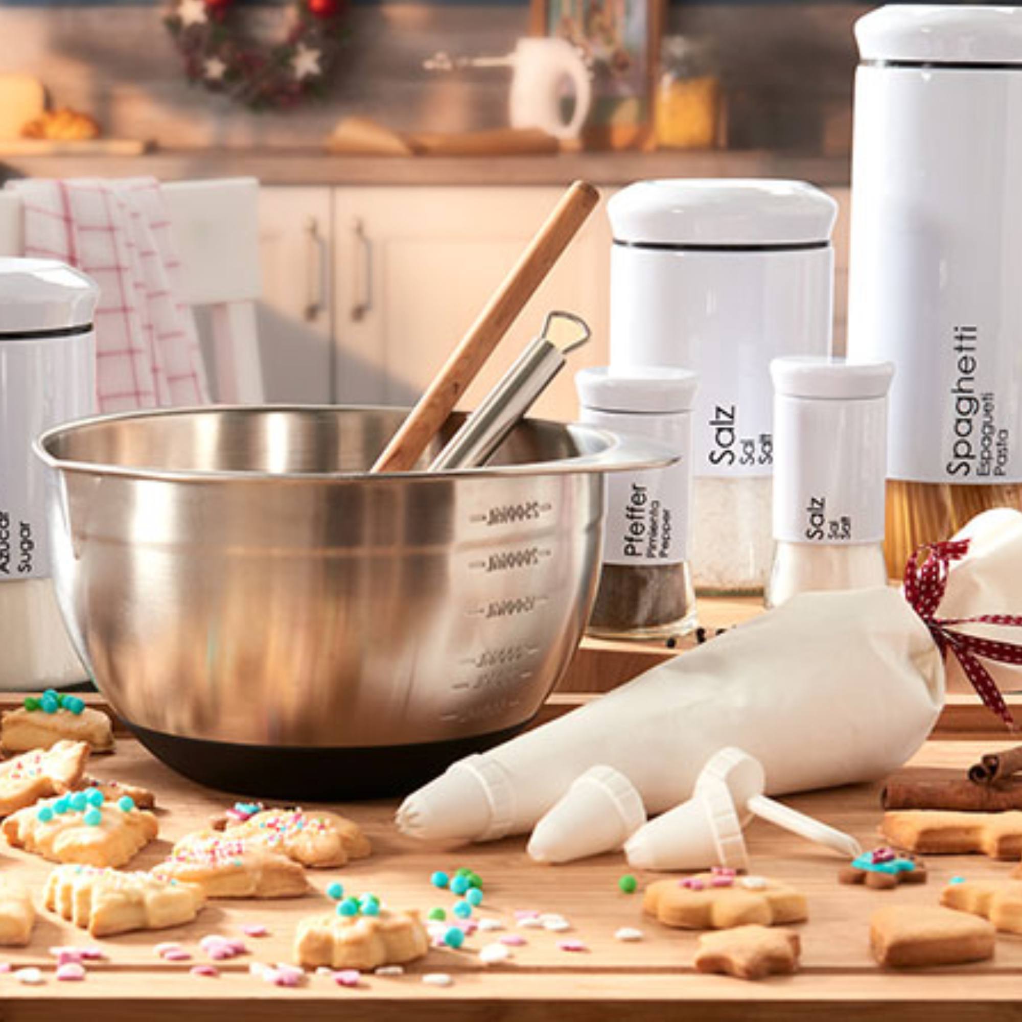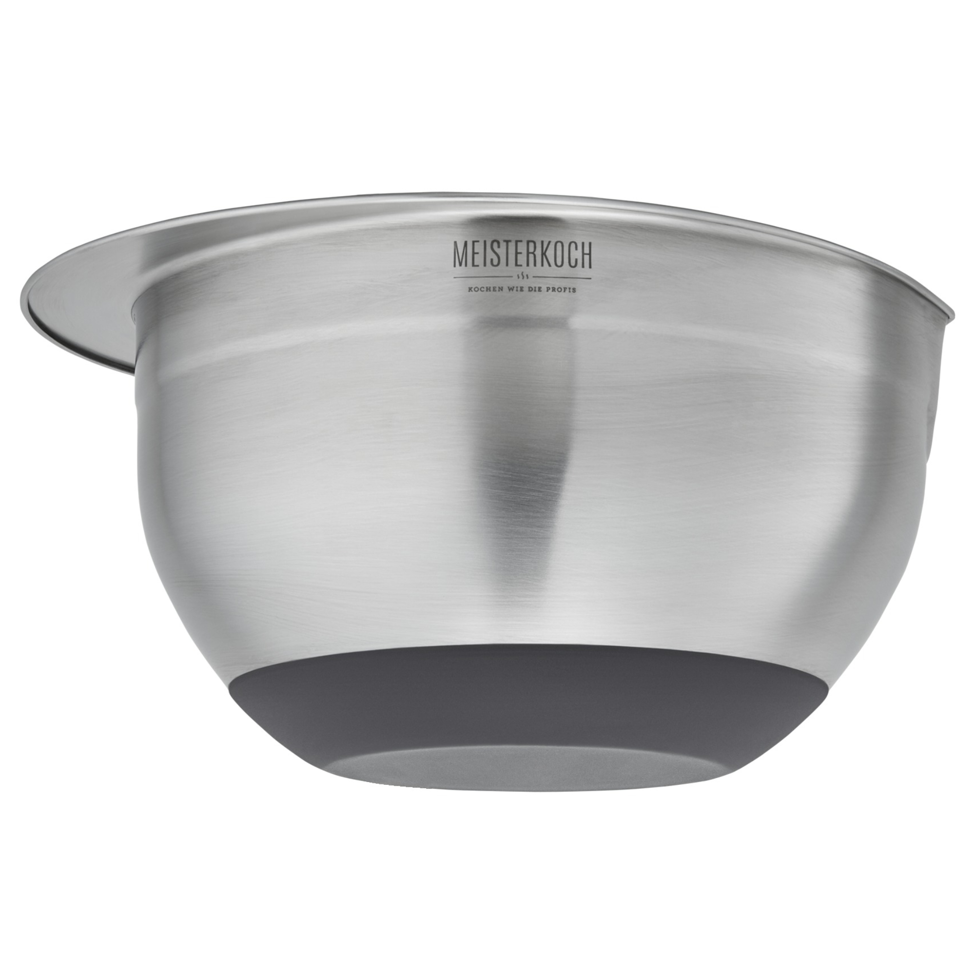 Využijete ju nielen na miešanie, ale aj na meranie, miešanie alebo dočasné skladovanie. Miska má vysoké a robustné telo v tvare pologule s matnou povrchovou úpravou. Detaily ako široký odlievací okraj, merná stupnica a silikónové protišmykové dno iste ocení každá moderná gazdinka.