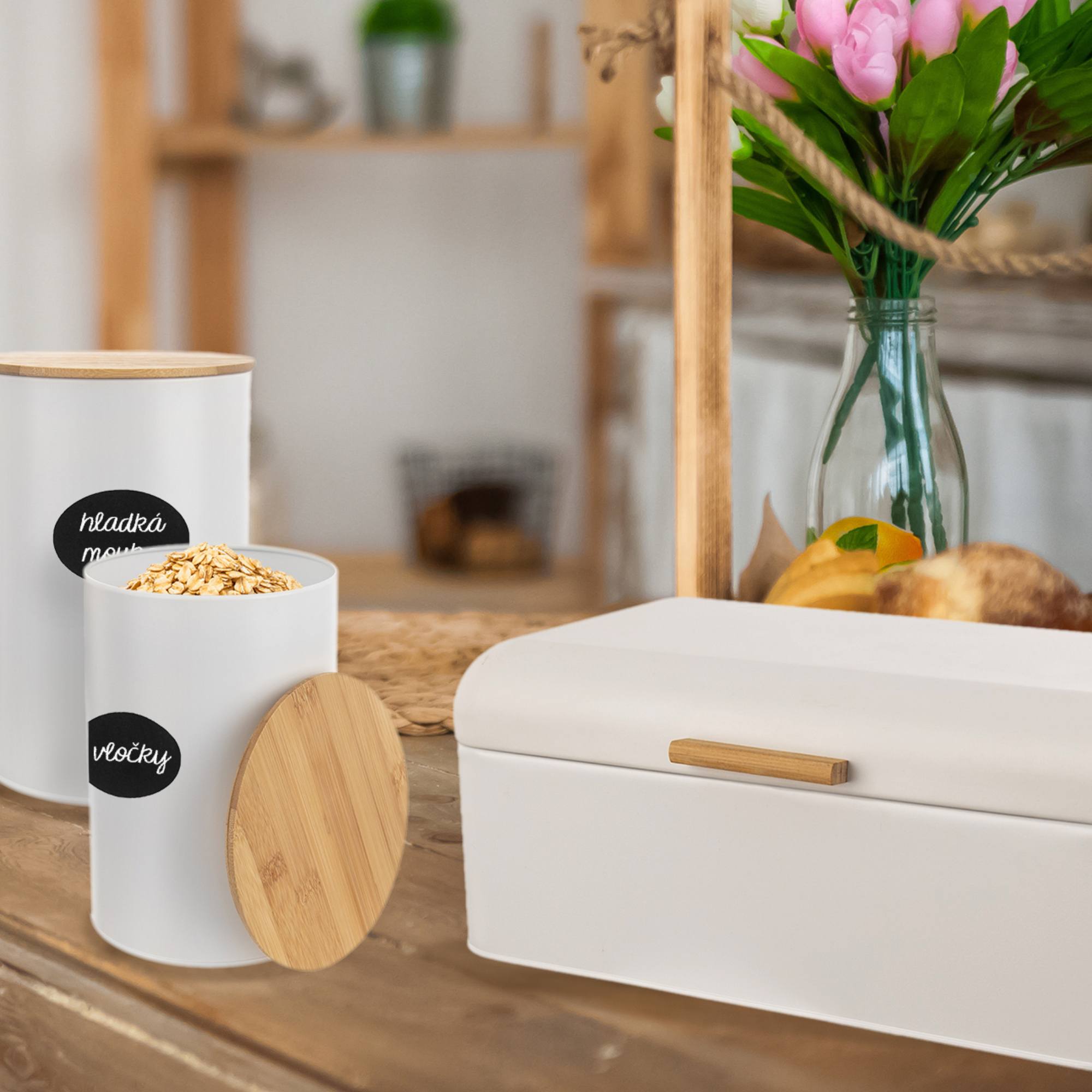 Biela plechová nádoba na chlieb WHITELINE sa stane jednoduchým a pritom štýlovým riešením, kam ukladať čerstvé pečivo. Pôsobí dominantne na rustikálnej aj minimalisticky riešenej kuchynskej linke alebo komode, kde je treba mať po ruke pečivo. V nádobe na chlieb neoschne a nestvrdne, navyše ho ochráni pred dotieravým hmyzom. Má výklopné veko s bambusovou rukoväťou.