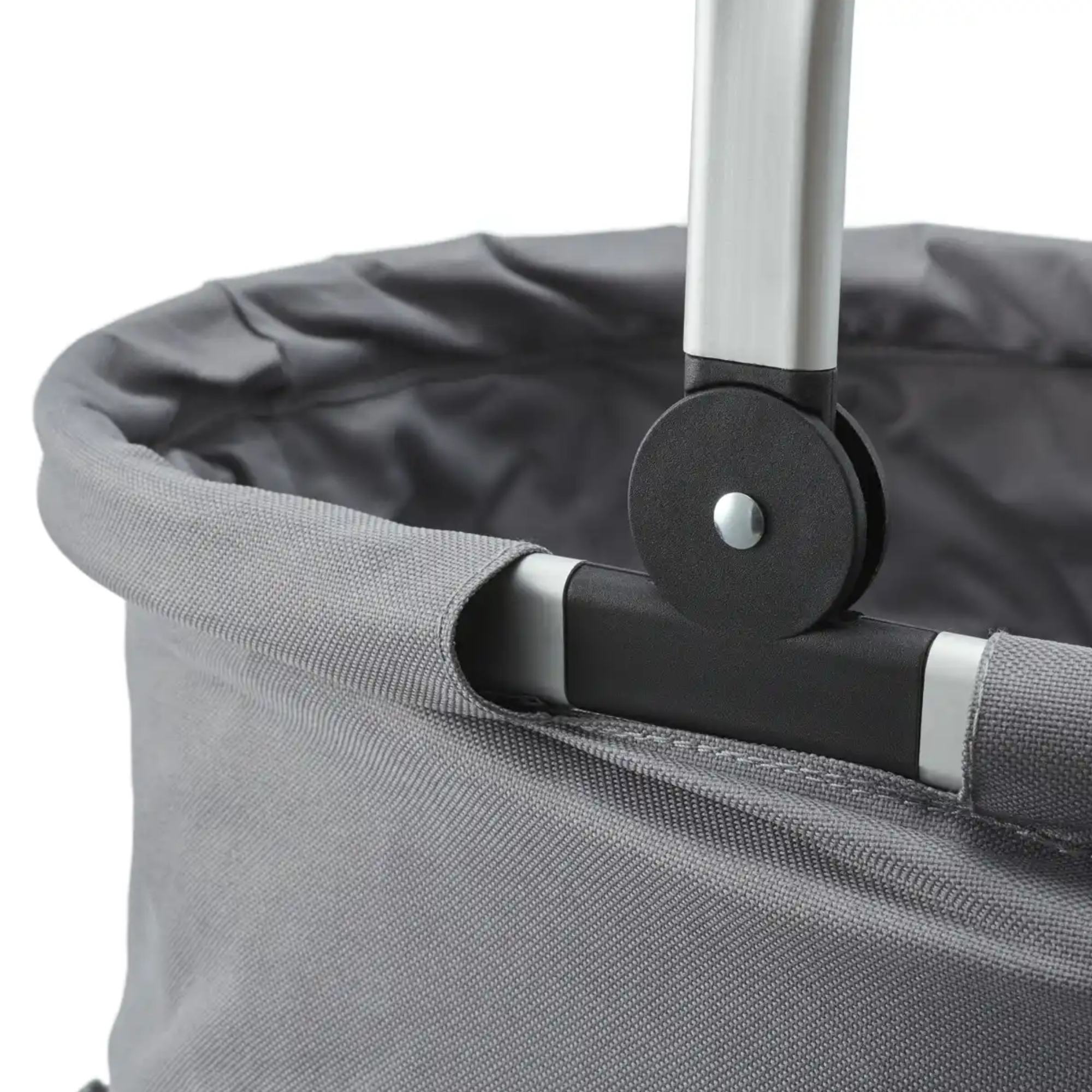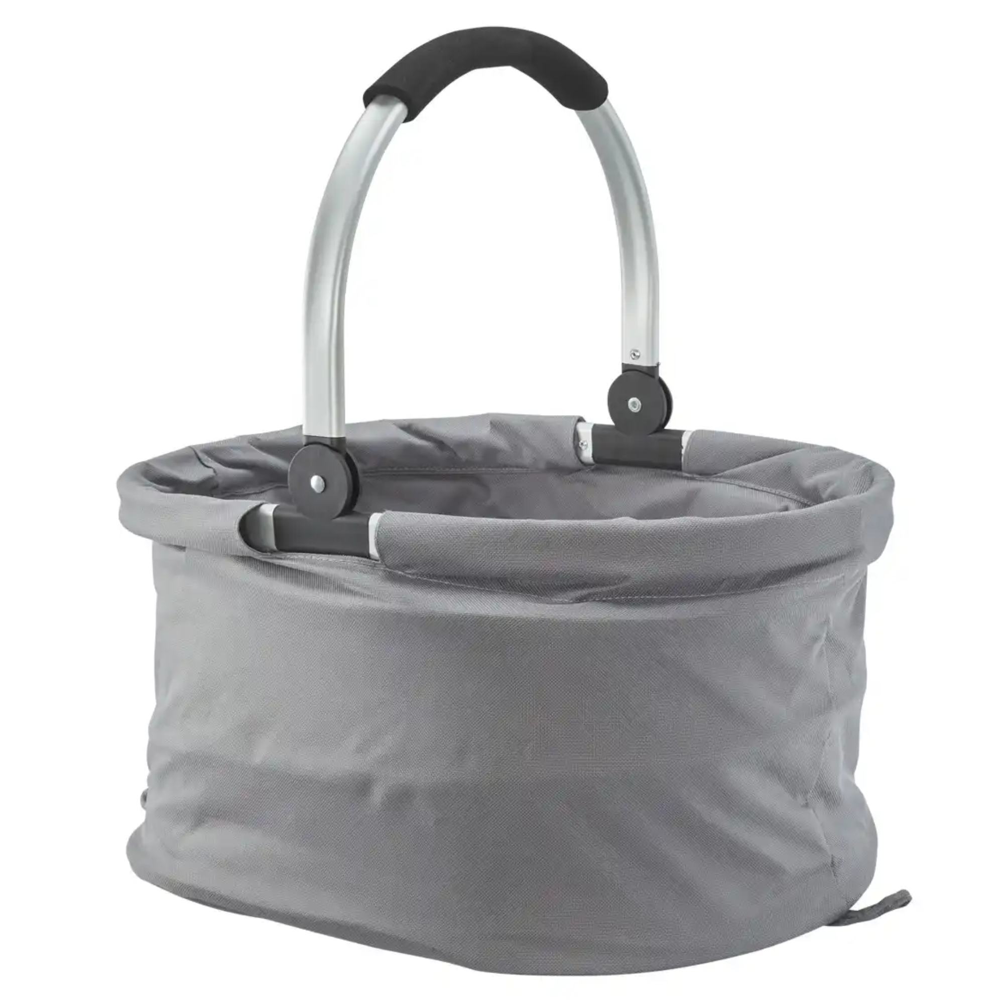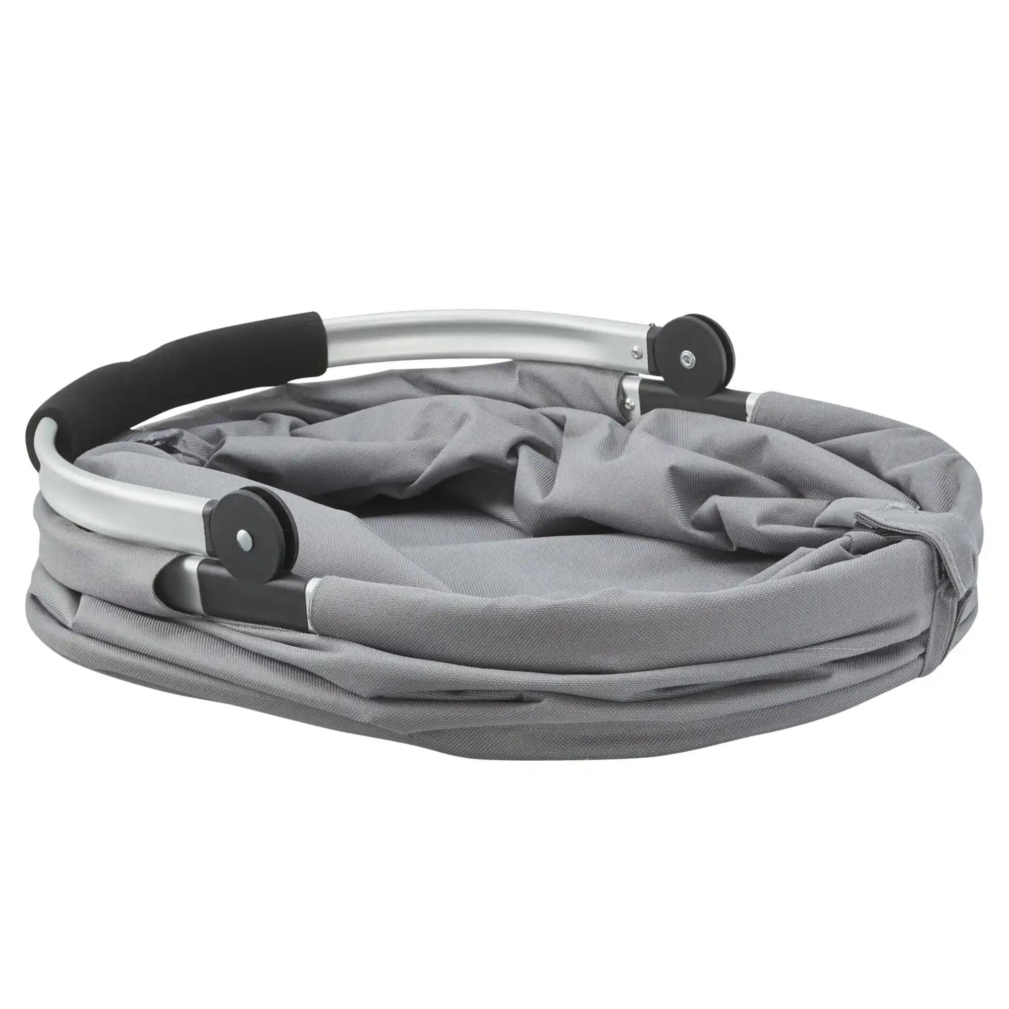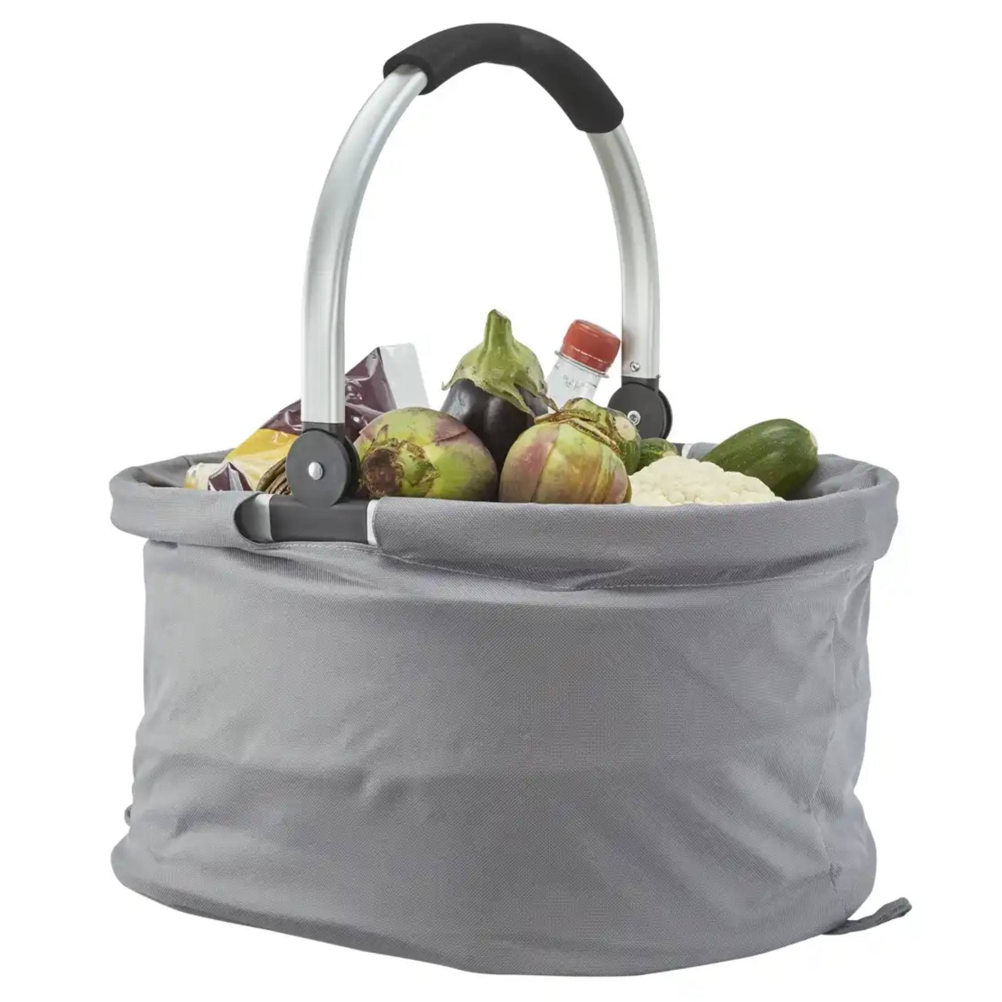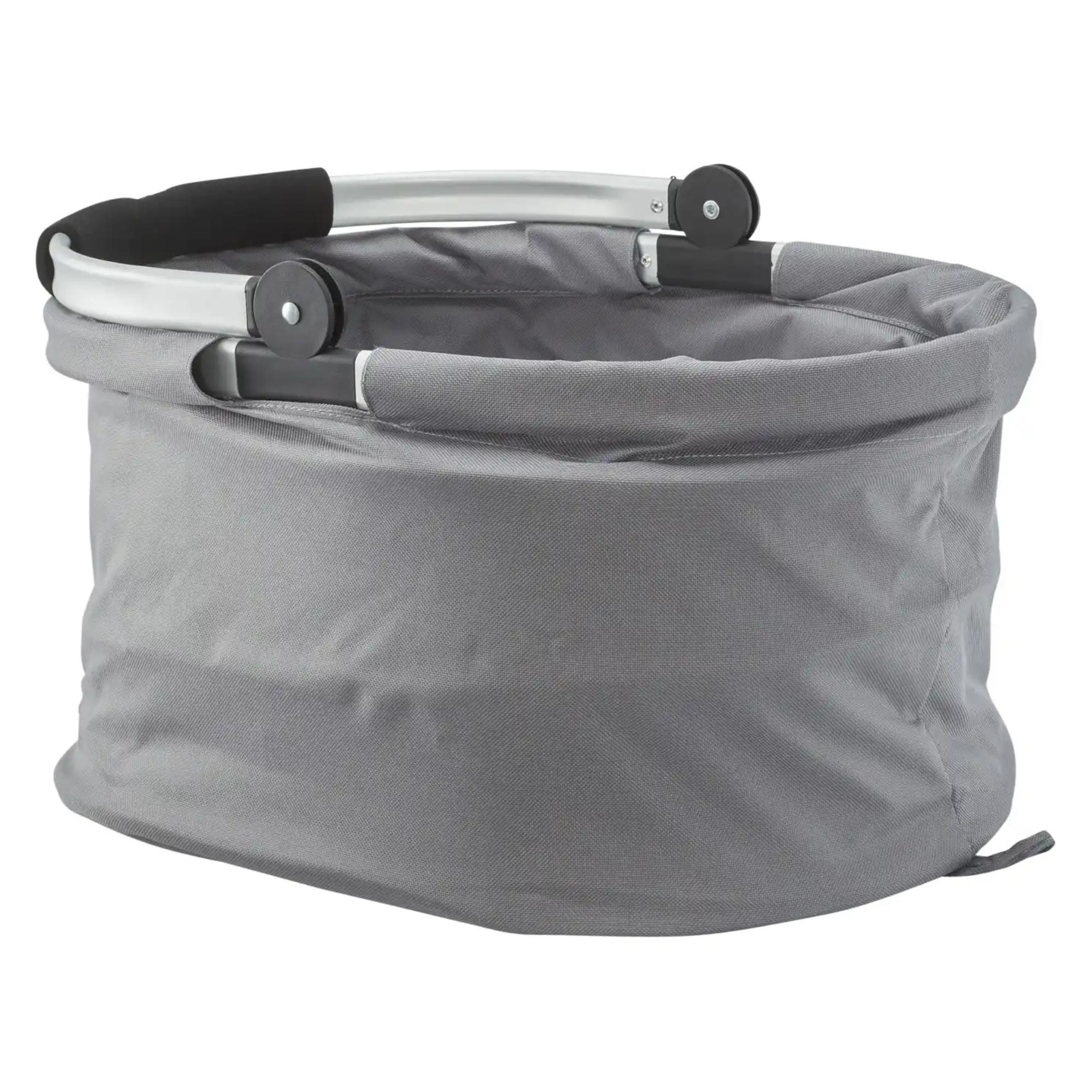 Košík má hliníkovú konštrukciu s úchytom, vybaveným mäkkou penou pre pohodlnejšie prenášanie vášho nákupu. Textilný obal z polyesteru ľahko očistíte od nečistôt vlhkou handričkou. Jednoduchý skladací systém uľahčuje uloženie a nezaberie vám veľa miesta v aute. Dno je vybavené nožičkami, ktoré udržia povrch košíka v čistote.