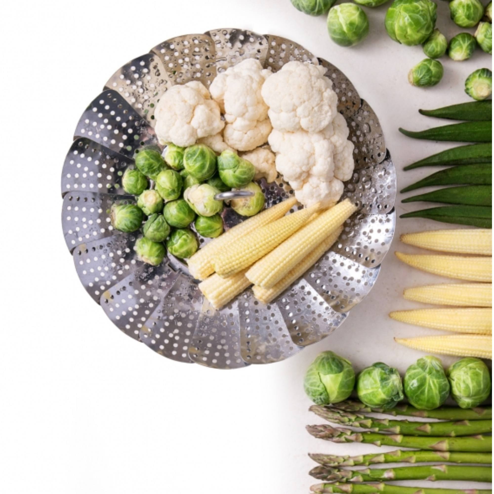 Je vhodná na naparovanie knedlíkov aj varenie zeleniny a iných pokrmov v pare, čím zachováte potrebné minerály a vitamíny. Naparovací vejár je variabilný a môžete ho použiť do hrncov s priemerom 17-28 cm. Po použití ho môžete jednoducho umyť v umývačke riadu.