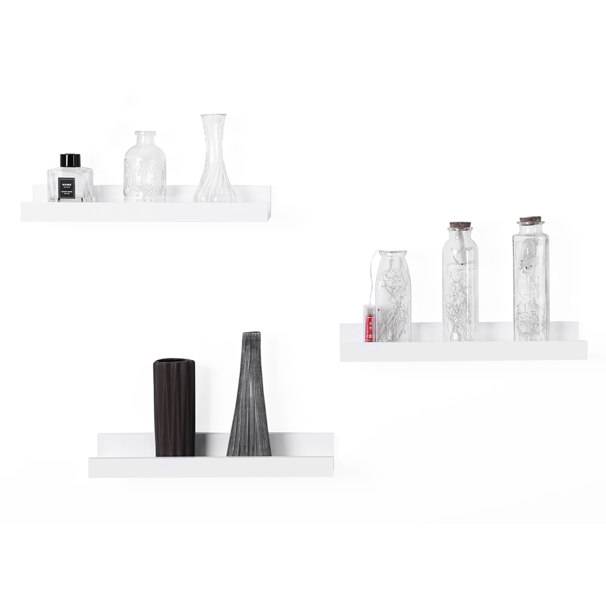 Nástenné police CUBES 38 v minimalistickom, nadčasovom vyhotovení sú vyhotovené v univerzálnom bielom vyhotovení, ktoré ľahko zapadne takmer do akéhokoľvek interiéru. Sada 3 kusov políc s rovnakou veľkosťou poskytne nielen odkladací priestor na širokú škálu predmetov, ale police sa tiež stanú jedinečnou dekoráciou. Variabilným zostavením zvládnete vytvoriť priestor, ktorý bude dokonale odrážať vašu osobnosť.