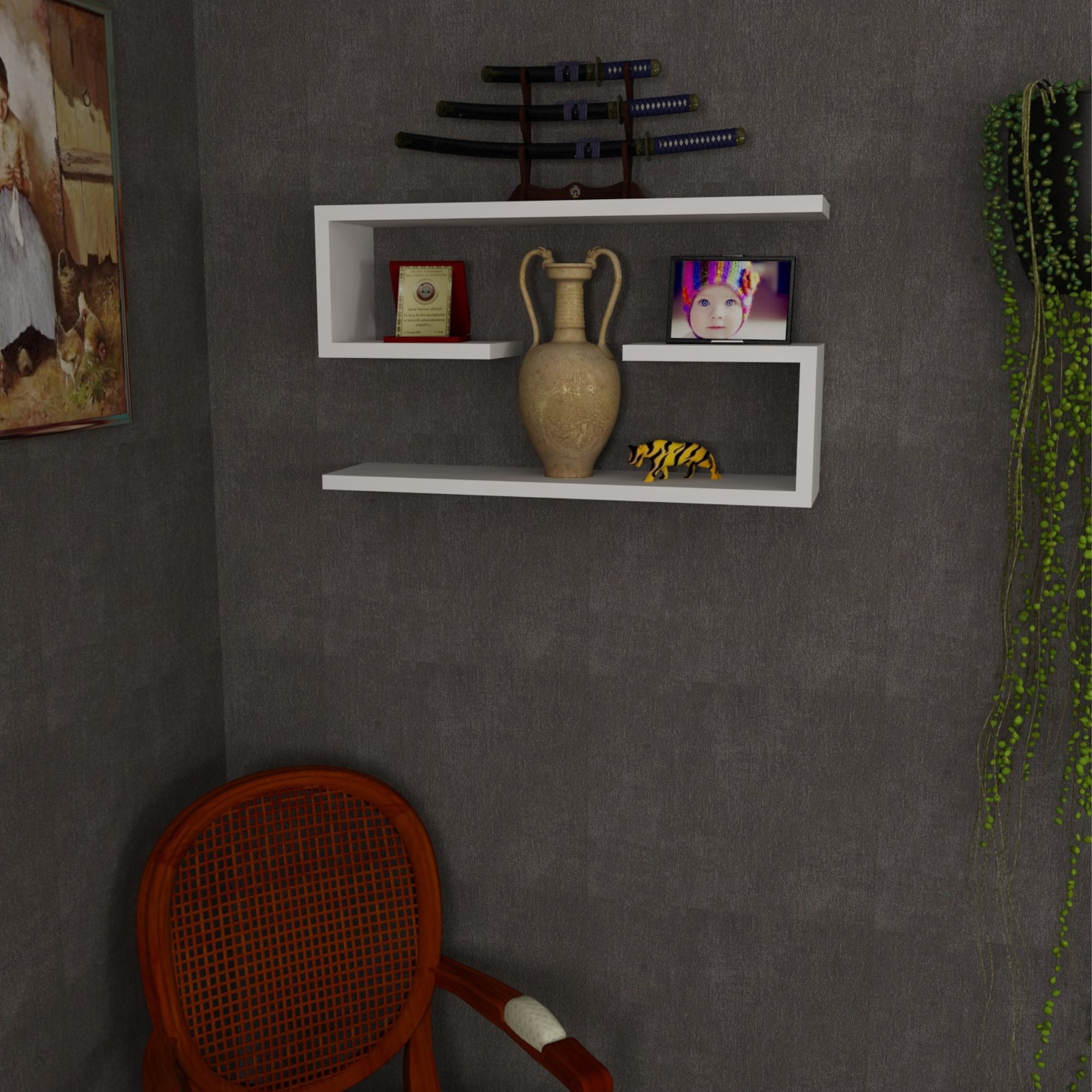 Nástenná polica JENIKA upúta vašu pozornosť svojim atypickým vzhľadom. Pokiaľ ju umiestnite na prázdnu stenu, nielenže ju oživí, ale vďaka nej získate aj odkladací priestor na najrôznejšie predmety. Na polici môžete vystaviť vaše obľúbené dekorácie či fotografie, čím do interiéru vtlačíte kúsok vašej osobnosti. Vyrobená je z laminovaného dreveného materiálu, ktorý sa jednoducho udržuje. Súprava obsahuje 2 kusy políc.