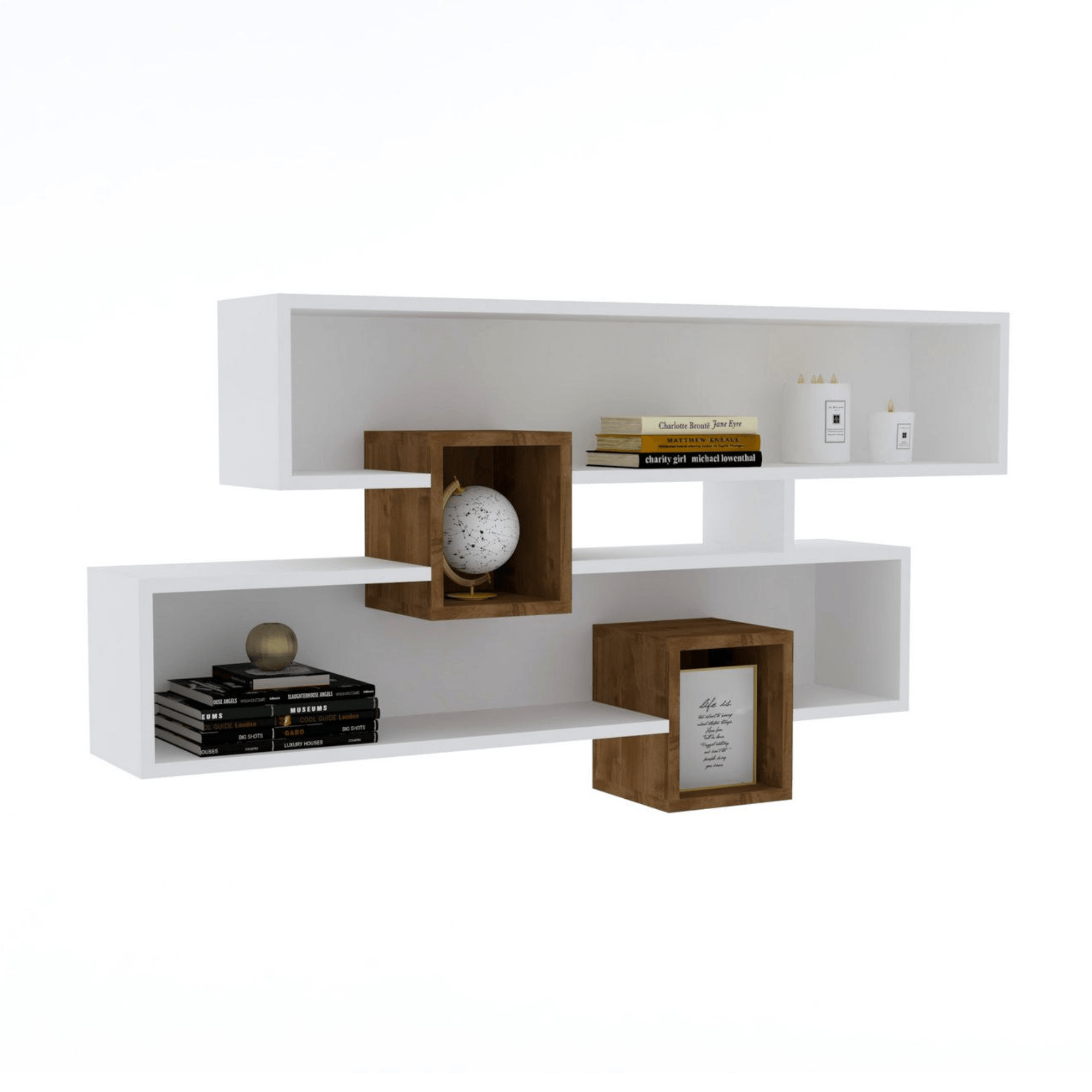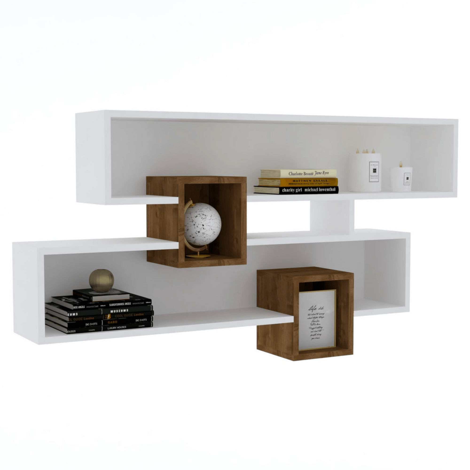 Nástenná polica KAREN - orech/biela