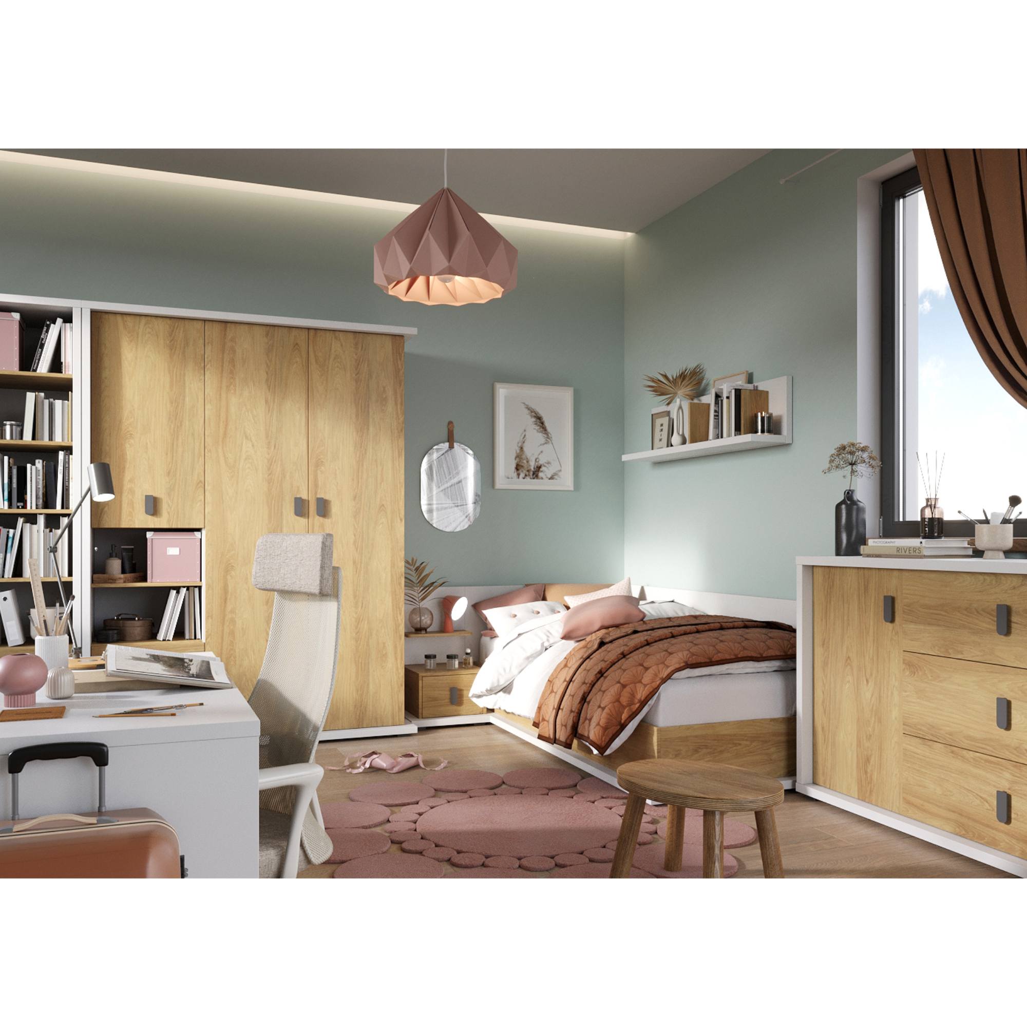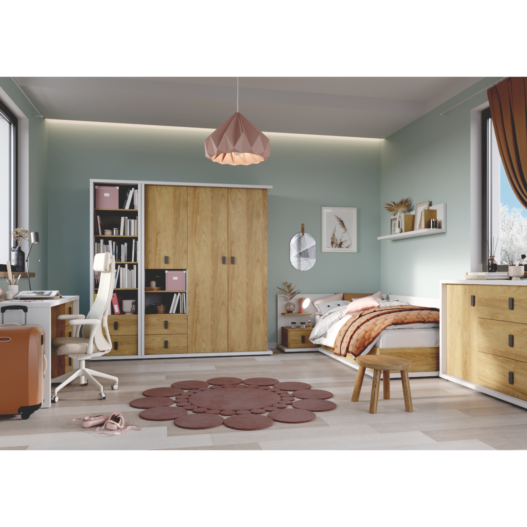 Nástenná polica MASSI 07 dokonale dopĺňa ostatný nábytok z rovnomenného programu. Biela polička a dekor duba hikora pôsobí elegantným a moderným dizajnom. Nenáročnosť dizajnu nechá vyniknúť dekorácie, ktoré si vaše ratolesti na poličke vystavia. Nosnosť poličky je 5 kg.