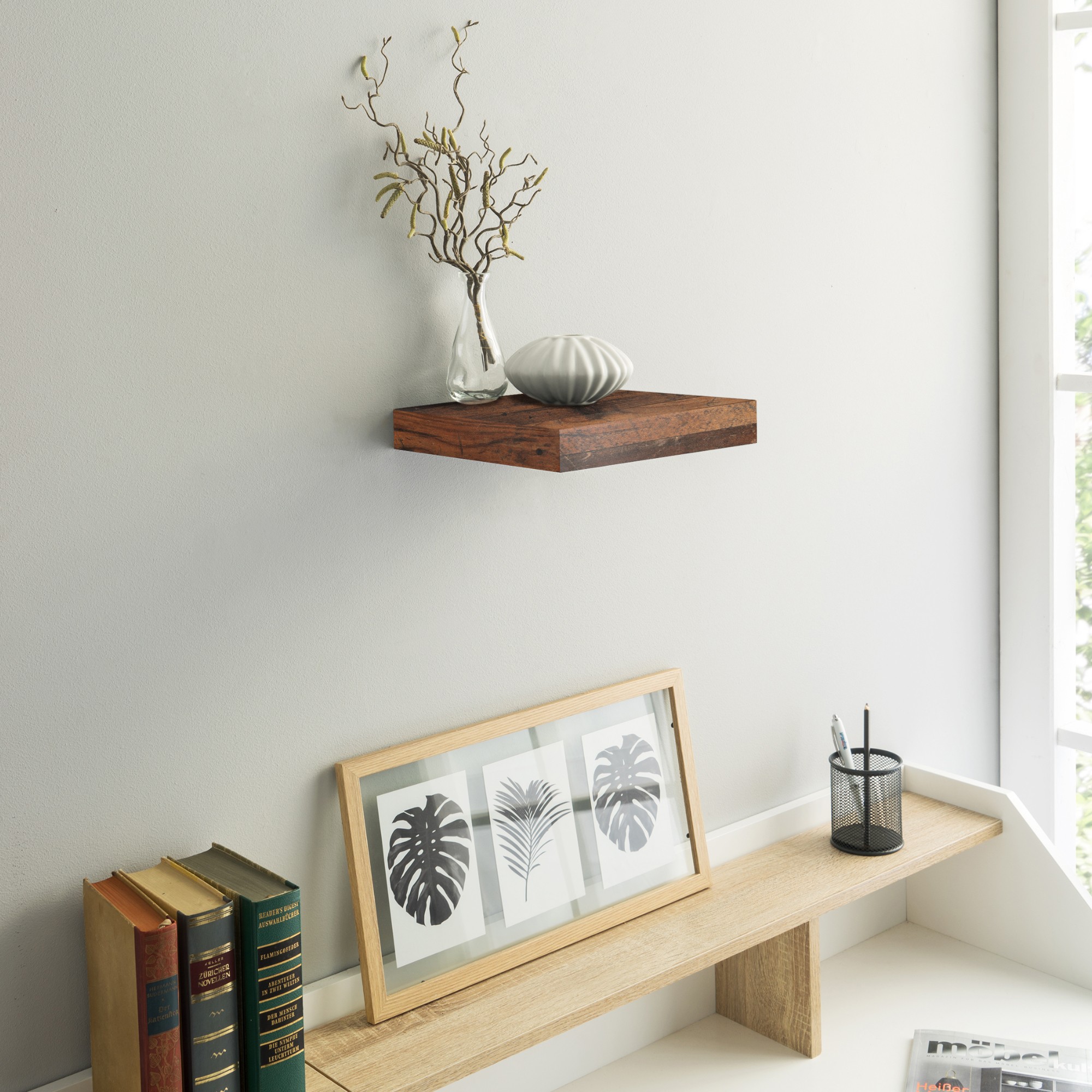 Nástenná polica SHELVY je ideálnou voľbou pre každého milovníka minimalizmu, ktorý túži po vkusnom doplnku do interiéru. Tento jednoduchý bytový doplnok po zaplnení fotografiami a ďalšími dekoráciami skvele oživí prázdne steny a zároveň interiér doplní o ďalší odkladací priestor. Polica je vyrobená z ľahko udržiavateľného materiálu nenáročného na údržbu.