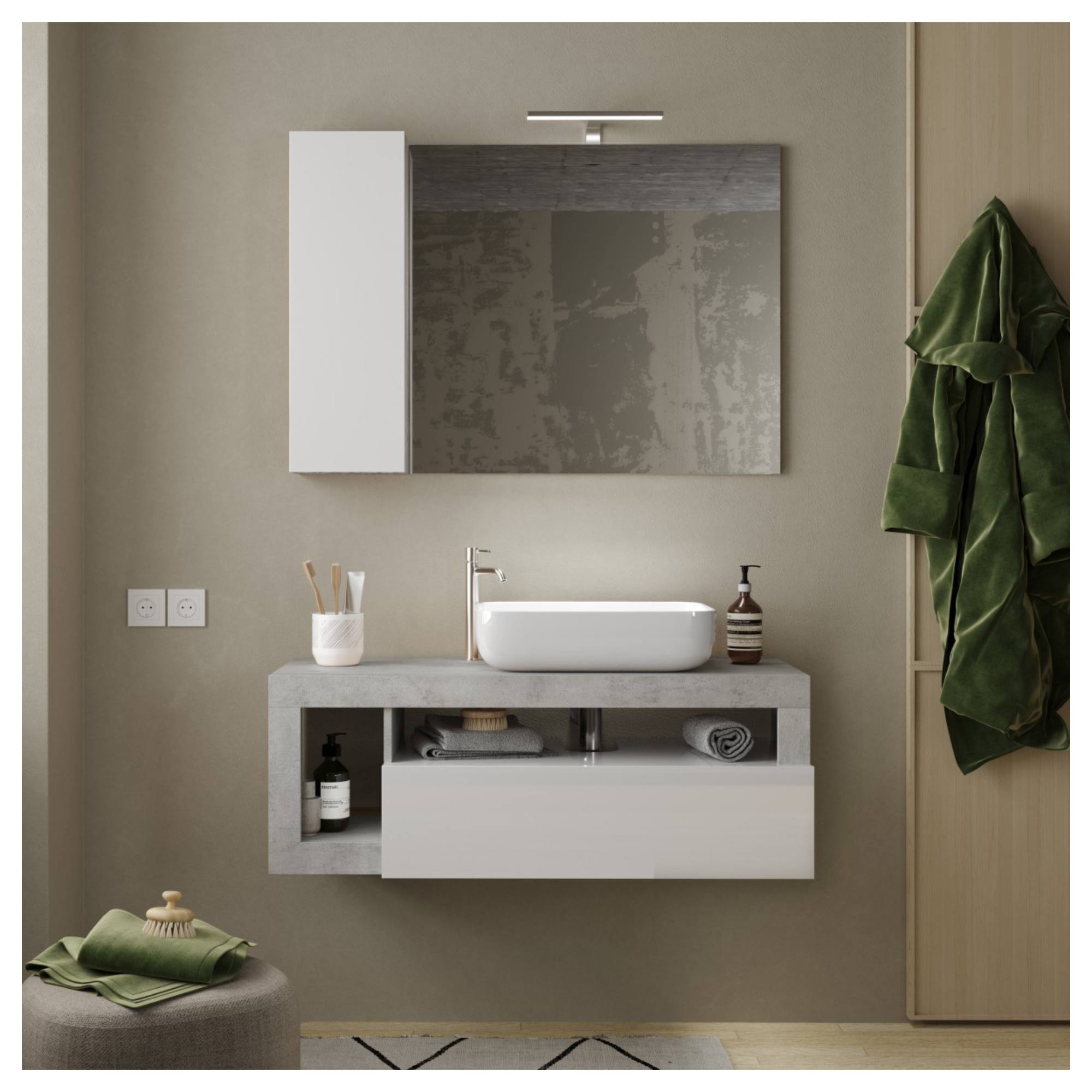 Nástenná umývadlová skrinka s umývadlom HAMBURG 7 - biela lesklá/betón