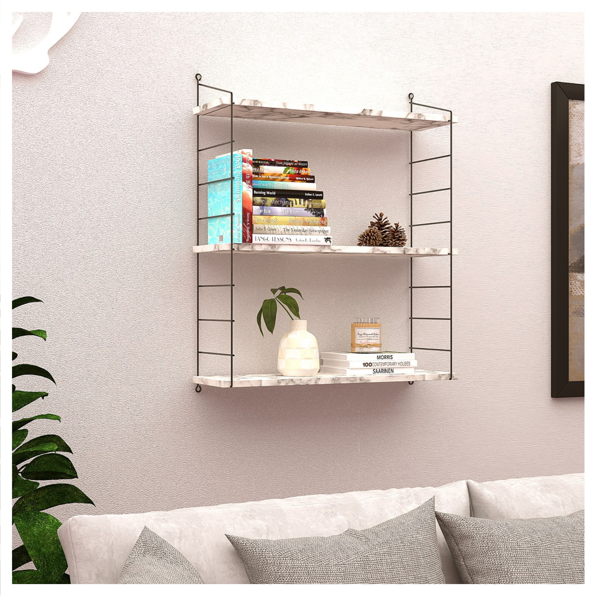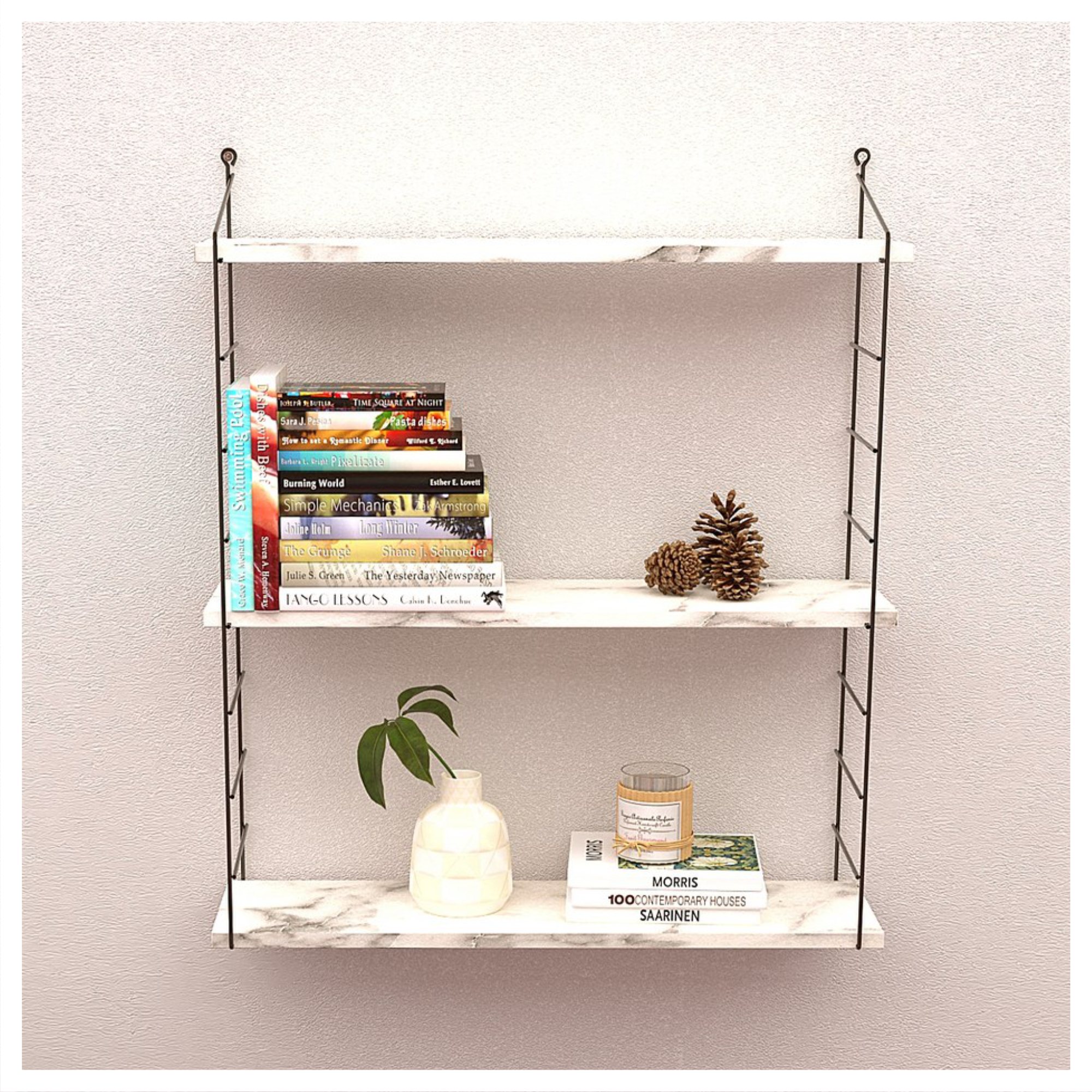 Nástenný regál ARMONI 3 - čierna/biely mramor