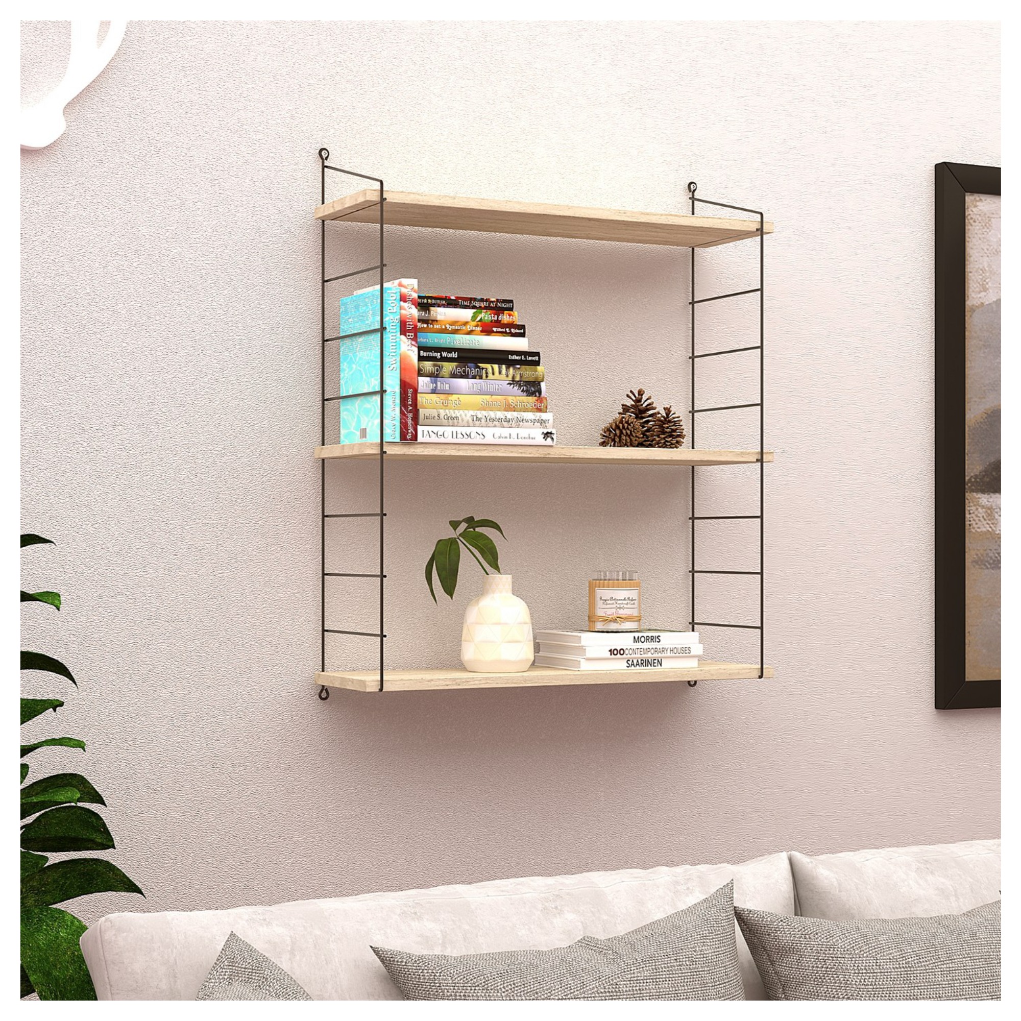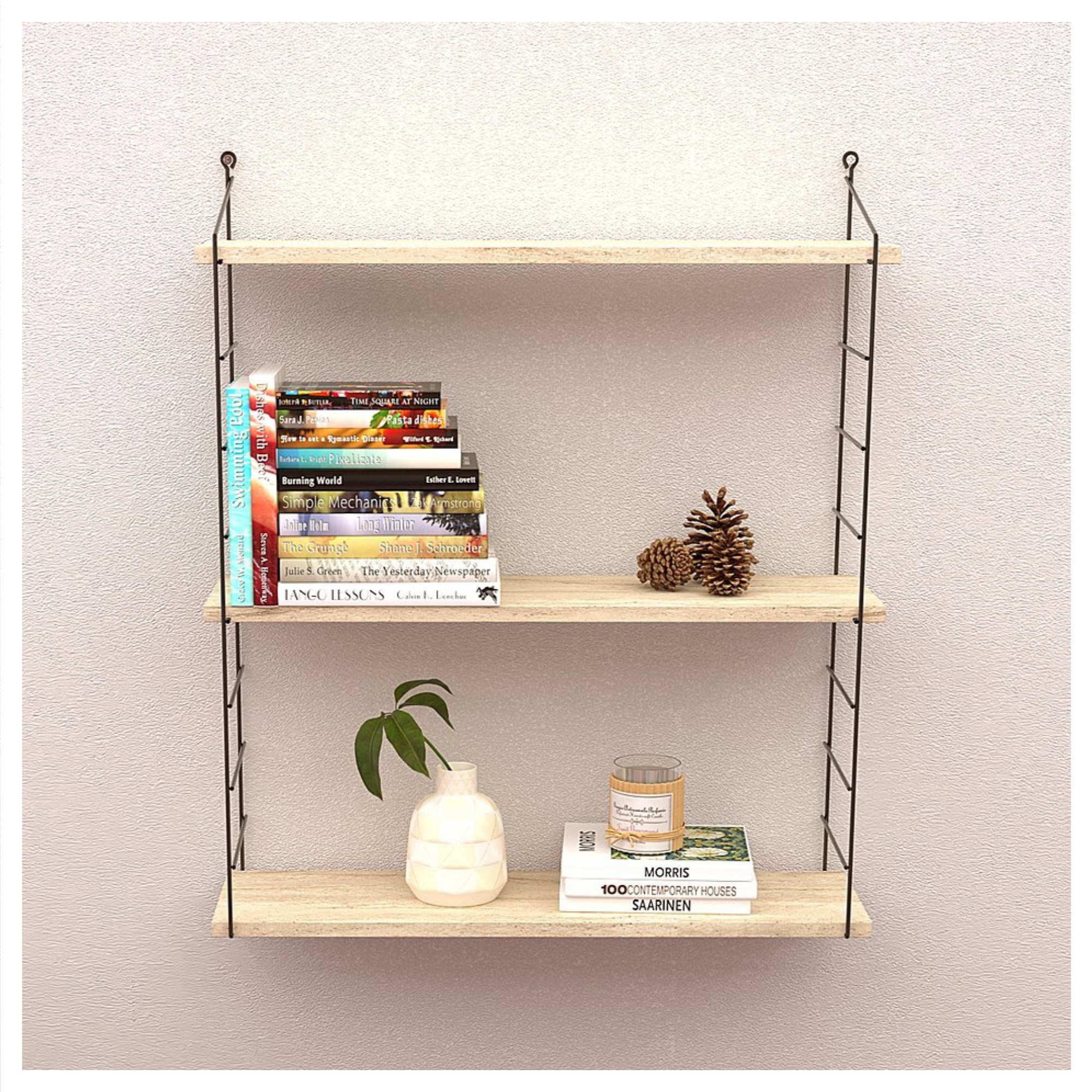 Nástenný regál ARMONI 3 je praktickým bytovým doplnkom, ktorý spoľahlivo oživí prázdnu stenu a zároveň váš domov doplní o dodatočný odkladací priestor. Vďaka 3 vloženým policiam budú mať vaše dekorácie, fotografie, ale aj kvety konečne svoje miesto. Police sú vsadené do pevnej, kovovej konštrukcie, ktorá vytvára moderný vzhľad s industriálnym nádychom.