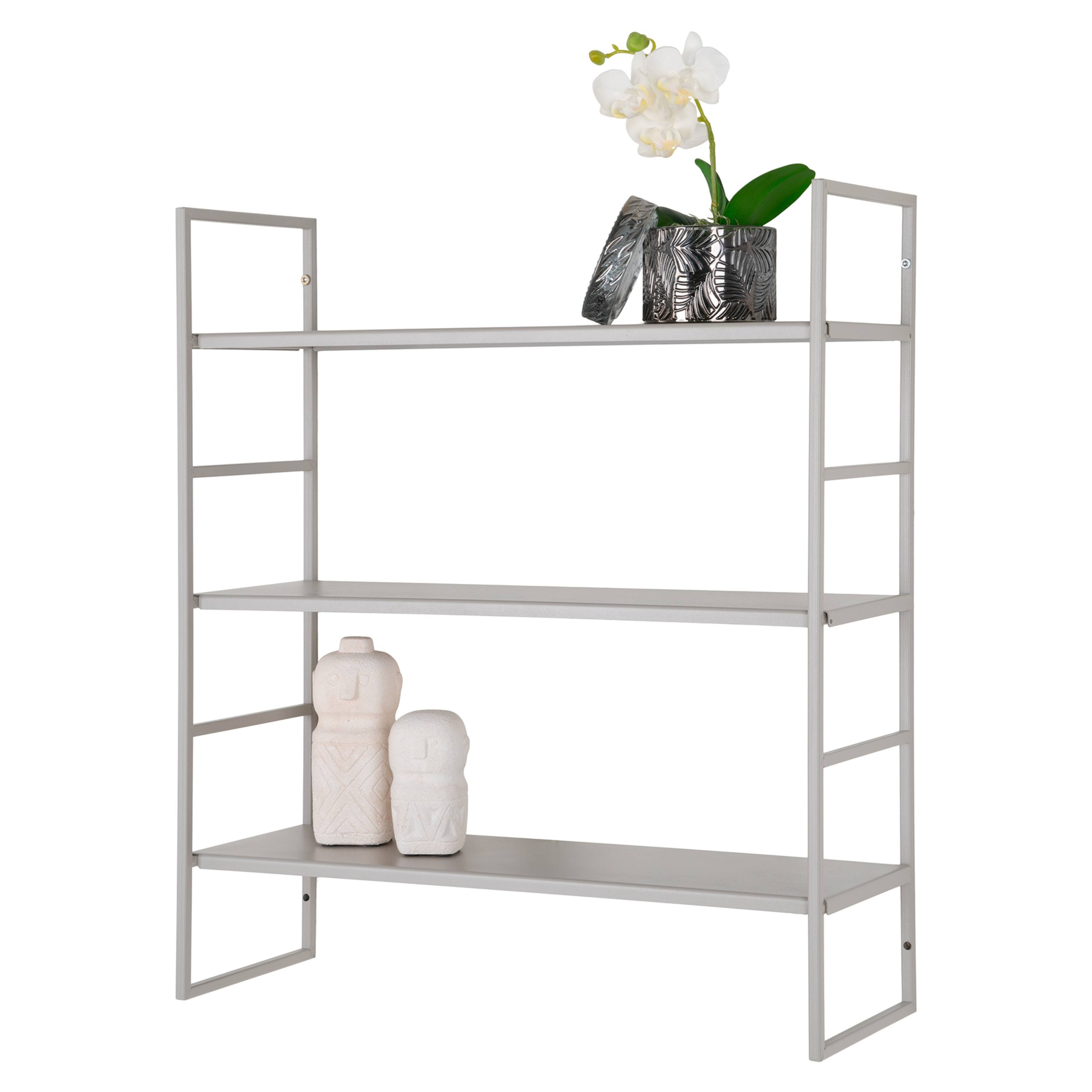 Jednoduchá konštrukcia je vyrobená z kovu so sivým lakovaním. Regál poskytuje 3 police na početné využitie. Vystavte si svoju zbierku kníh, vytvorte si kvetinový kútik alebo len vystavte dekorácie. Je len na vás, ako regál využijete, odkladacieho priestoru je viac ako dostatok.