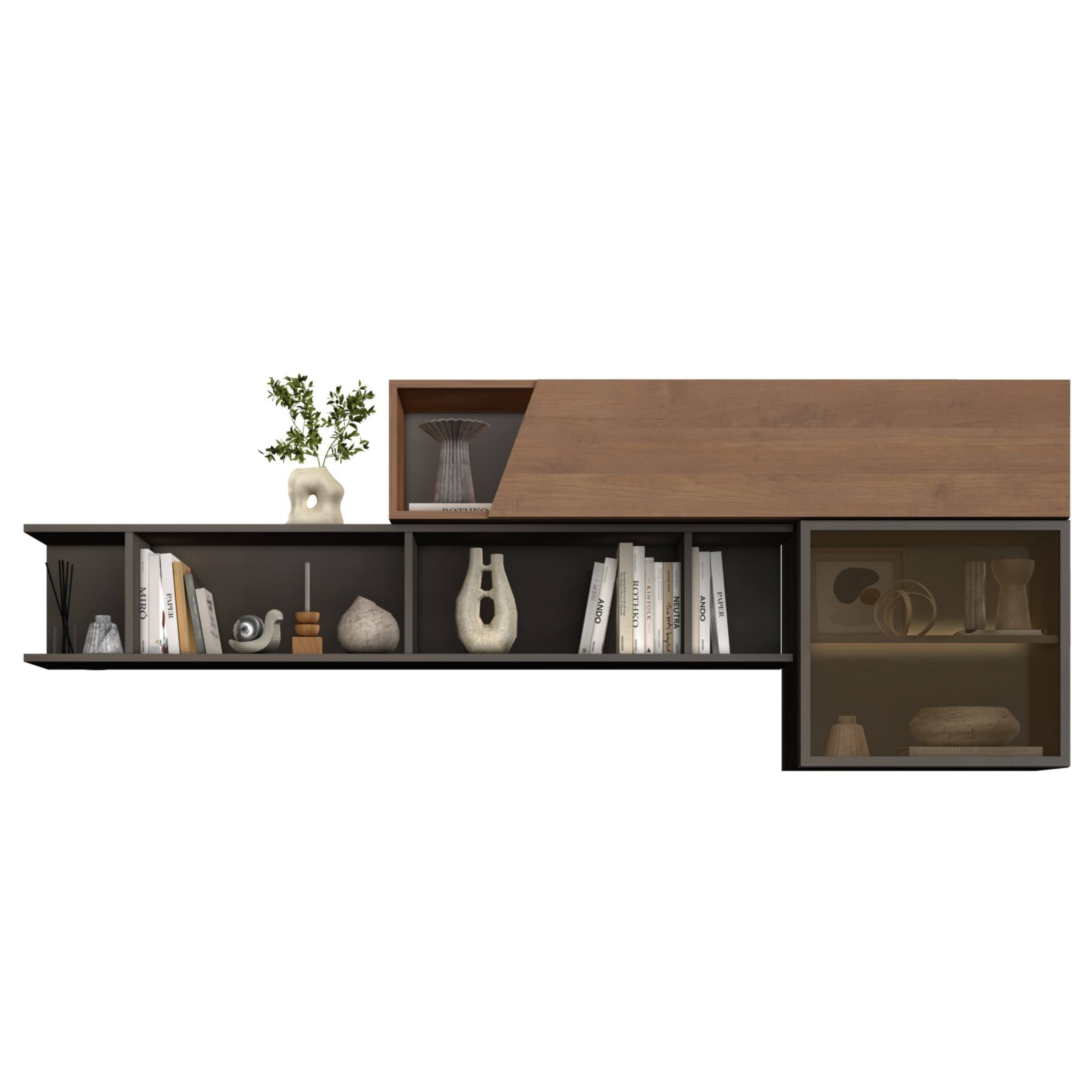 Nástenný regál CORTINA - antracitová/tmavohnedá