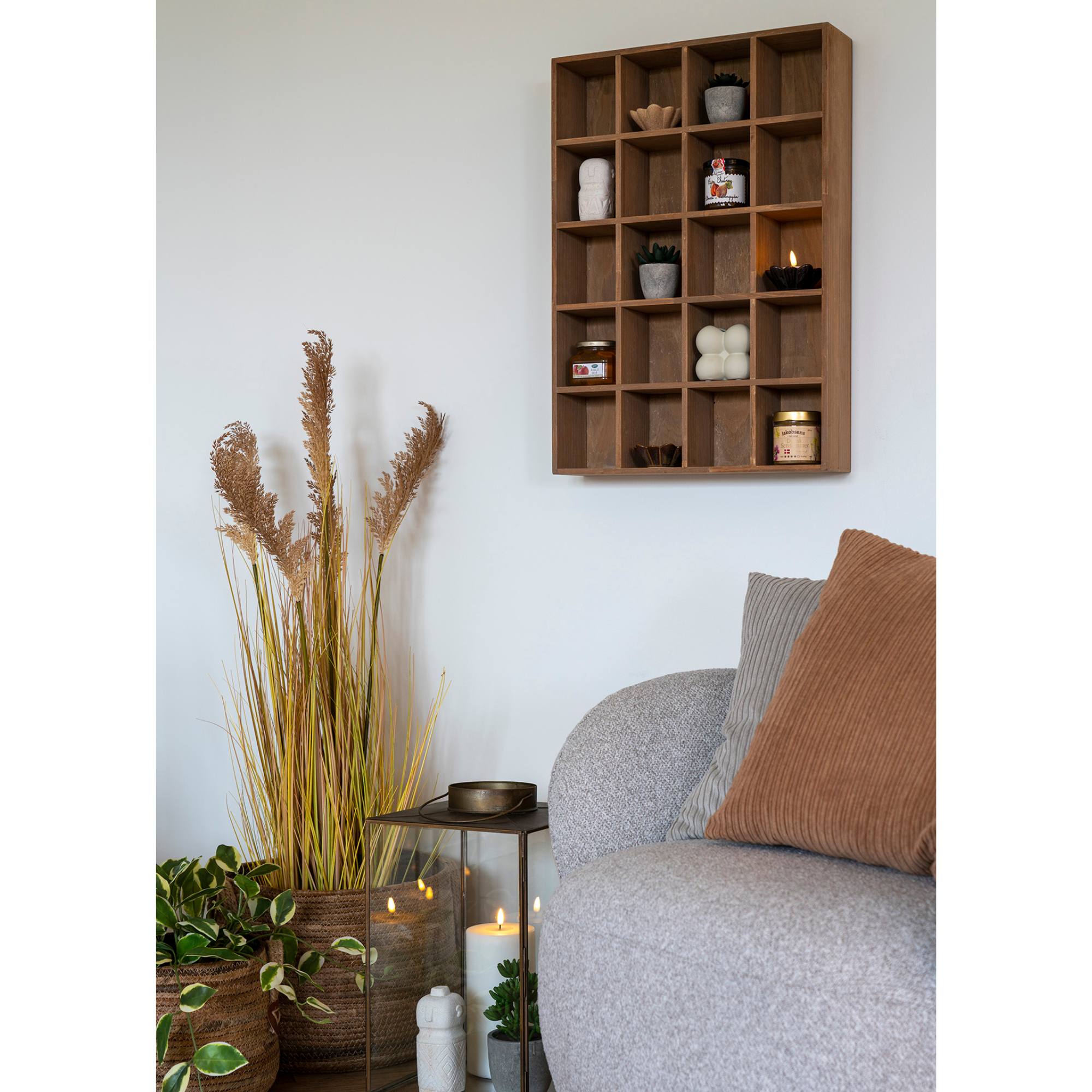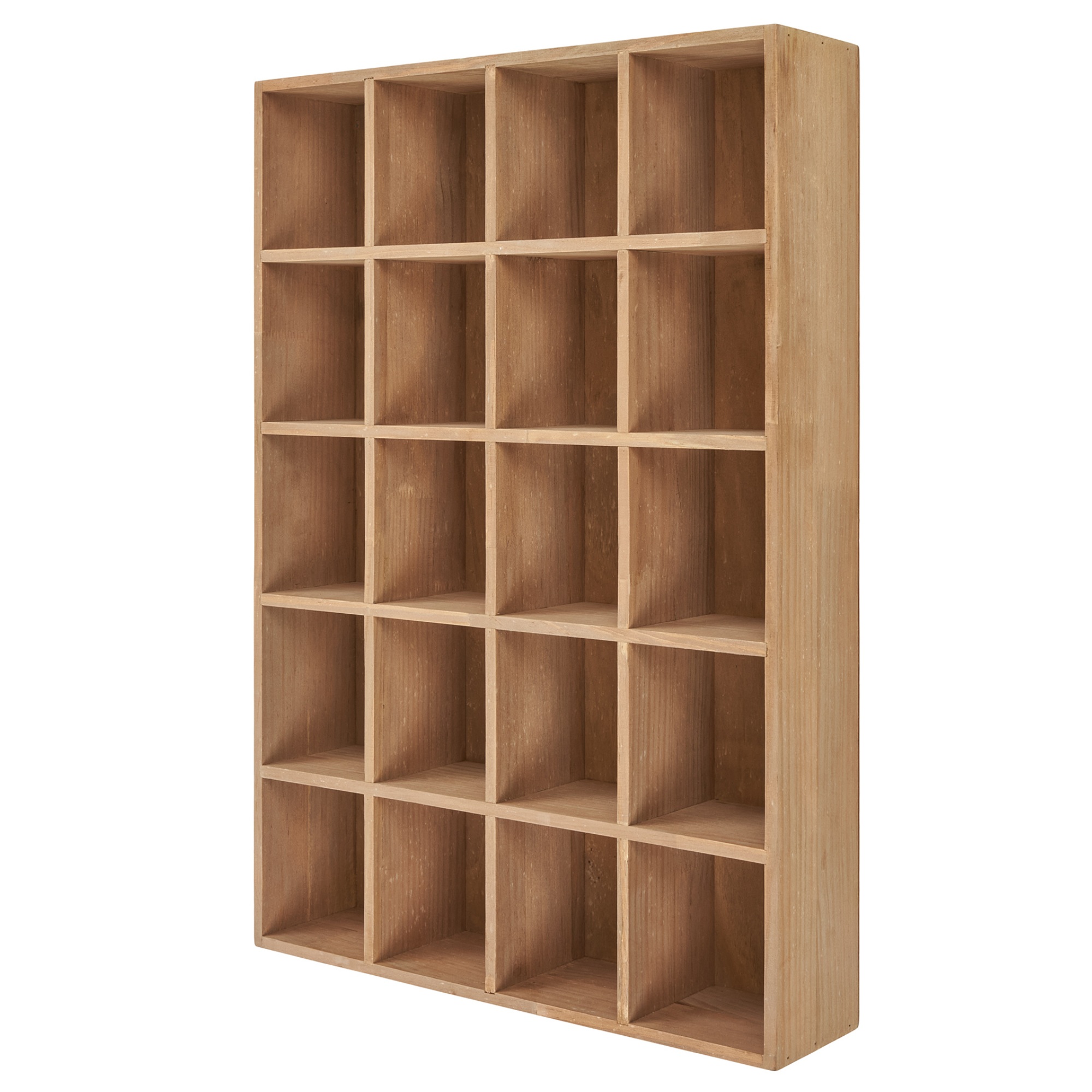 Vyrobený je z masívneho borovicového dreva, ktoré vás poteší svojou pevnosťou, odolnosťou a dlhou životnosťou. Polica ponúka dodatočný úložný priestor v podobe 20-tich rovnako veľkých priečinkov, do ktorých môžete vystaviť rôzne dekorácie.