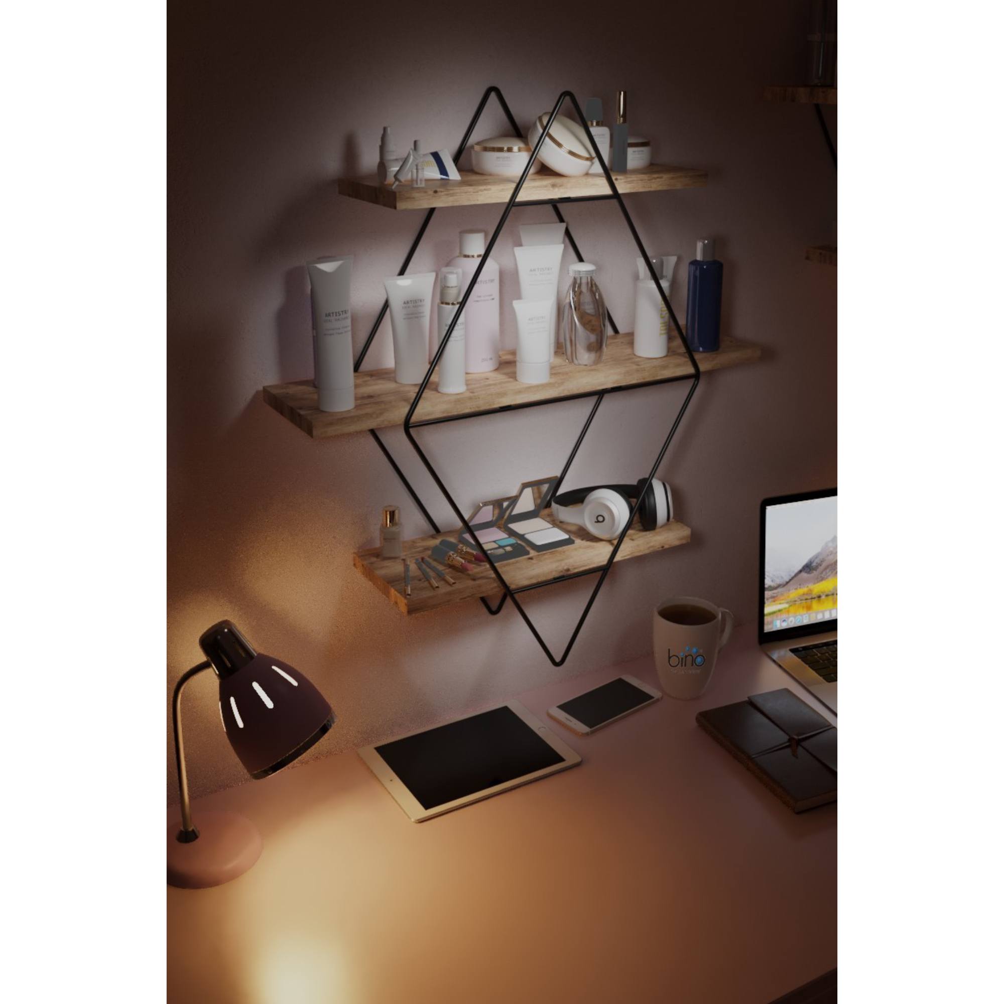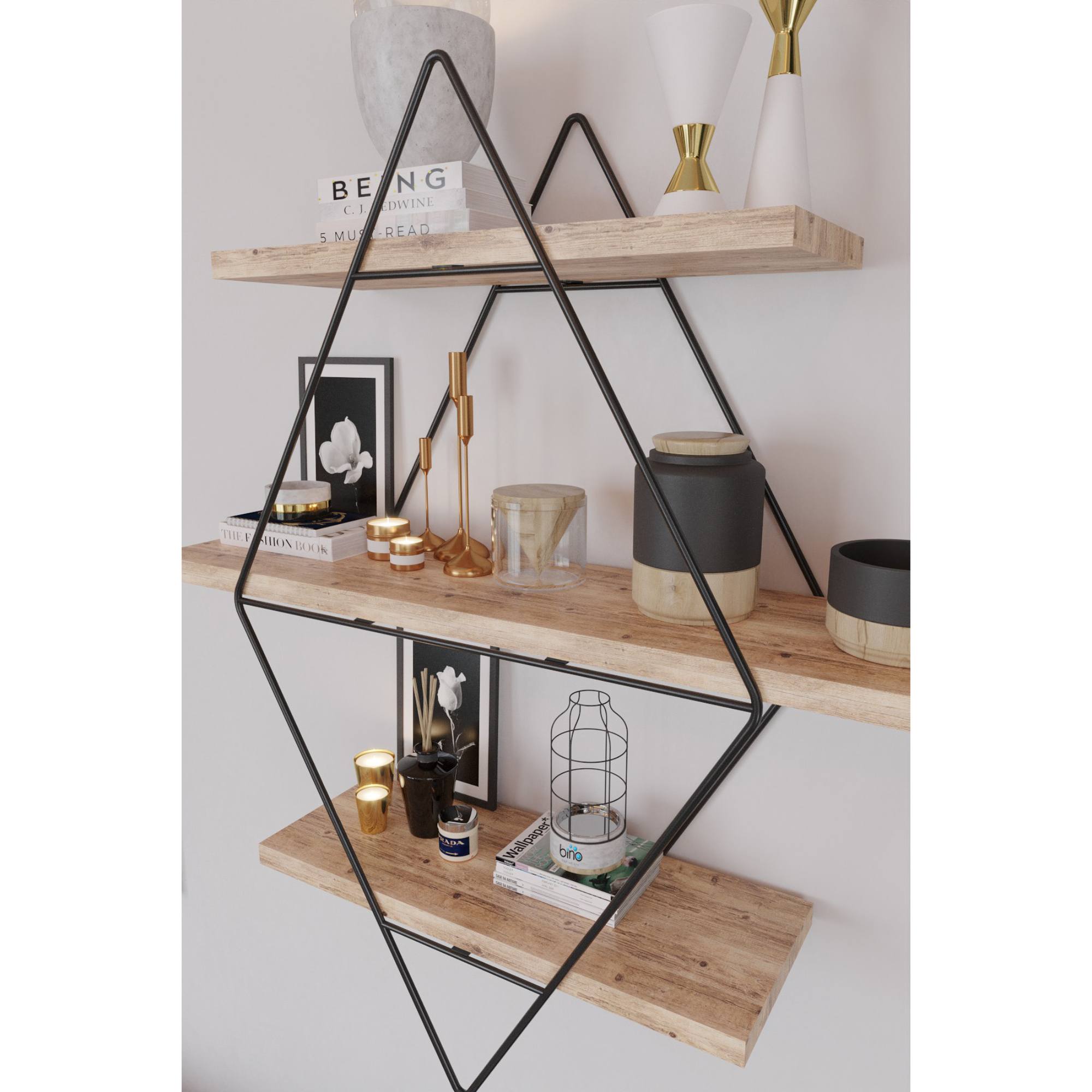 Nástenný regál PRISMA vás zaujme na prvý pohľad svojim atypickým vzhľadom. Lakovaná kovová konštrukcia geometrického tvaru v kombinácii s policami v dekore dreva poskytne miesto dekoráciám, kvetinám, knihám alebo fotografiám, ktoré budú odrážať vašu jedinečnosť. Policový regál PRISMA bol navrhnutý tak, aby doladil jedinečný štýl interiéru a zároveň poskytol toľko žiadaný odkladací priestor.