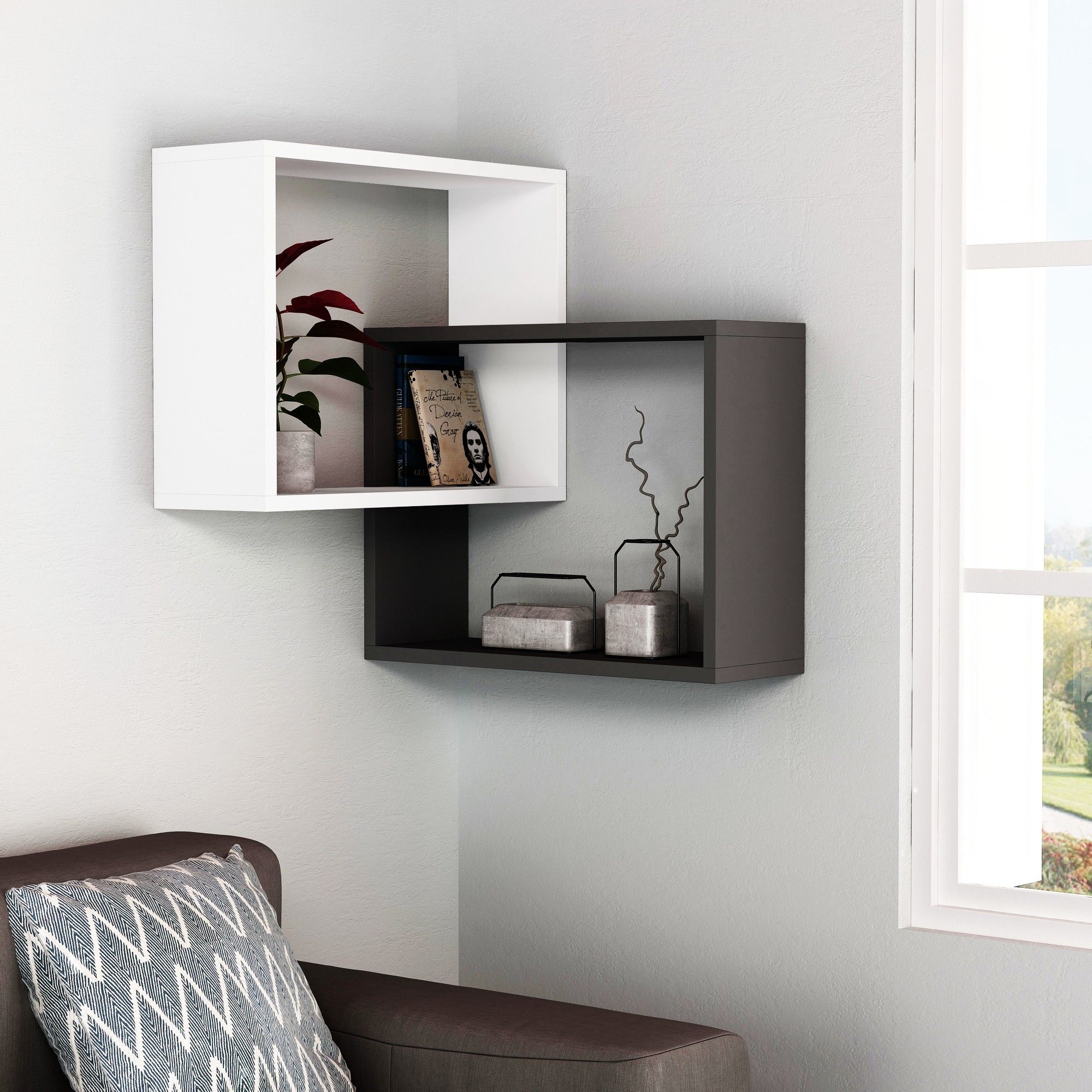 Nástenný regál RING - biela/antracitová