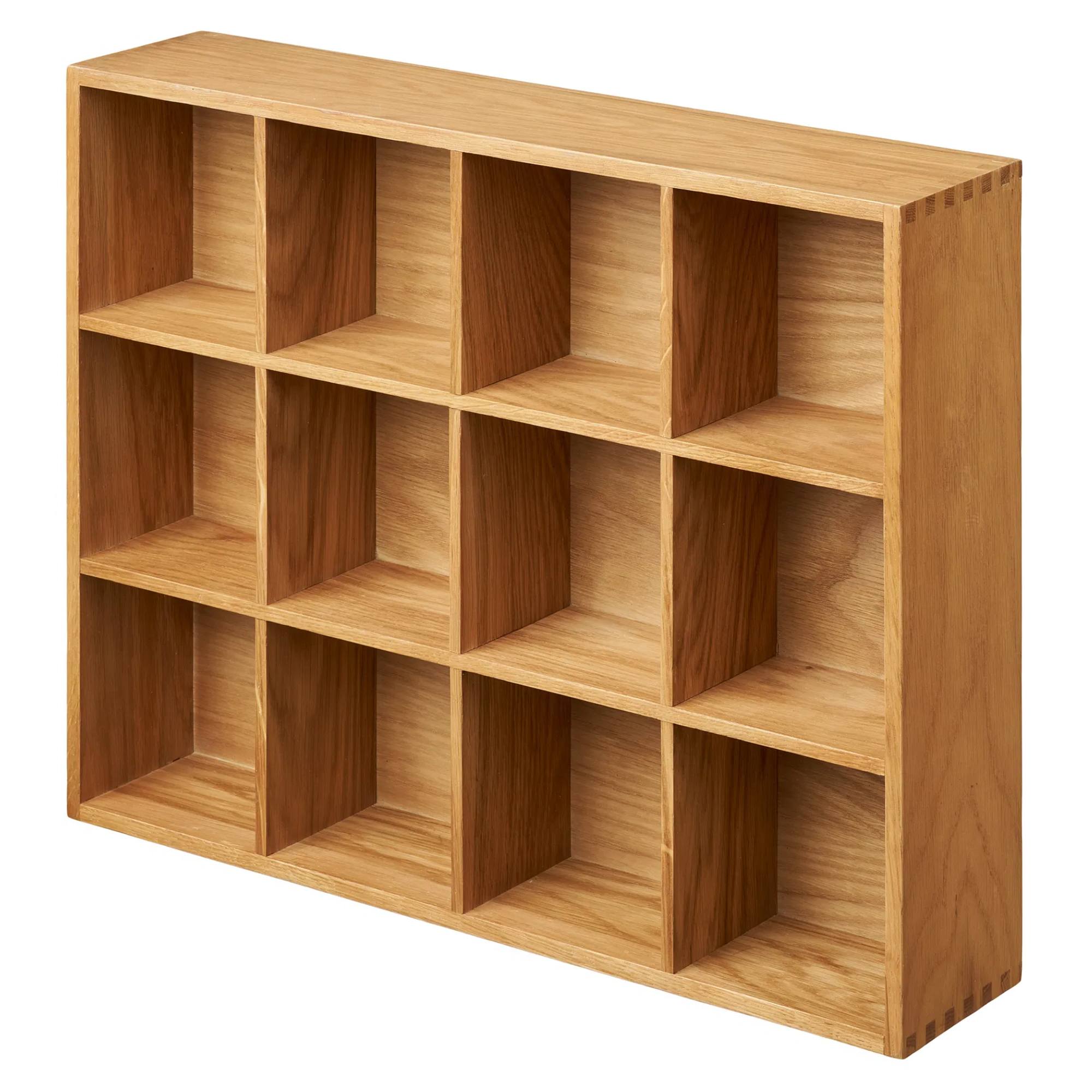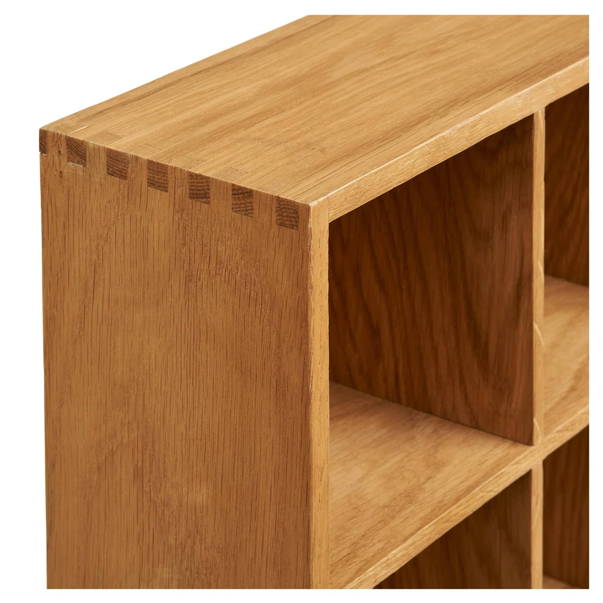 Regál je vyrobený z kombinácie masívneho dubového dreva, ktoré je doplnené dyhou, a drevovláknitej dosky MDF.