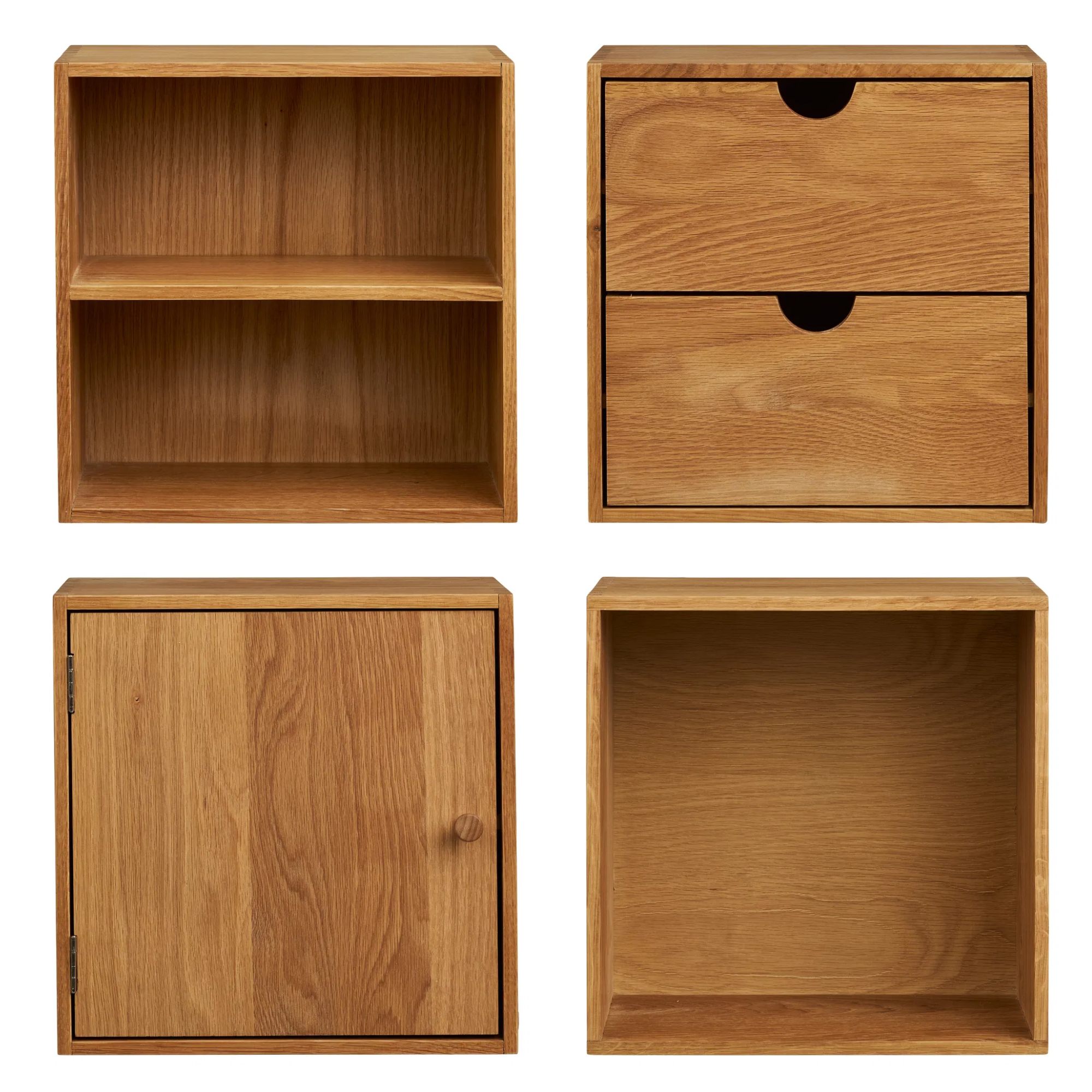 Regály vám ponúknu dodatočný odkladací priestor. Dva z nich sú vybavené 1 vloženou policou, zatiaľ čo súčasťou ďalšieho sú 2 zásuvky. Na výrobu týchto regálov bolo použité masívne dubové drevo.
