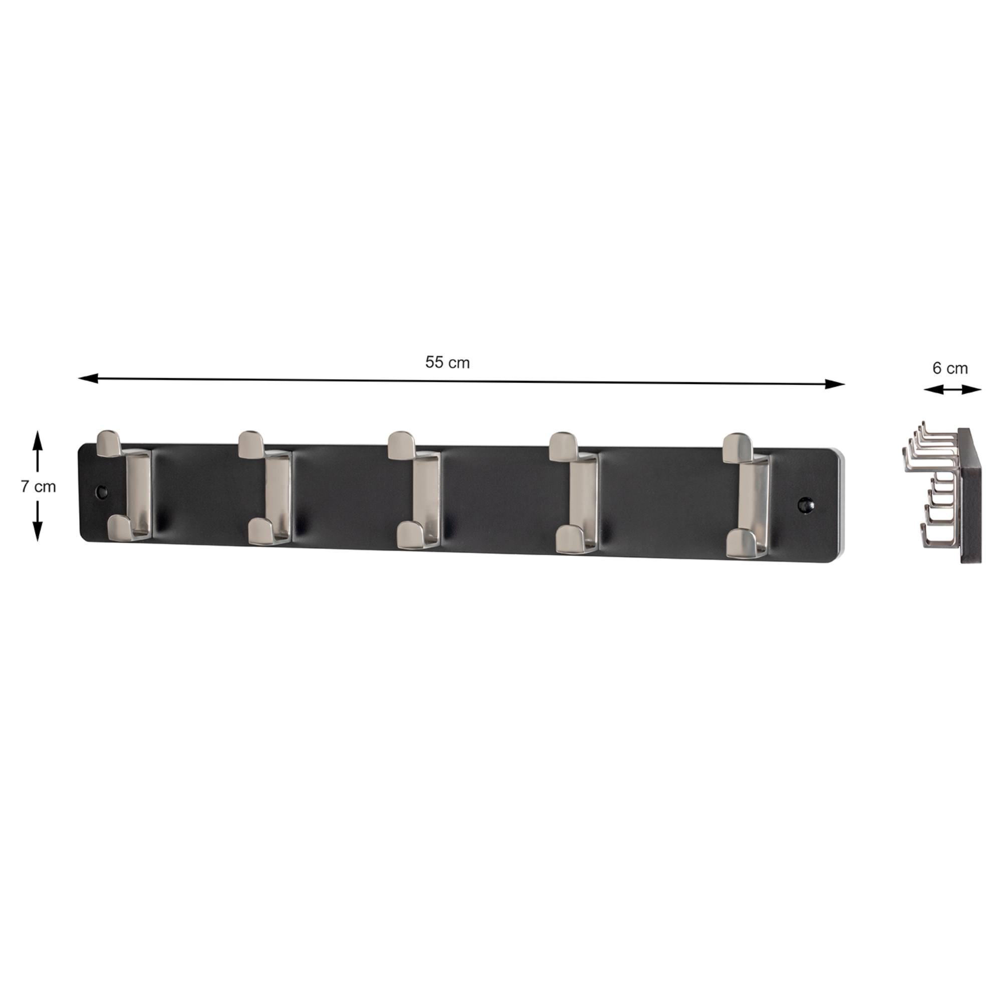 Nástenný vešiak FREDDY vyhotovený v minimalistickom, modernom dizajne je praktickým bytovým doplnkom, ktorý pomôže vkusne doplniť predsieň či halu o ďalší odkladací priestor. Vešiak ponúka celkom 10 odkladacích miest na odloženie vášho oblečenia, doplnkov a ďalších nevyhnutností. Jednotlivé háčiky sú vyrobené z optickej, ušľachtilej ocele, vďaka ktorej každý háčik pojme 5 kg záťaže.
