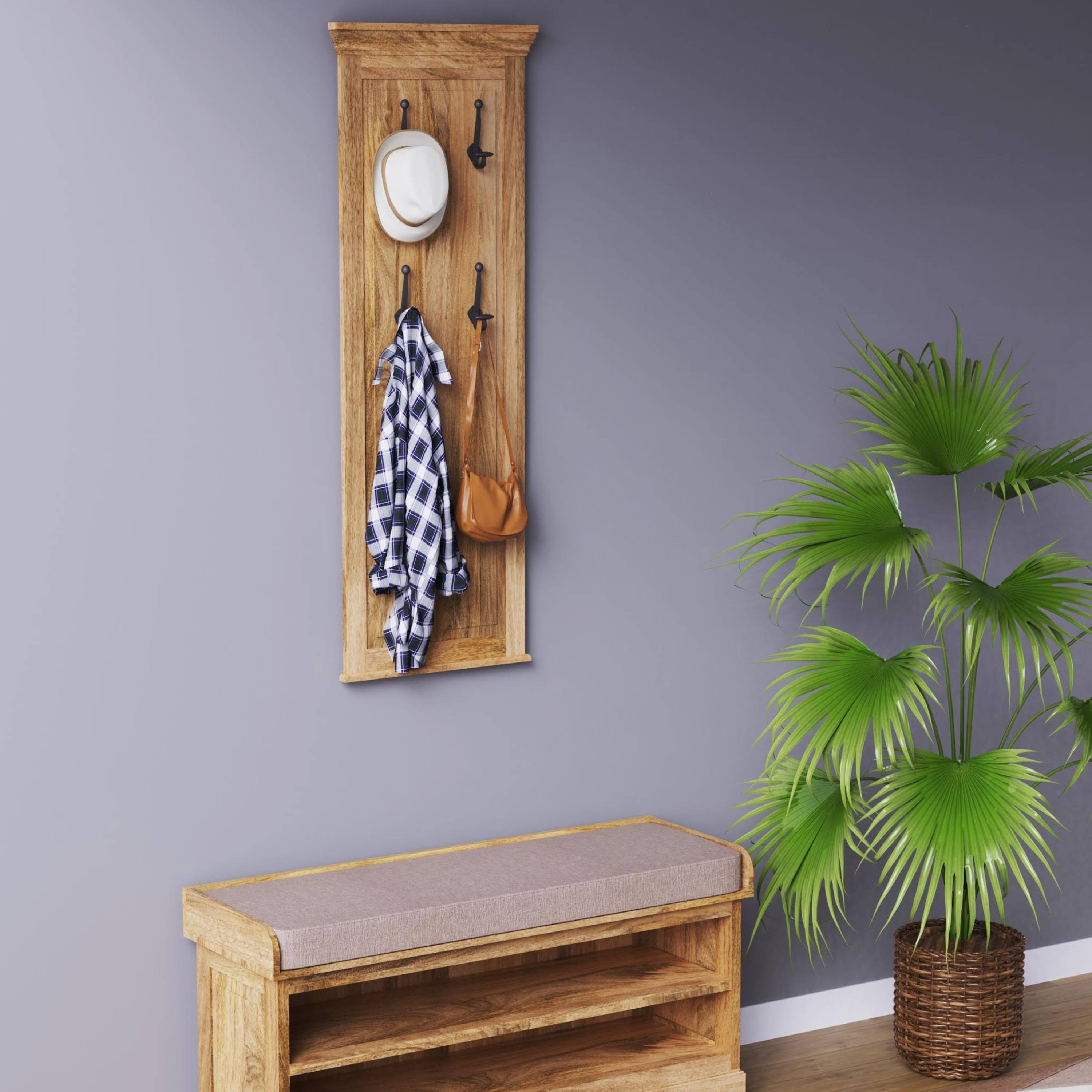 Nástenný vešiak GURUNU 50 v nadčasovom, rustikálnom spracovaní s dekoratívnymi detailmi je praktickým bytovým doplnkom, ktorý pomôže vkusne doplniť vstupný priestor o ďalší odkladací priestor.