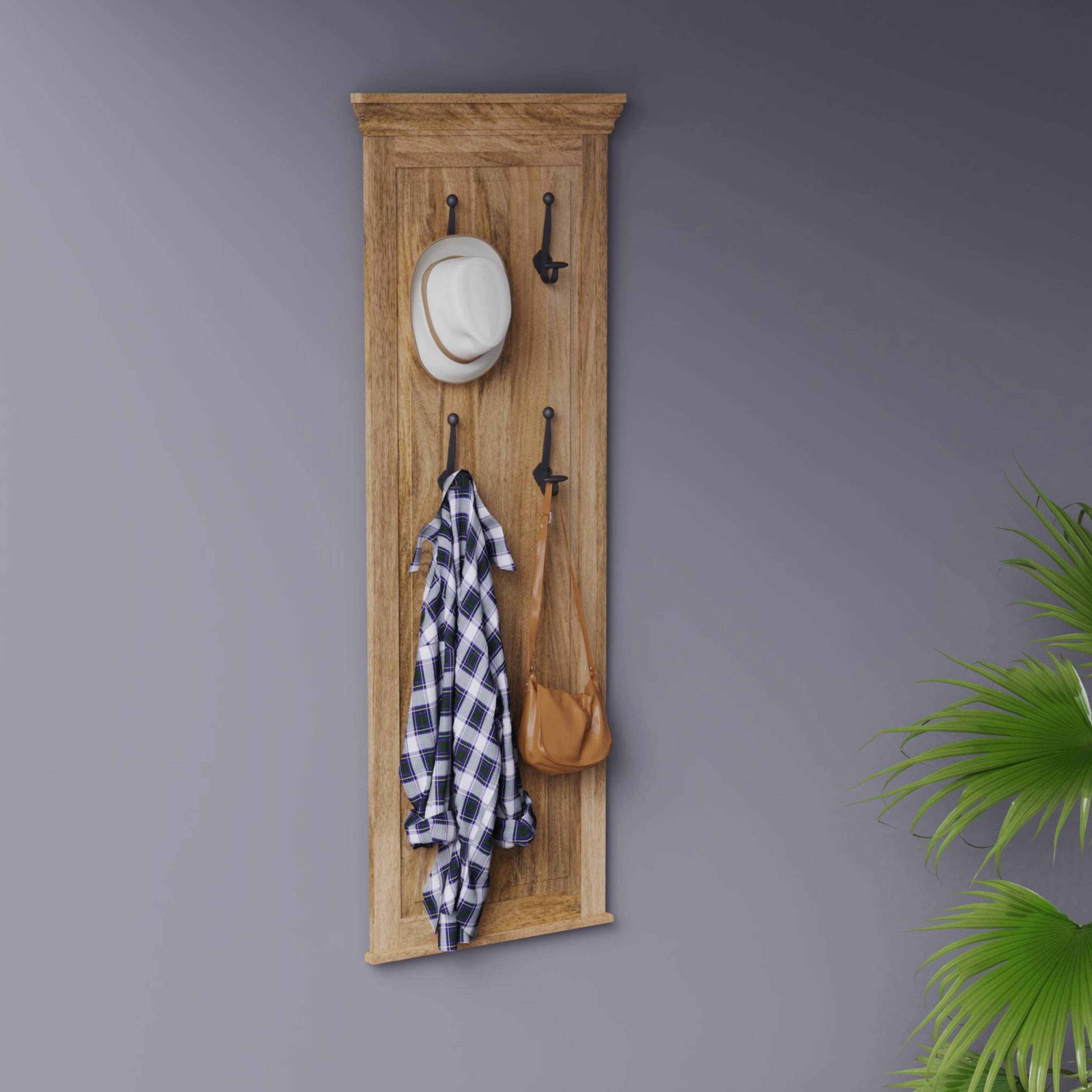 Vyrobený je z masívneho mangového dreva v prírodnom spracovaní bez povrchovej úpravy. Vďaka použitému materiálu je nielen pevný, ale aj odolný proti vode, udržateľný a má dlhú životnosť. Prirodzená kresba dreva, sfarbenie a priznané nedokonalosti dodávajú na jedinečnosti každého kusa. Vešiak je vybavený 4 kovovými háčikmi, ktoré vám pomôžu udržať poriadok v bundách, kabátoch, doplnkoch a ďalších predmetoch.