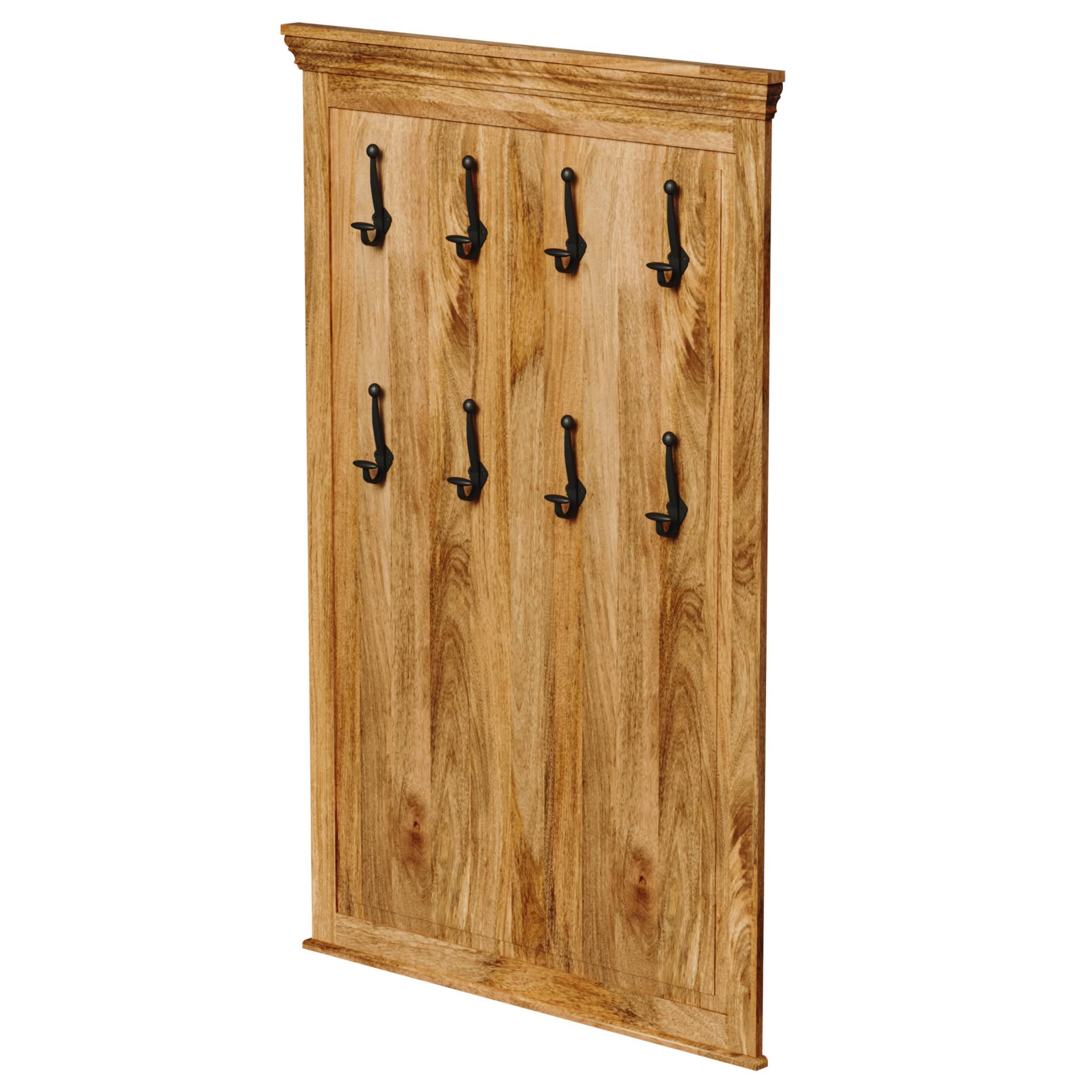 Vyrobený je z masívneho mangového dreva v prírodnom spracovaní bez povrchovej úpravy. Vďaka použitému materiálu je nielen pevný, ale aj odolný proti vode, udržateľný a má dlhú životnosť. Prirodzená kresba dreva, sfarbenie a priznané nedokonalosti dodávajú na jedinečnosti každého kusa. Vešiak je vybavený 8 kovovými háčikmi, ktoré ponúkajú dostatok miesta na zavesenie vašich búnd, kabátov, doplnkov a ďalších predmetov.