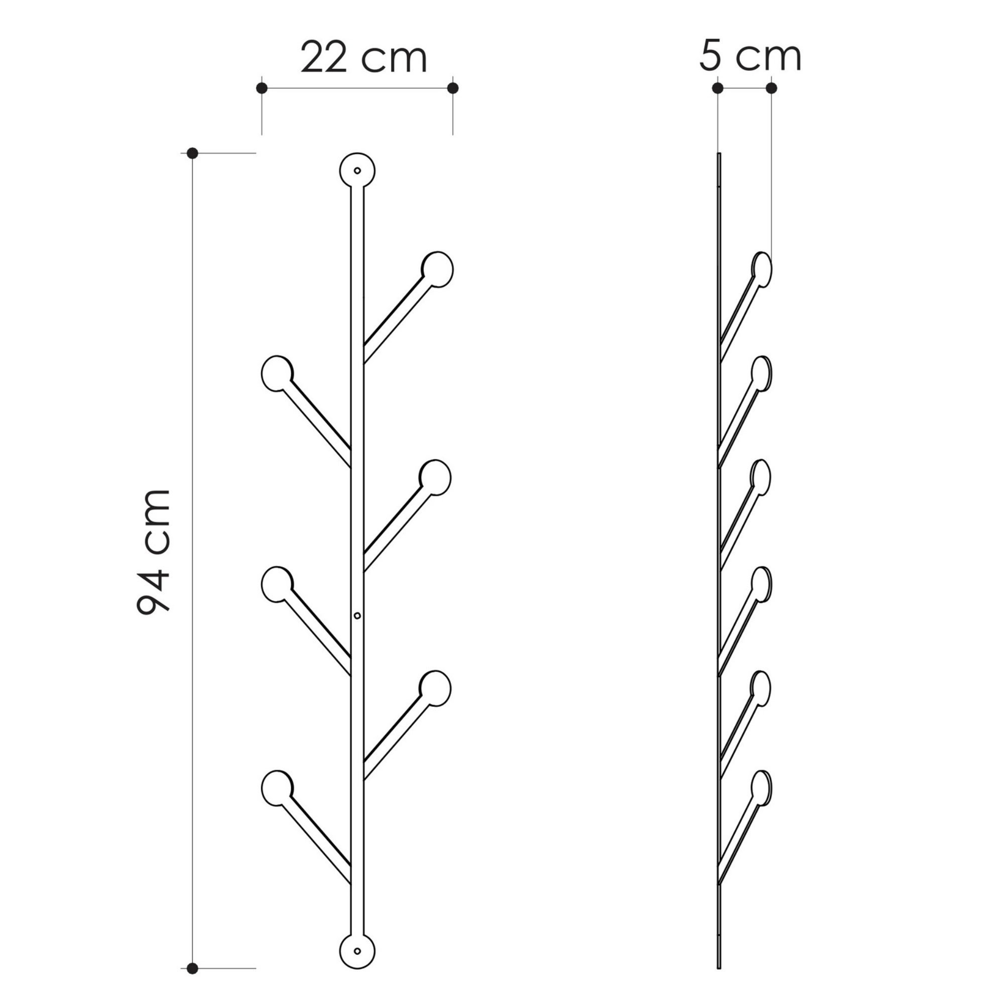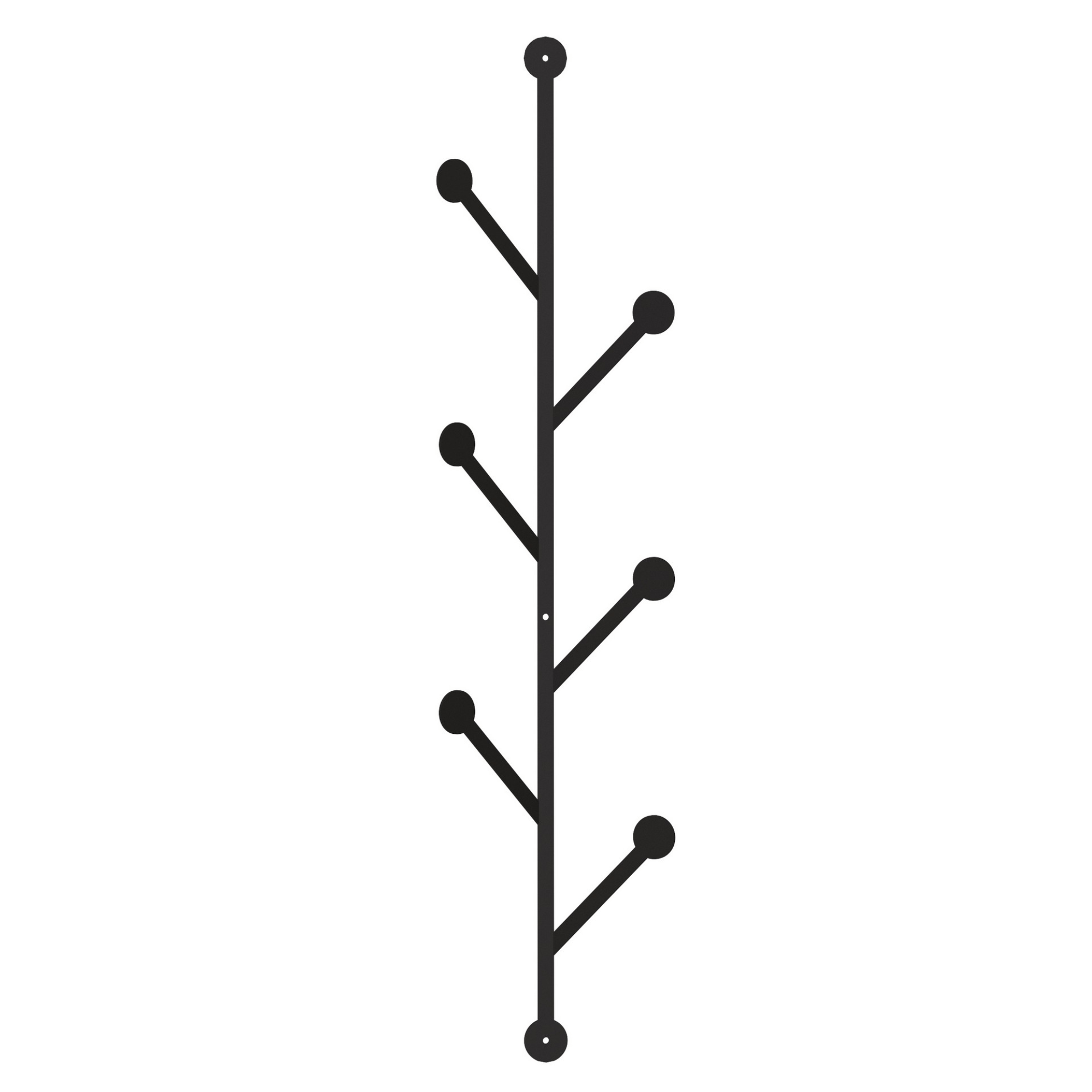 Minimalistický nástenný vešiak PONPON v jednoduchom čiernom vyhotovení je vyrobený z kovového materiálu. Vďaka pevnej kovovej konštrukcii je vešiak stabilný a má dostatočnú nosnosť na udržanie odložených predmetov. 7 háčikov s okrúhlymi koncami ponúka dostatok miesta na odloženie oblečenia, klobúkov, dáždnikov a ďalších nenahraditeľných doplnkov.