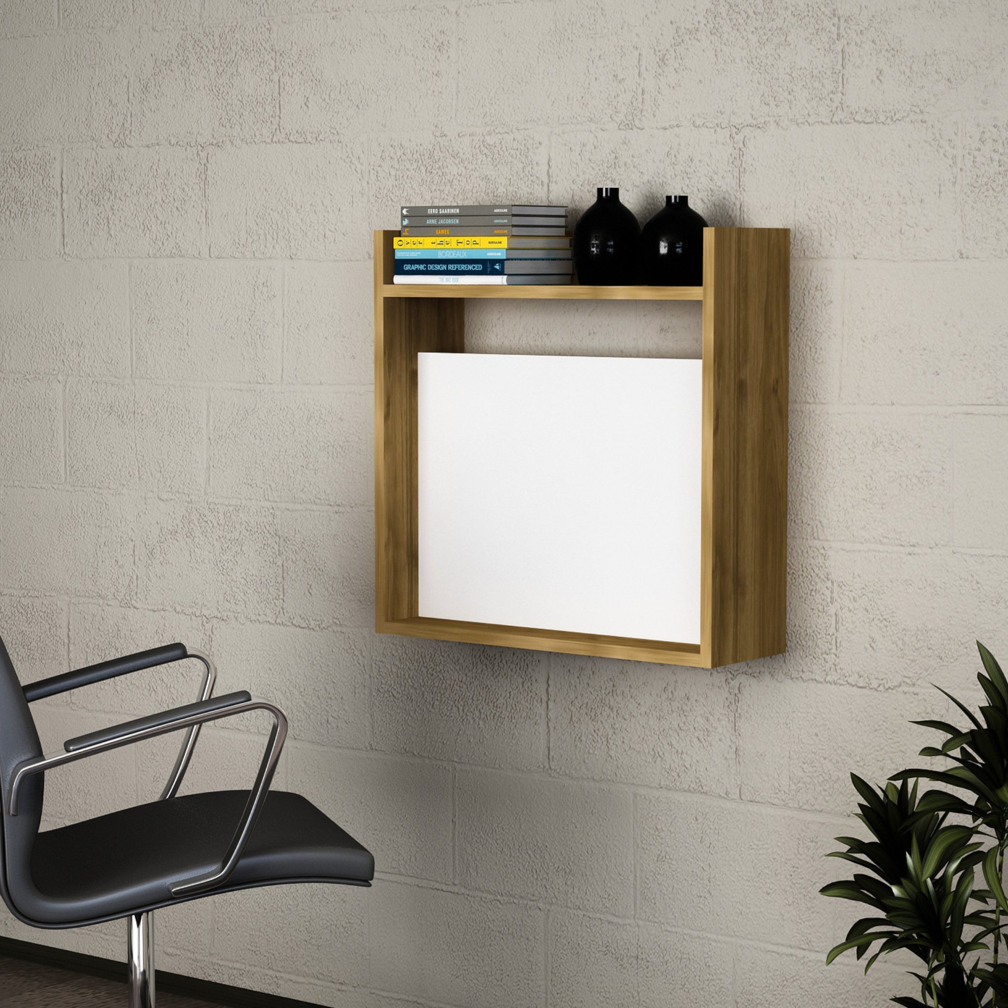 Nástenný vyklápací stôl LAPTOP je ideálny pre každého, kto bojuje s každým centimetrom v miestnosti. Stolík visí na stene vo výške, ktorá vám najviac vyhovuje a v zatvorenej polohe nezaberá viac miesta než napríklad obyčajný obraz. Možno ho teda vyklápať podľa potreby. Naviac je vybavený 2 policami. Laminovaná drevotriesková doska je nenáročná na údržbu a ideálna na každodenné používanie.