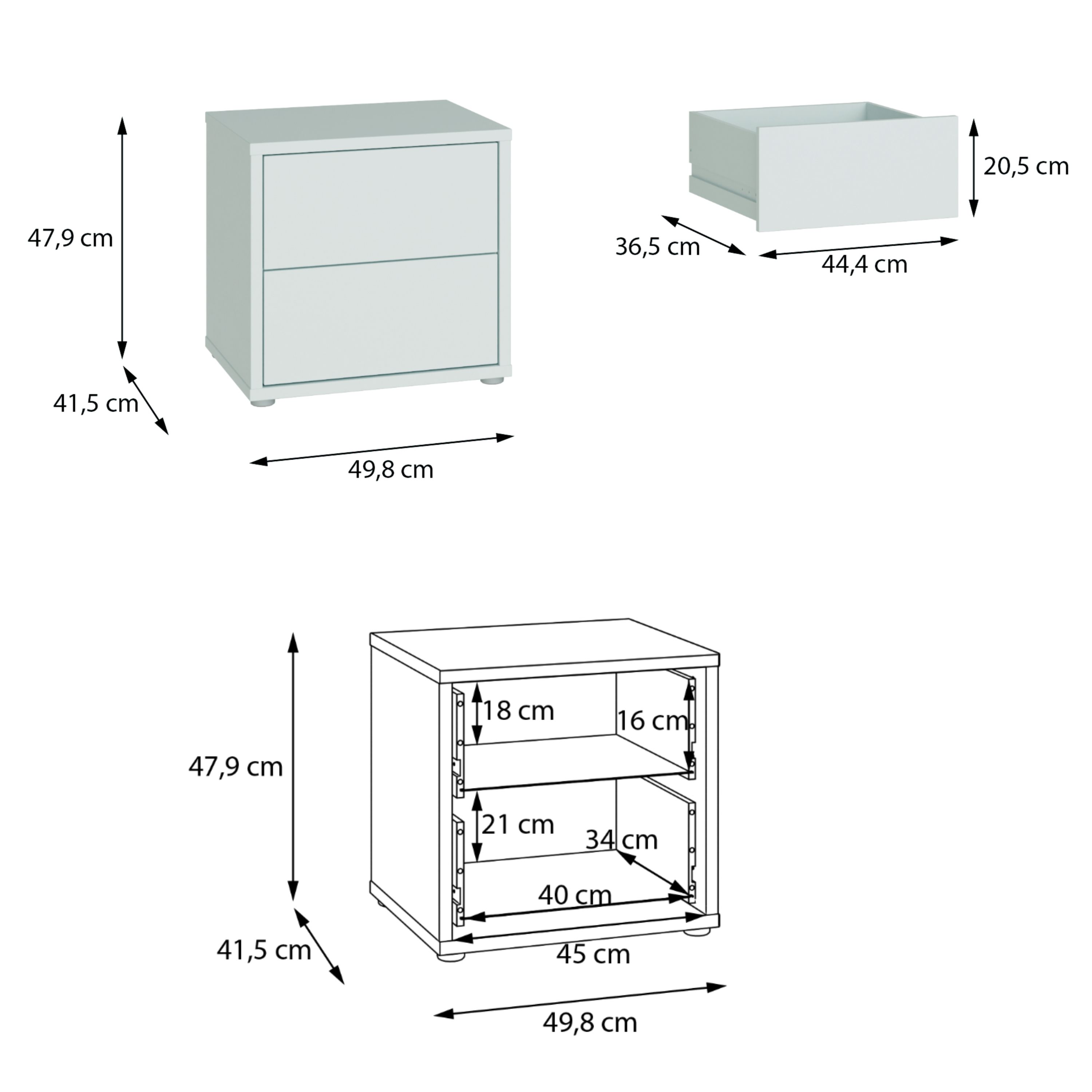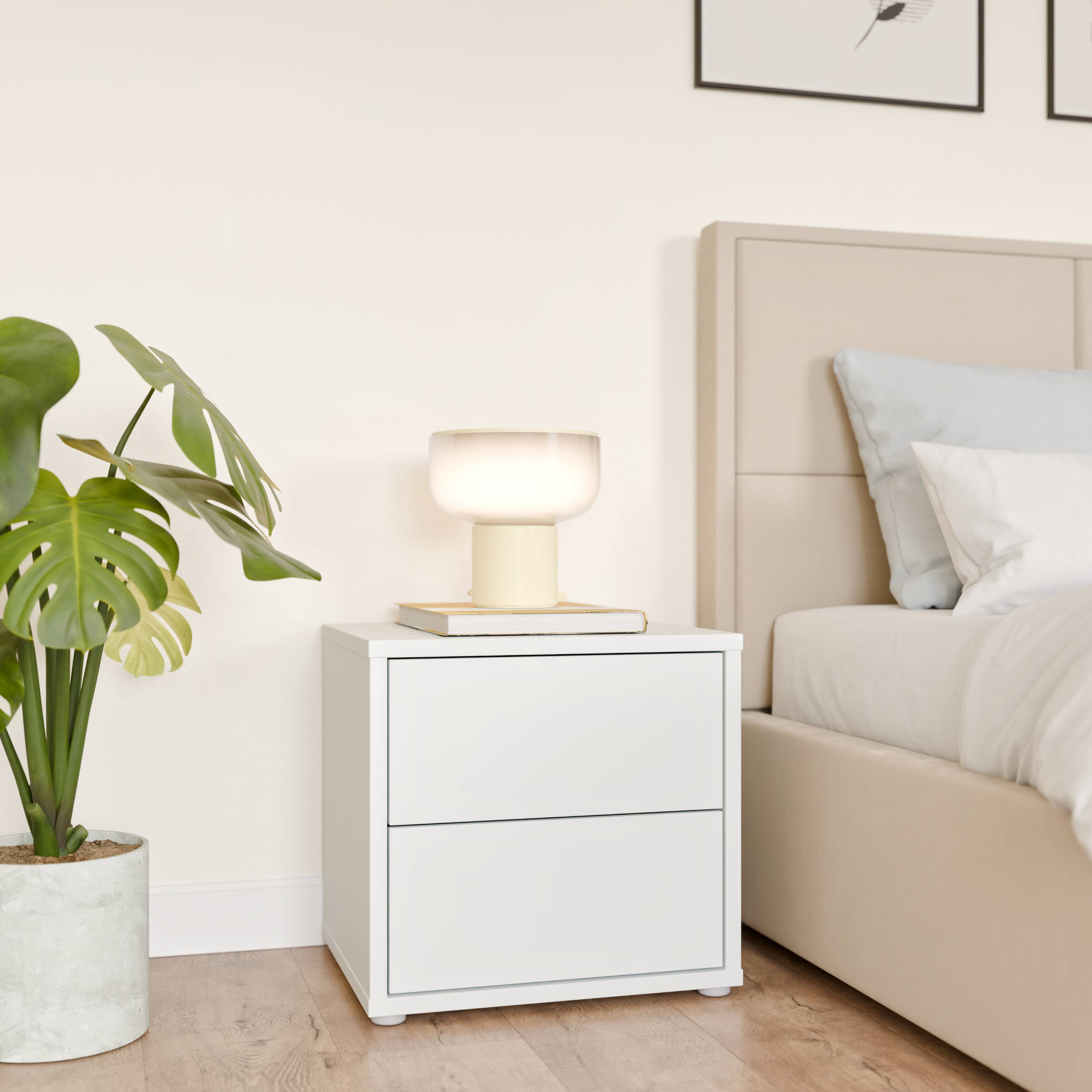Disponuje 2 zásuvkami, ktoré poskytujú dostatok miesta na všetko, čo chcete mať počas večera či skorého rána po ruke, no nie priamo na očiach. Tie disponujú mechanizmom push to open, vďaka ktorému zásuvky jednoducho otvoríte jemným stlačením. Prevedenie bez úchytiek podčiarkuje čistý vzhľad nábytku. Stolík je vyrobený z laminovaného dreveného materiálu s povrchom nenáročným na údržbu.