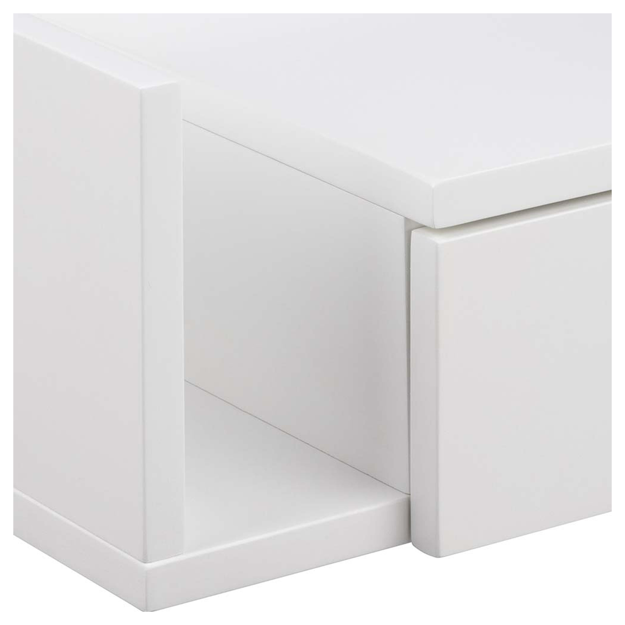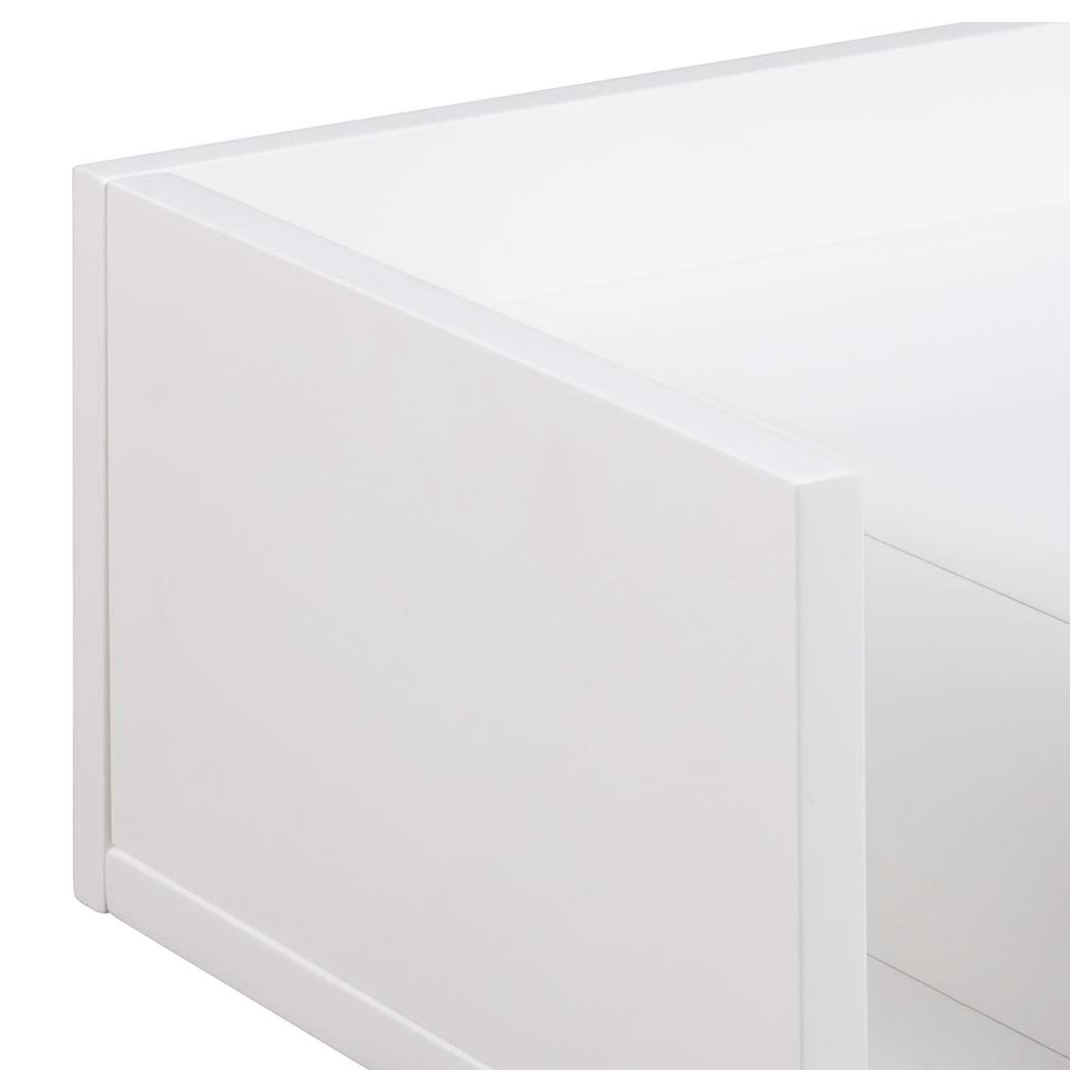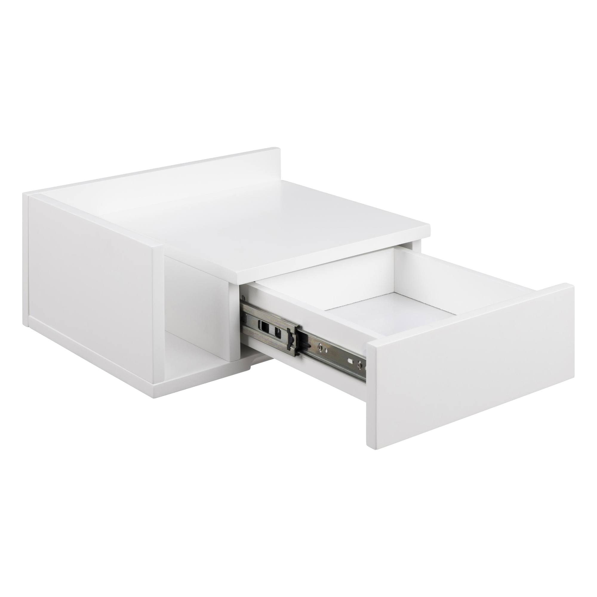 Tento nočný stolík v jednofarebnom vyhotovení s čistými líniami dodá vašej spálni na funkčnosti a prirodzenom vzhľade. Primontujte ho na stenu vedľa postele do vami preferovanej výšky a užite si jeho funkčné prvky. Stolík obsahuje zásuvku s bezrúčkovým otváraním a kovovými koľajničkami, ktoré umožňujú plný výsuv. Vedľa zásuvky stolík ponúka aj otvorenú priehradku, ktorá môže byť na ľavej alebo pravej strane podľa vašej preferencie počas montáže. Na odloženie mobilného telefónu, budíka a ďalších nevyhnutností môžete samozrejme využiť aj vrchnú dosku.