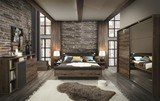 Nočný stolík JACKY predstavuje moderný dizajn s industriálnym nádychom, ktorý kombinuje prírodné a tmavé farby. Hodí sa do podobne zariadených spální.