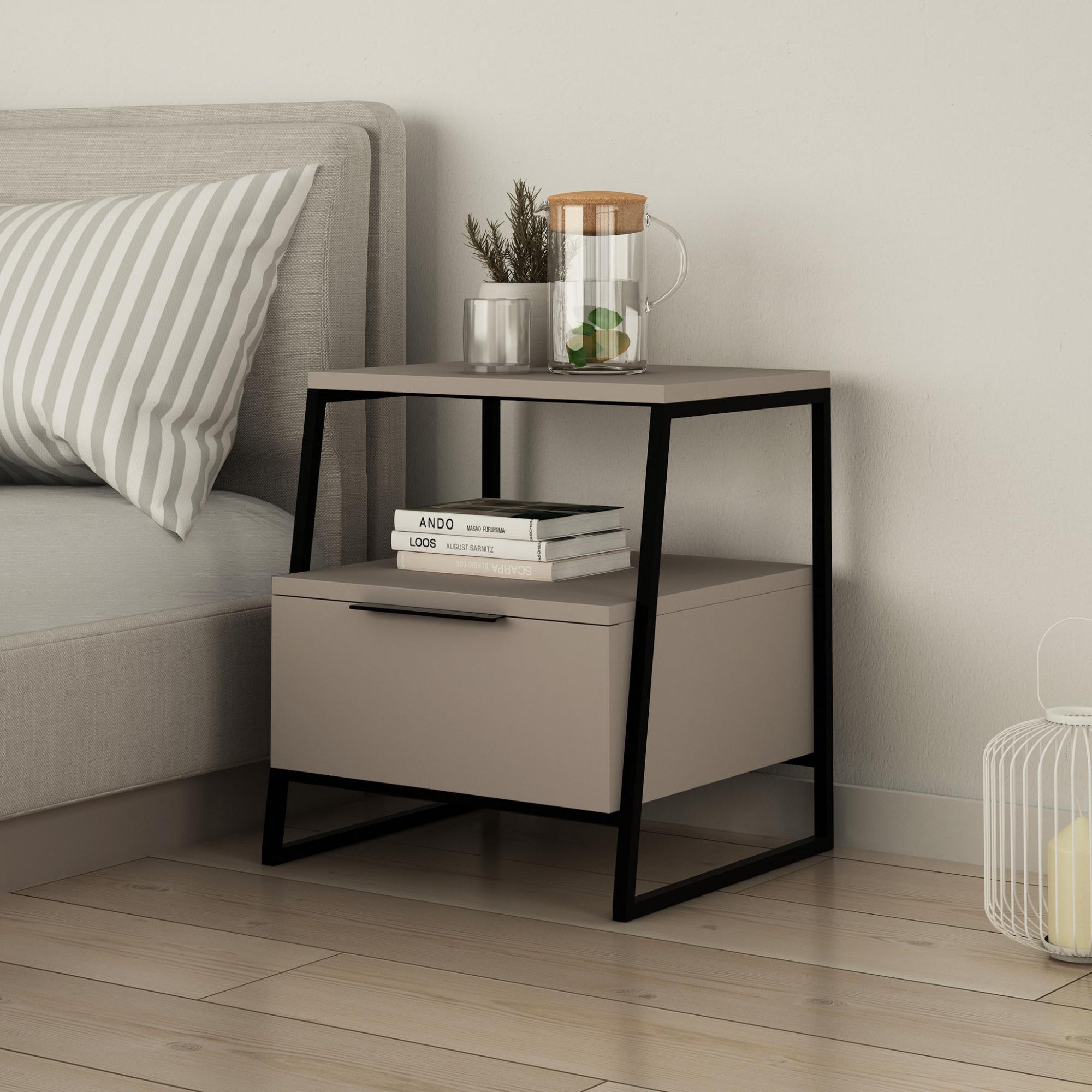 Nočný stolík PAL 2 - svetlá káva/čierna