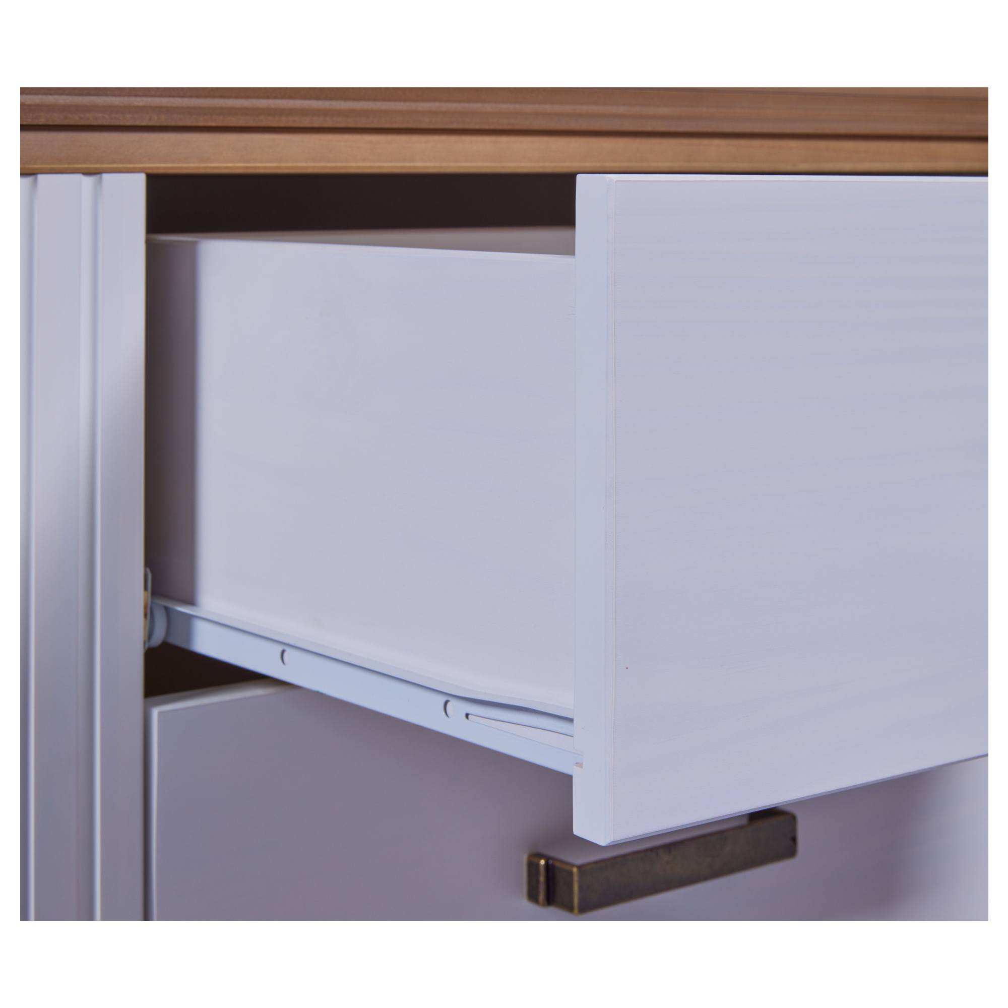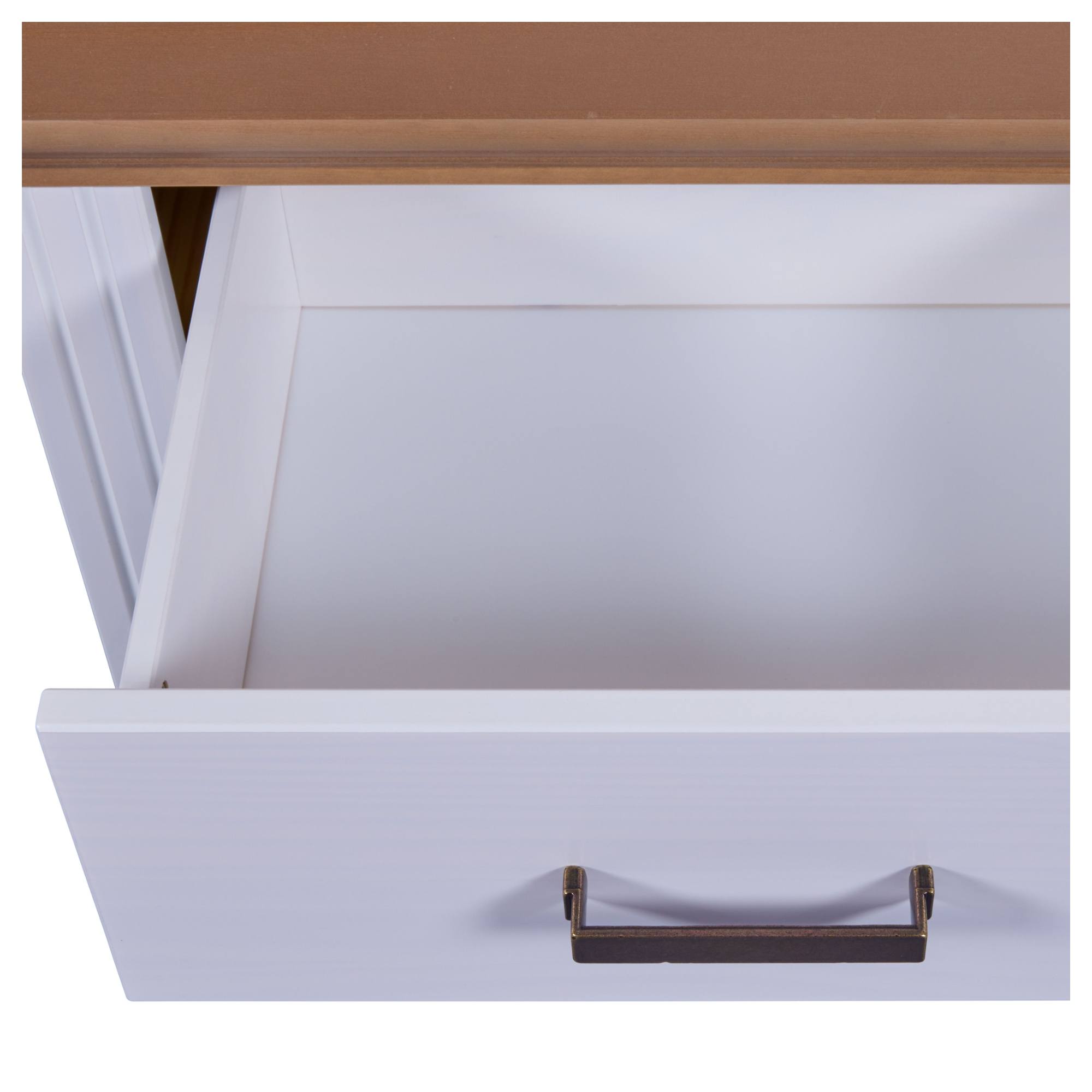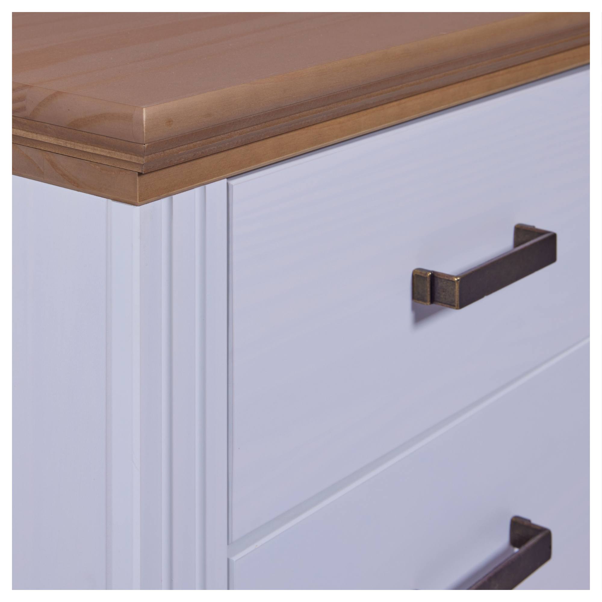 Úložný priestor je rozdelený na 2 samostatné zásuvky na otváranie ktorých slúžia kovové rúčky, ktoré bez problémov nahmatáte aj po tme. Na odloženie predmetov, ktoré chcete mať počas neskorého večera či skorého rána po ruke môžete využiť aj vrchnú odkladaciu dosku. Konštrukcia stolíka je vyrobená z masívneho borovicového dreva, ktoré konštrukcii dodáva potrebnú pevnosť, odolnosť a dlhú životnosť.