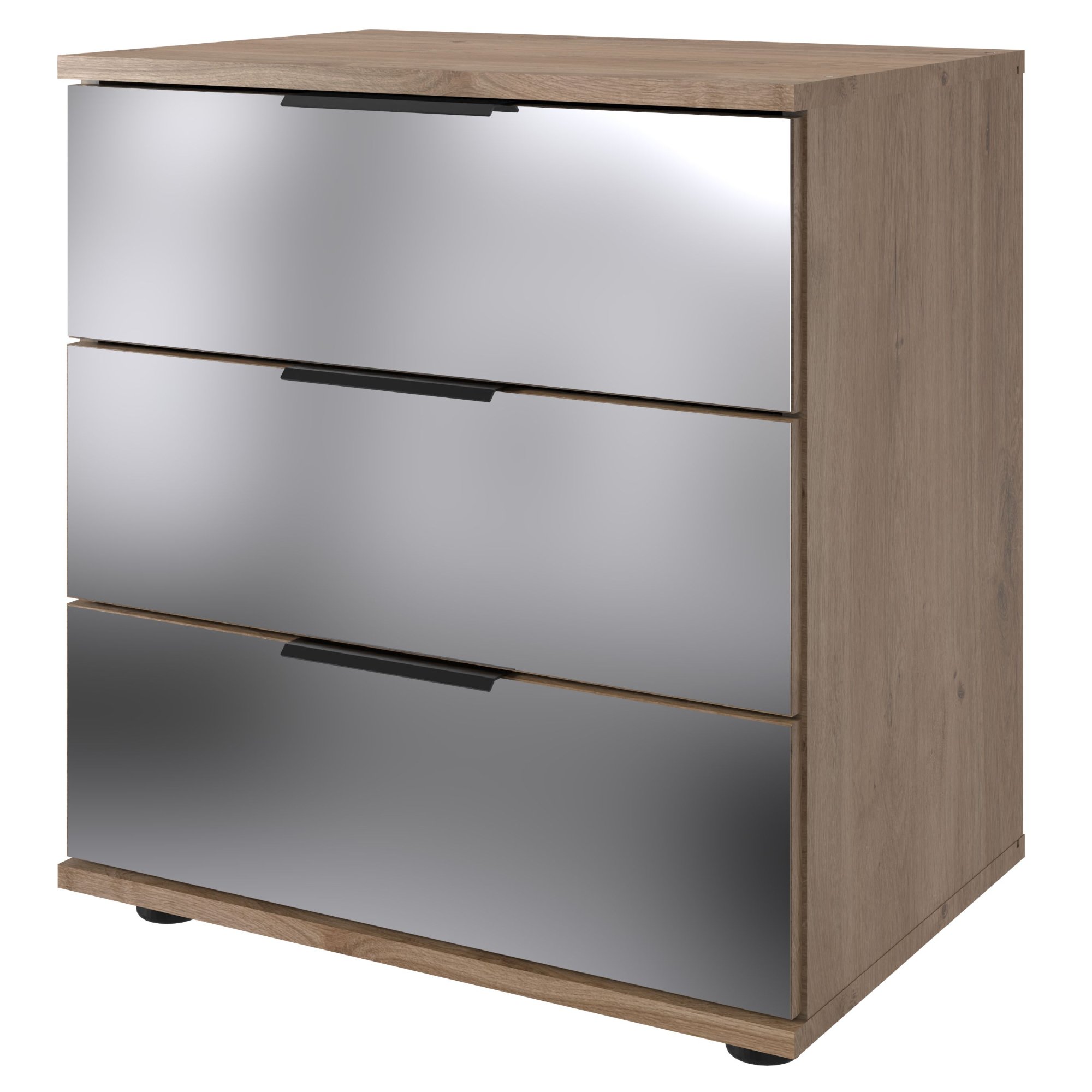 Úložný priestor je rozdelený na 3 samostatné zásuvky na ktorých otváranie slúžia výrazné rúčky. Predné plochy zásuviek sú vybavené zrkadlami, ktoré pomáhajú dotvoriť atraktívny vzhľad a zároveň zaisťujú presvetlenie a optické zväčšenie miestnosti.