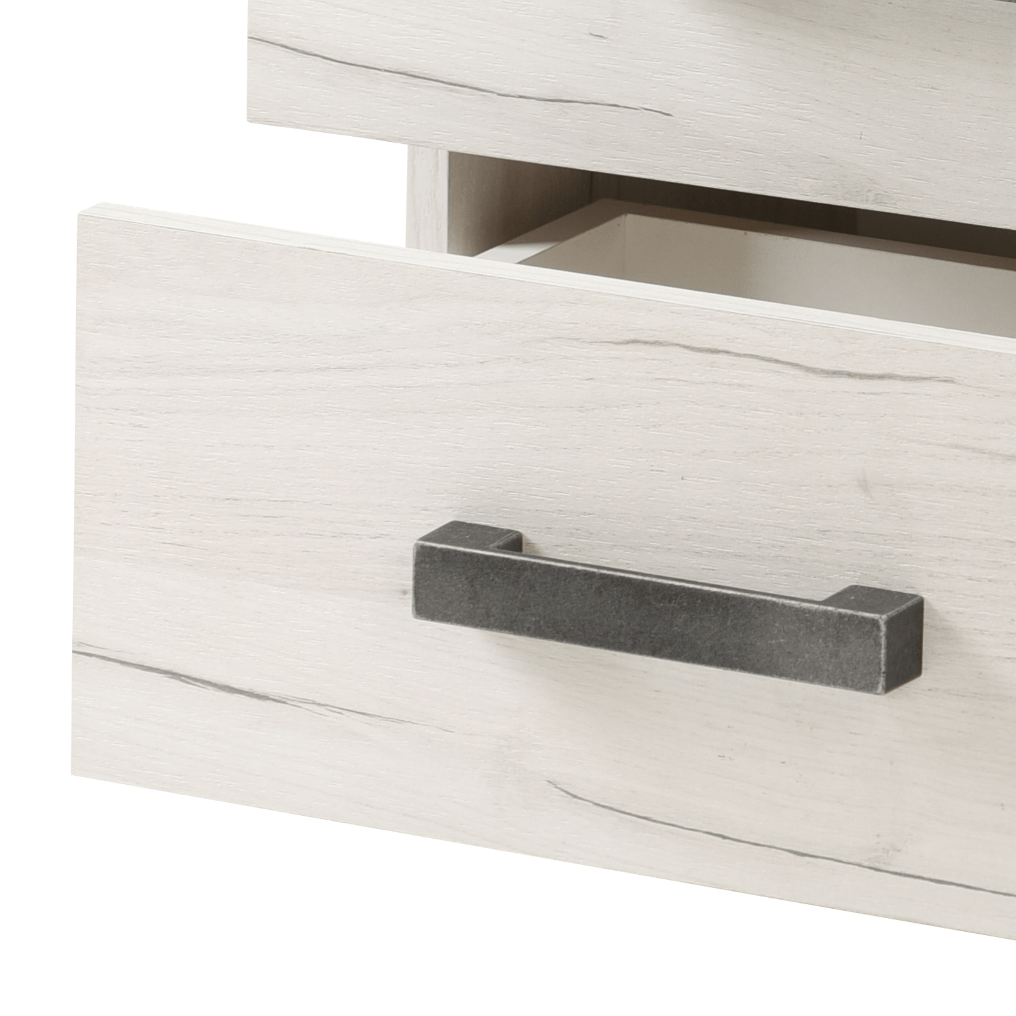 Praktický nočný stolík SKYE je síce malý a nenápadný, ale skvele poslúži ako odkladací priestor k posteli. Spracovanie v dekore bieleho duba v kombinácii s detailom v dekore duba sivého pôsobí elegantne a bude sa vynímať v každom moderne ladenom interiéri.