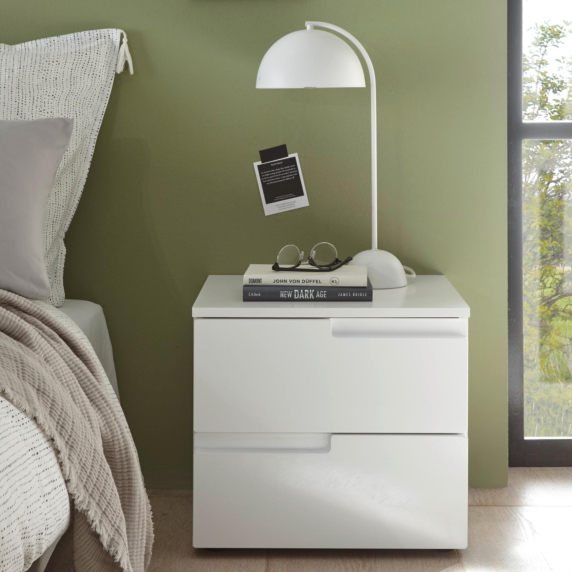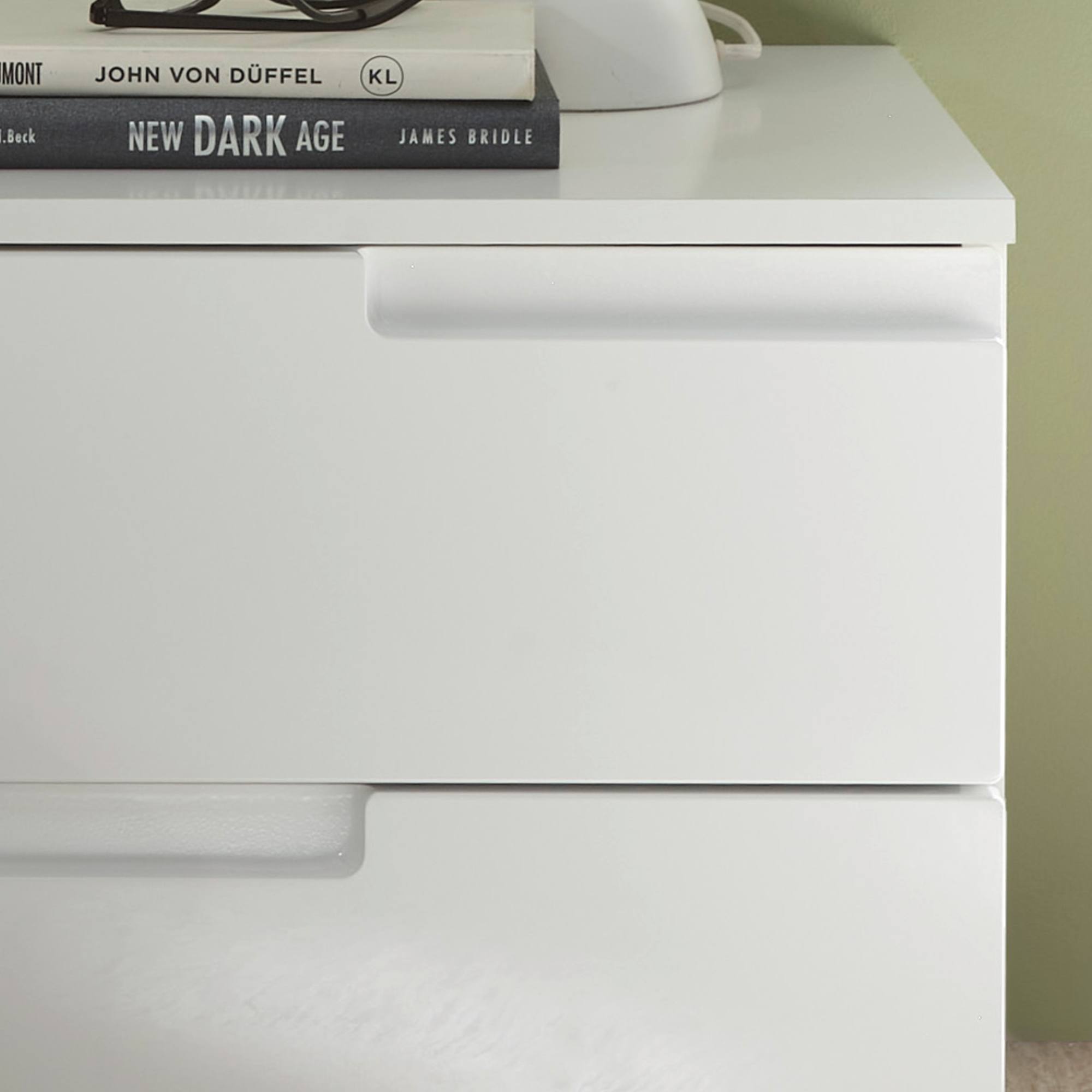 Predná plocha vo vysokom lesku a bezrúčkové vyhotovenie zásuviek vytvára originálny moderný vzhľad nočného stolíka. Praktické, vyfrézované rúčky oceníte nielen v prípade, že sa rozhodnete ho umiestniť do detskej izby. Do zásuviek si môžete uložiť osobné veci, ktoré chcete mať po ruke, ale nie nutne na očiach. Horná doska sa postará o vaše knihy, telefón, pohár vody aj budík.