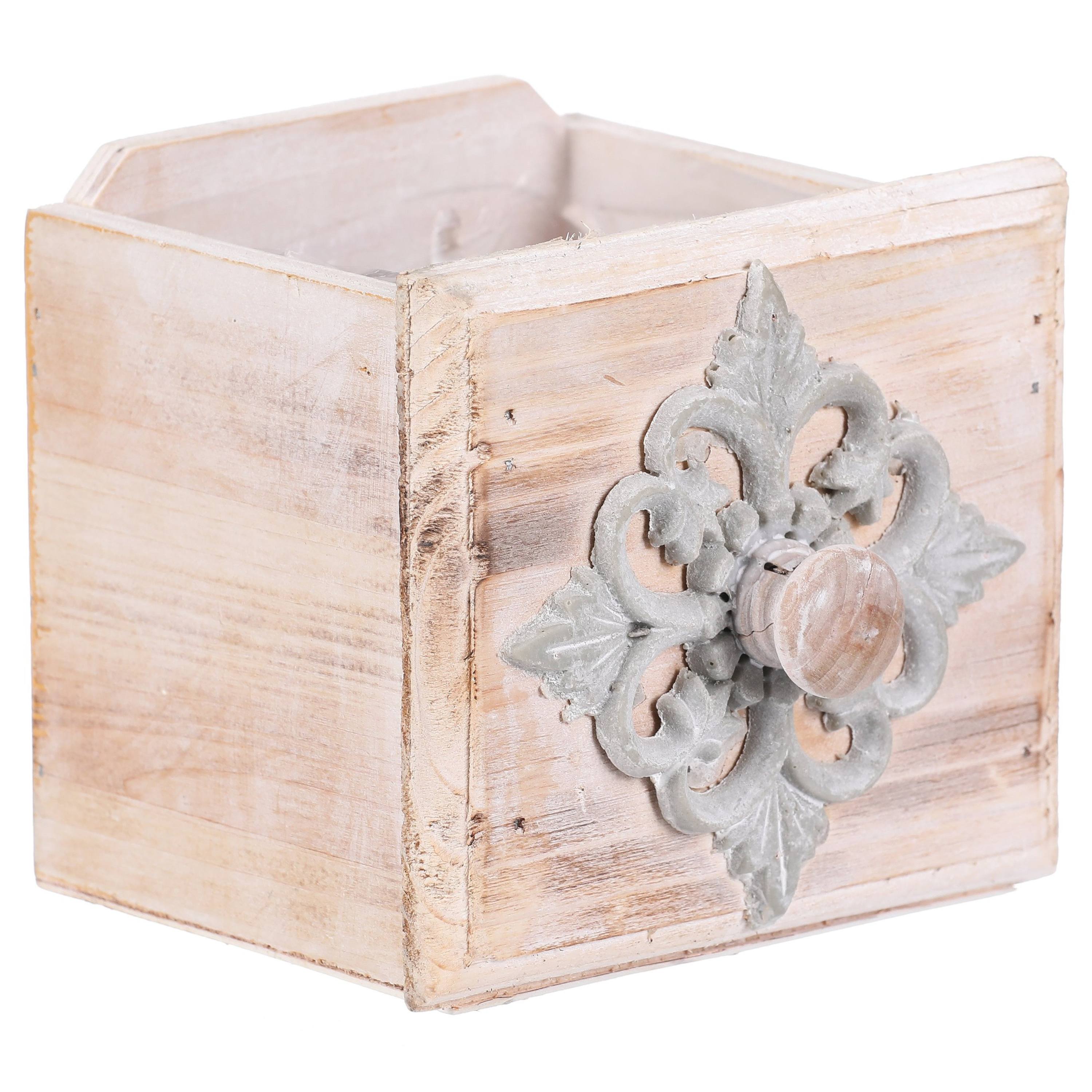 Obal na kvetináč ŠUPLÍK je nielen štýlovým, ale aj praktickým dekoračným doplnkom, ktorý vašim rastlinám dodá jedinečný a originálny vzhľad. Tento obal v tvare šuplíka je vyrobený z dreva a doplnený kruhovou kovovou rúčkou. Ďalej je vybavený praktickou igelitovou vložkou, ktorá účinne zabraňuje presakovaniu vody, chráni povrchy a zároveň udržiava ideálnu vlhkosť pre zdravý rast vašich rastlín.