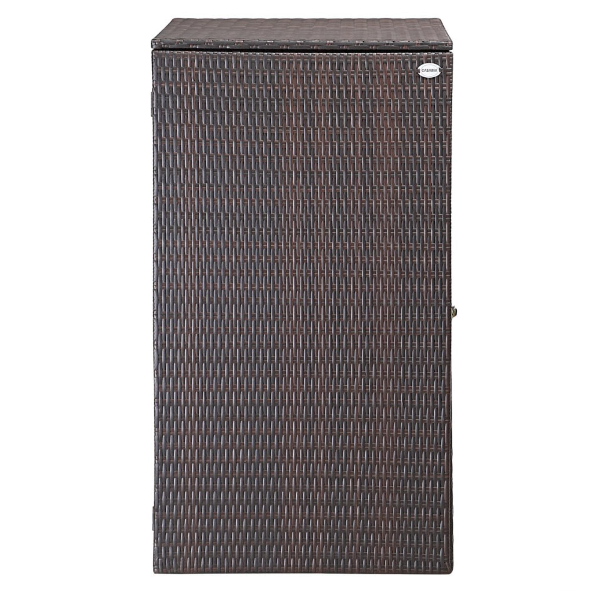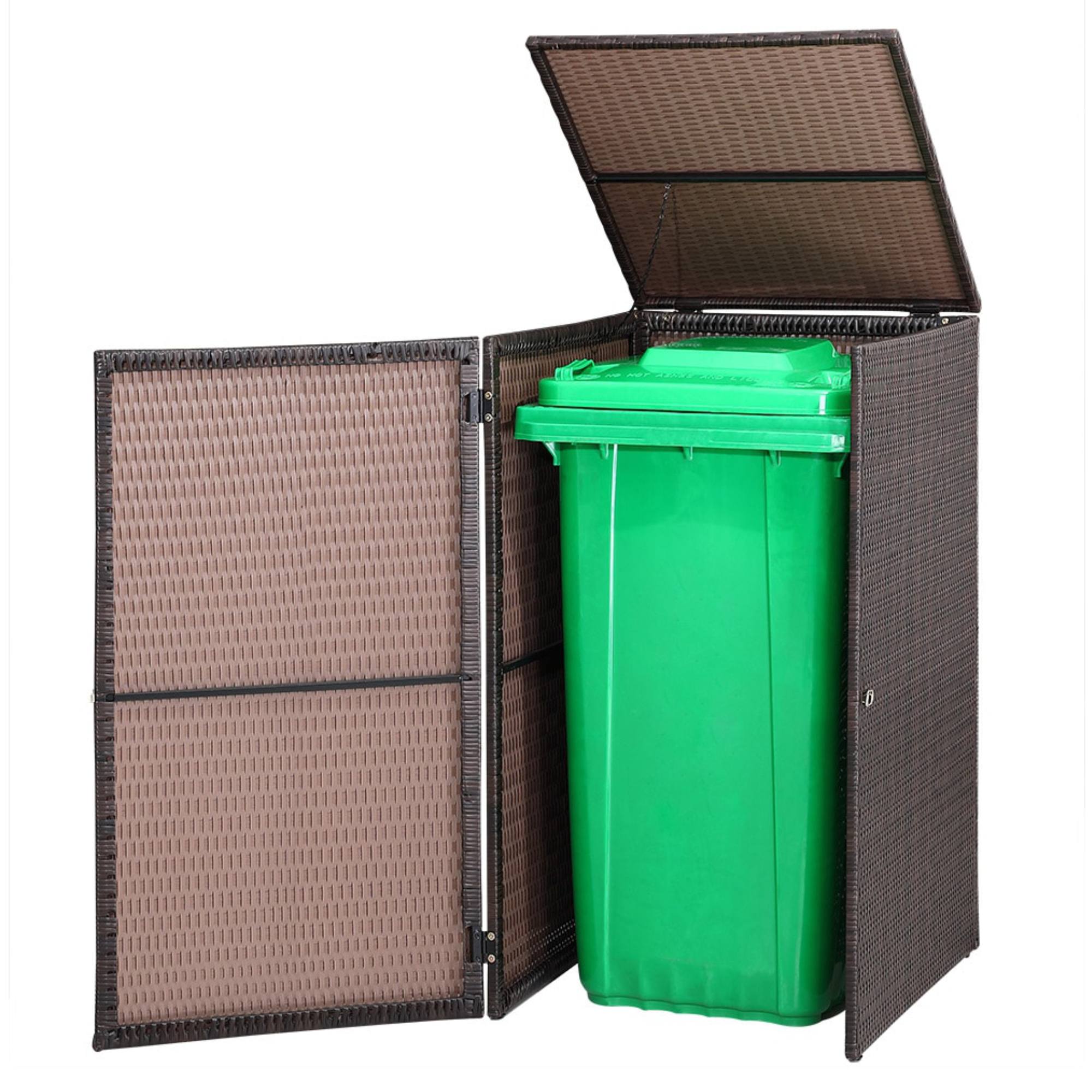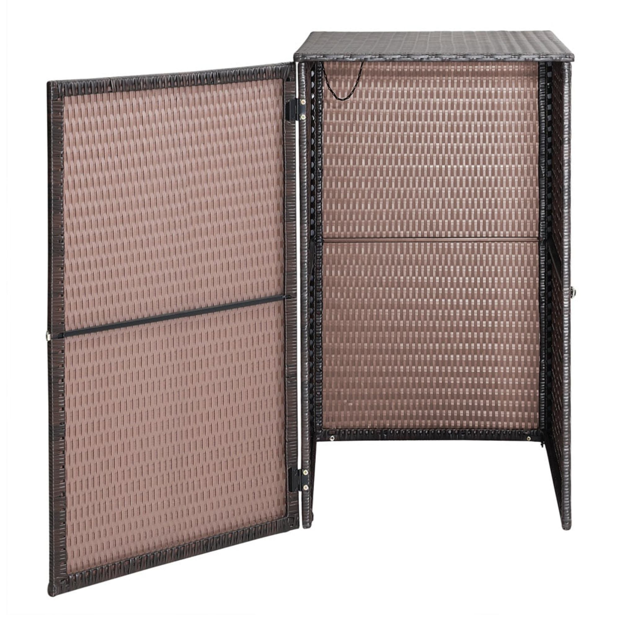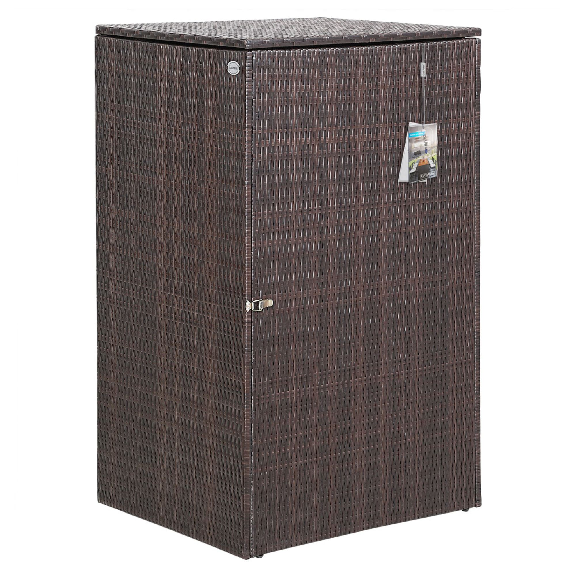 Pevná a stabilná konštrukcia obalu je vyrobená z pozinkovanej ocele a opletená polyratanom, ktorý je odolný voči UV žiareniu a nenáročný na údržbu. Obal má dvierka na západku a veko, ktoré je možné otvoriť samostatne.