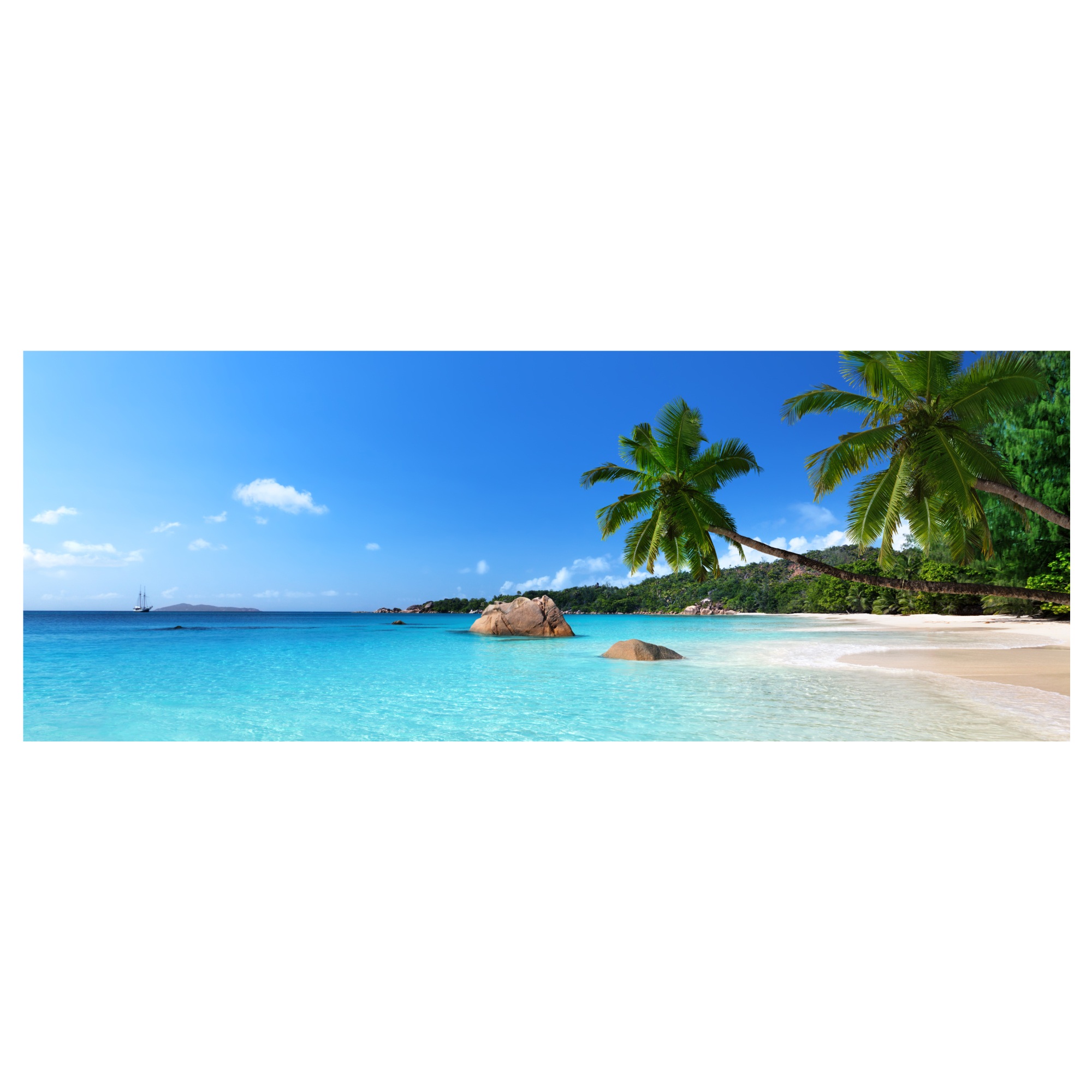Obraz na plátne zachytáva tropickú pláž s priezračne modrým morom a palmami. Plátno je vypnuté na pevnom MDF ráme, ktorý zaisťuje jeho stabilitu a dlhú životnosť. Vďaka tomuto vyhotoveniu je obraz pripravený na zavesenie ihneď po vybalení. Skvele tak oživí každú prázdnu stenu, či už vo vašej obývacej izbe, pracovni alebo spálni.