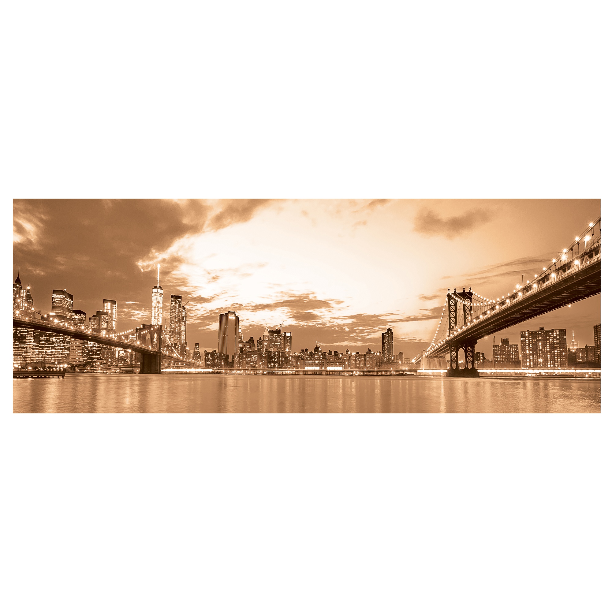 Tento obraz na plátne zachytáva ikonickú panorámu mesta New York, konkrétne časť Brooklynu. Plátno je napnuté na pevnom MDF ráme, ktorý zaisťuje stabilitu a dlhú životnosť. Vďaka tomuto vyhotoveniu je obraz pripravený na zavesenie ihneď po vybalení. Skvele tak oživí každú prázdnu stenu, či už vo vašej obývacej izbe, pracovni alebo spálni.