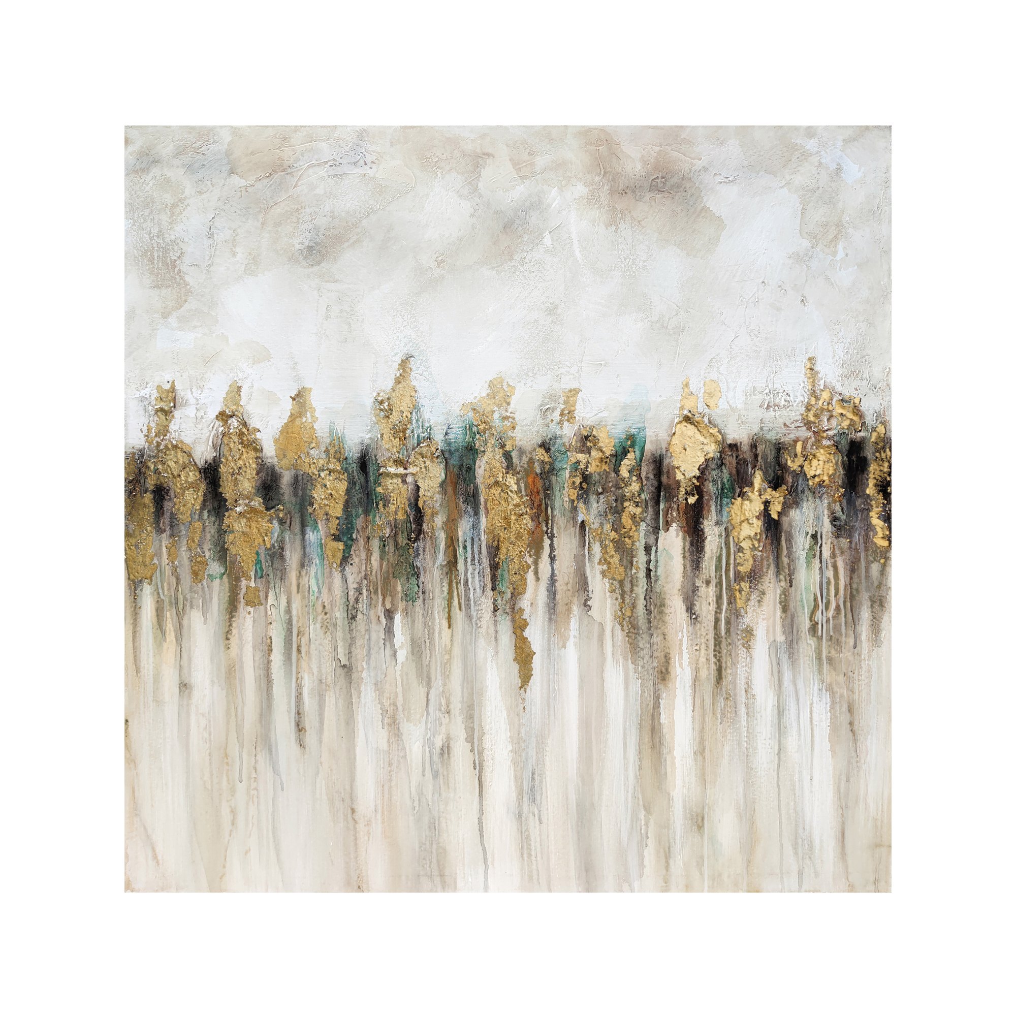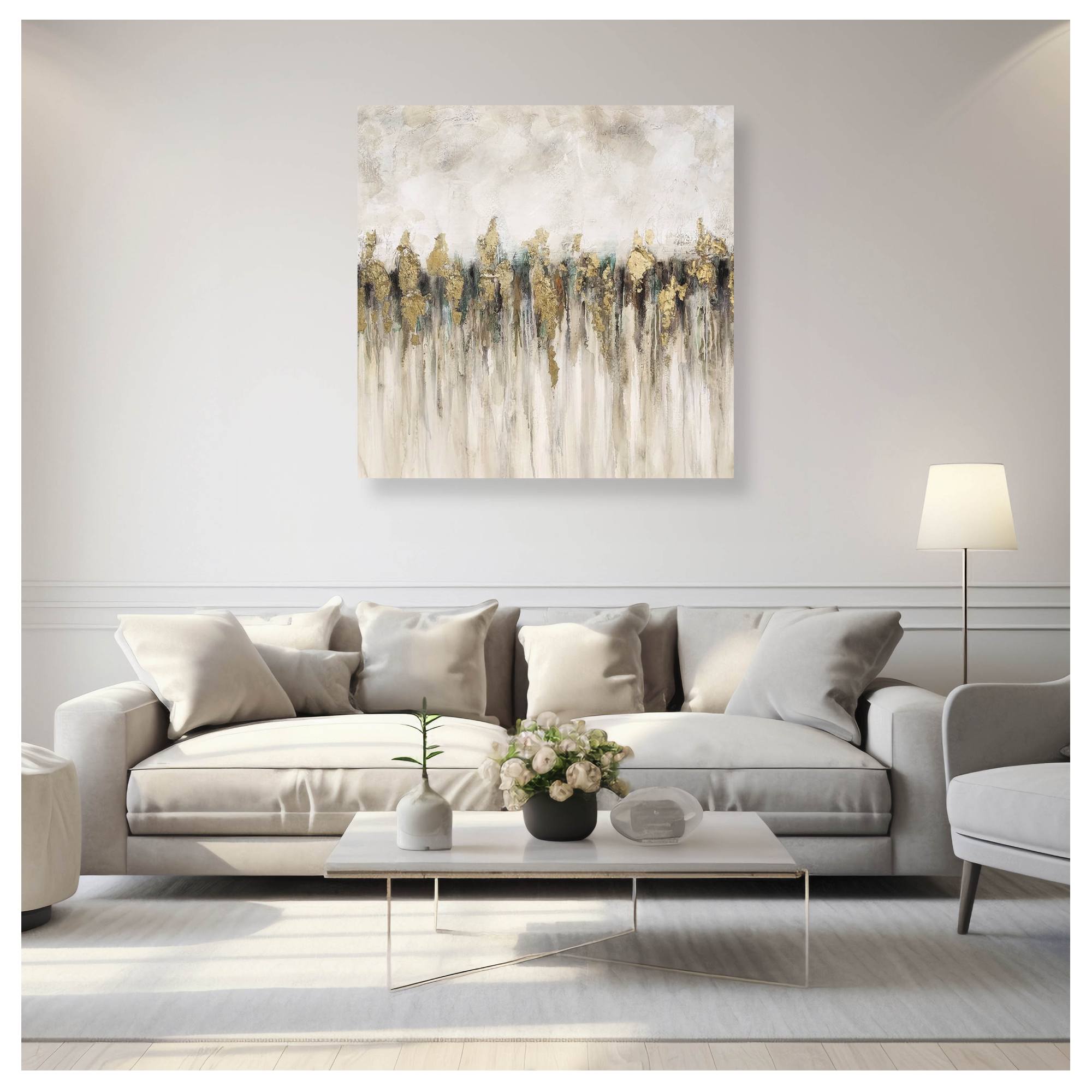 Tento ručne maľovaný obraz na pevnom ráme sa vyznačuje nielen svojou originalitou, ale aj precíznym spracovaním. Abstraktný motív v béžových tónoch so zlatými akcentmi vytvára harmonický a elegantný vizuálny dojem, ktorý dokáže perfektne zapadnúť do rôznych štýlov interiérov. Maľba je aplikovaná na kvalitné maliarske plátno, ktoré je starostlivo napnuté na drevenom ráme.
