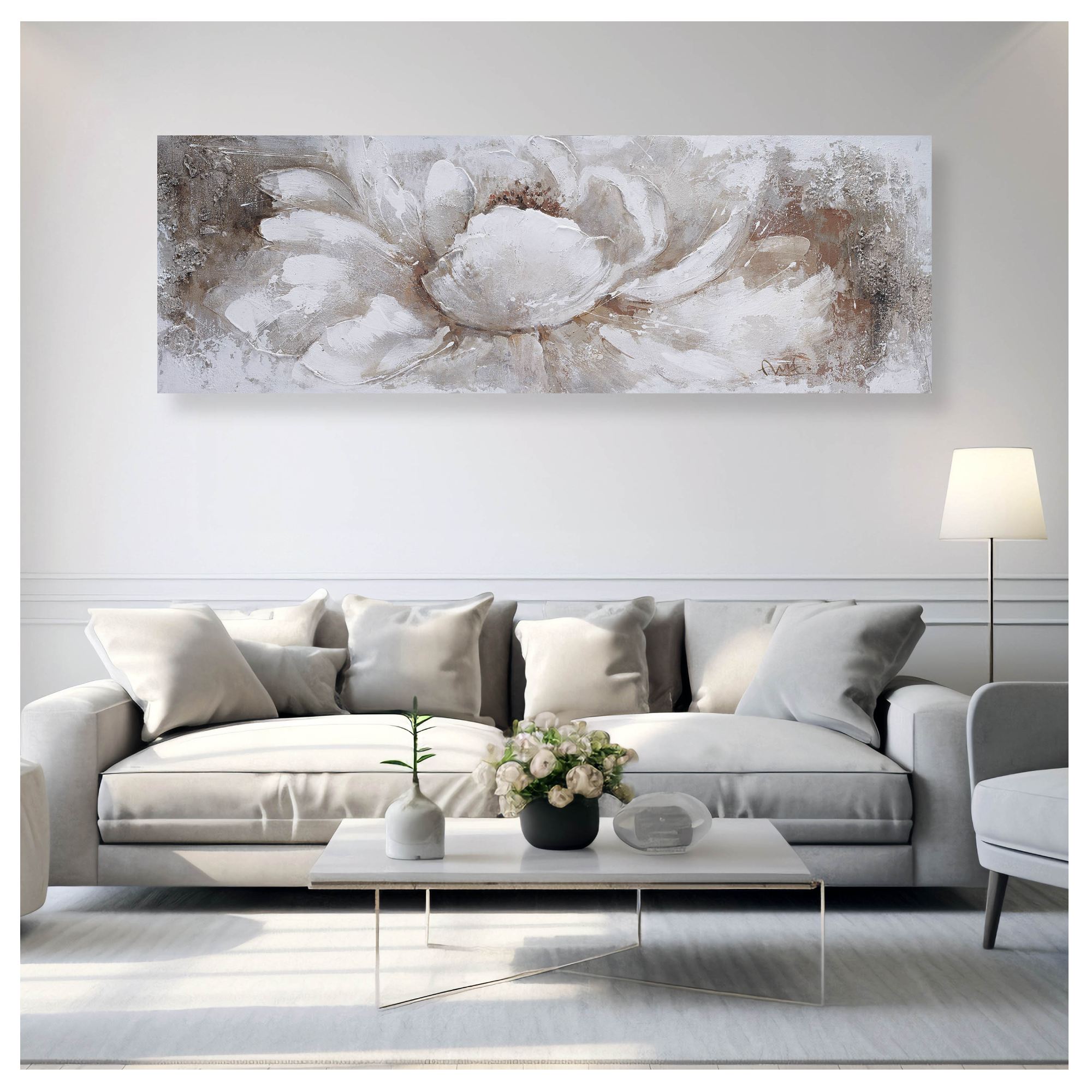 Tento ručne maľovaný obraz na ráme vyniká svojou originalitou a precíznym spracovaním. Hlavným motívom je elegantný kvet v jemnom tóne béžovej farby. Maliarske plátno je napnuté na masívny drevený rám, čo zaisťuje nielen stabilitu, ale aj dlhú životnosť obrazu.